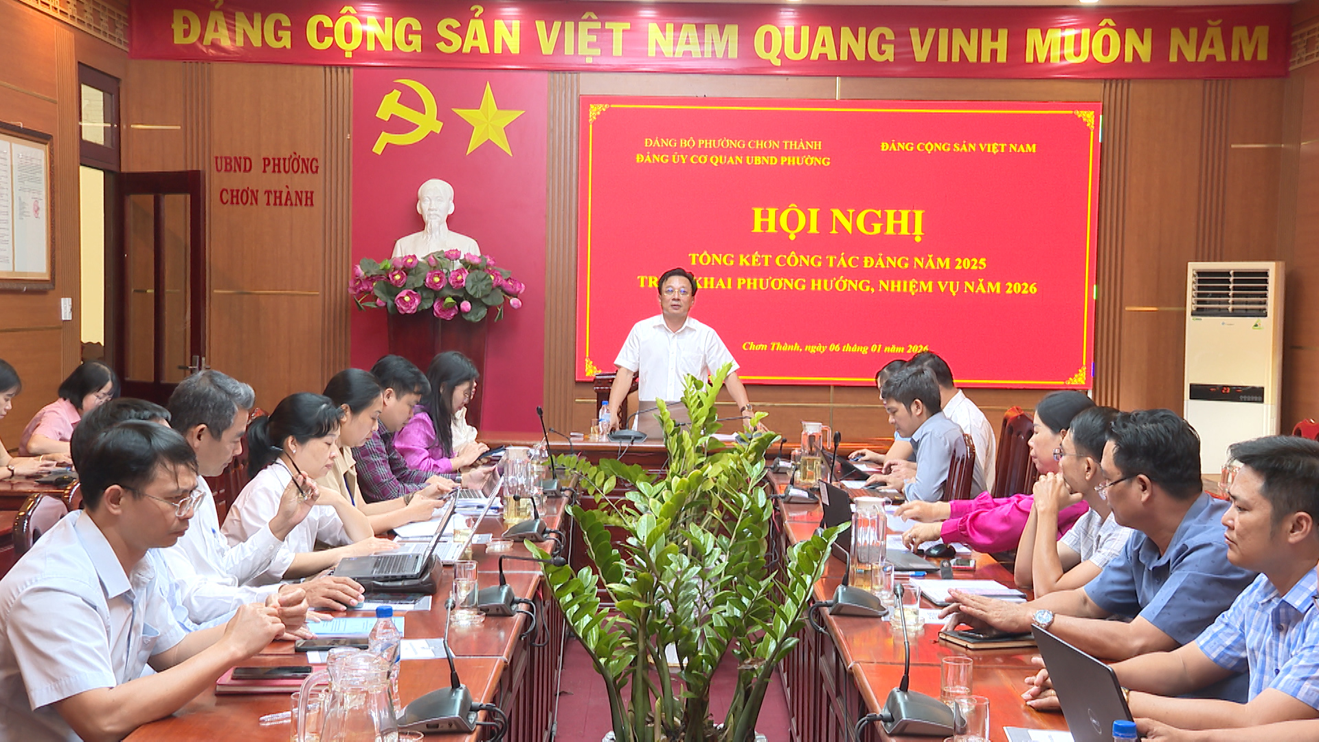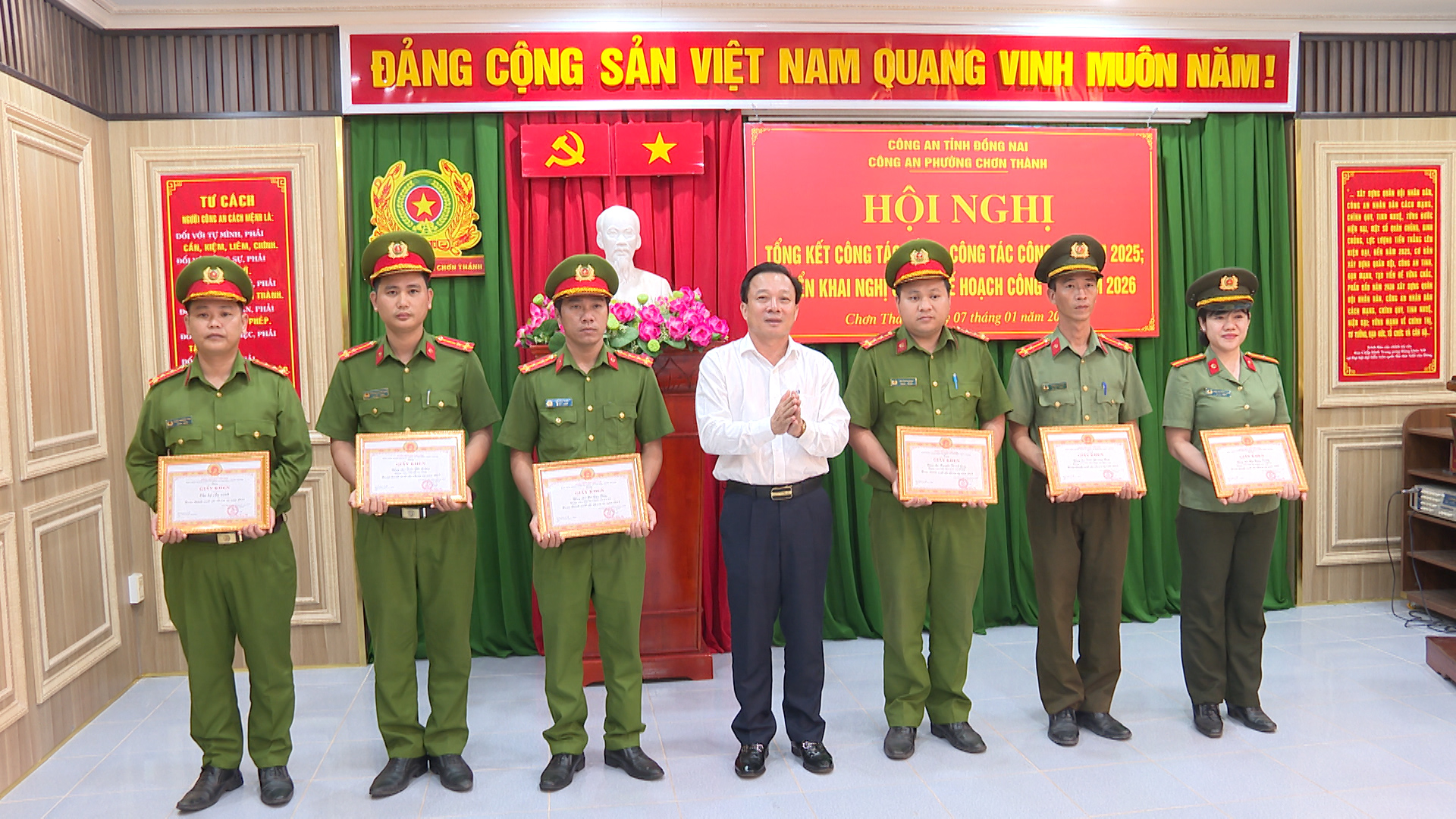 Sáng ngày 07/01/2026, Công an phường Chơn Thành đã tổ chức hội nghị tổng kết công tác đảng, công tác công an năm 2025, triển khai nghị quyết, kế hoạch công tác năm 2026. Dự có đạị tá Nguyễn Huy Hải,...