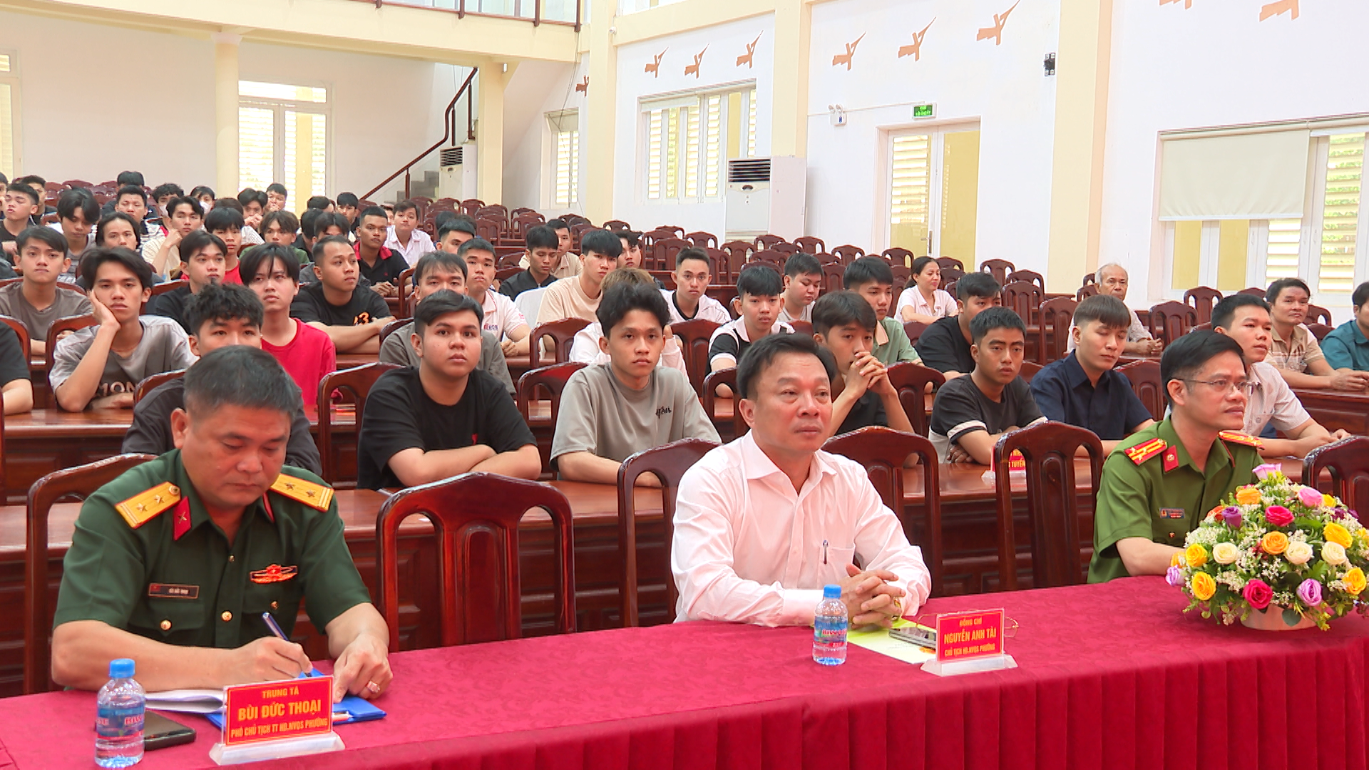Phát biểu tại hội nghị, đồng chí Nguyễn Anh Tài, Phó Bí thư Đảng ủy, Chủ tịch UBND phường, Chủ tịch HĐNVQS phường, chúc mừng các đồng chí thanh niên ưu tú đã trúng tuyển nghĩa vụ quân sự và nghĩa vụ Công an nhân dân năm 2026. Mong rằng, khi bước vào môi trường Quân đội và Công an nhân dân, các đồng chí thanh niên sẽ tiếp tục phát huy truyền thống quê hương, nêu cao ý chí phấn đấu, chấp hành nghiêm kỷ luật, ra sức học tập, rèn luyện, tu dưỡng phẩm chất đạo đức, bản lĩnh chính trị, hoàn thành xuất sắc mọi nhiệm vụ được giao; xứng đáng với niềm tin của cấp ủy, chính quyền và Nhân dân, phường Chơn Thành.