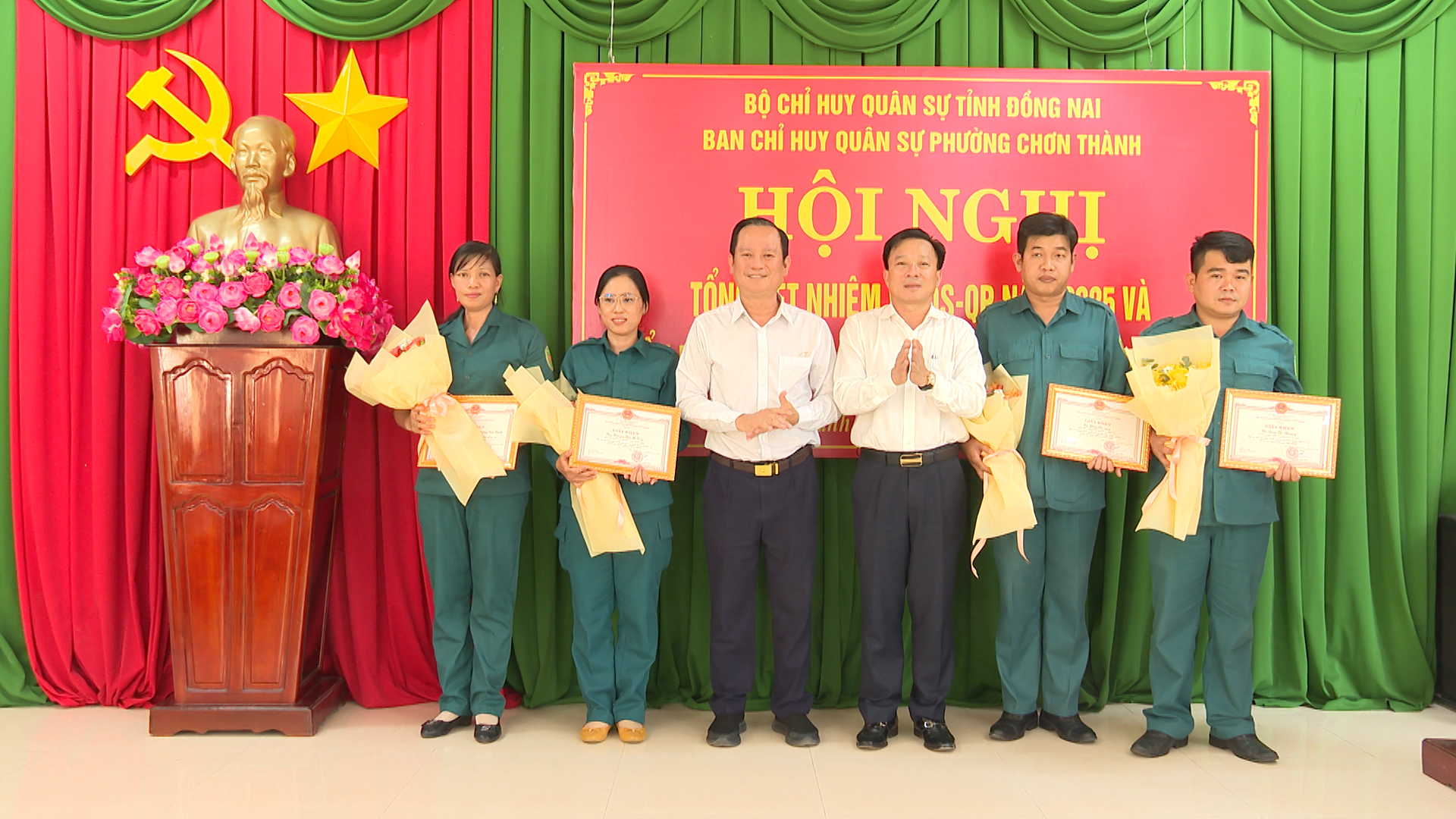 Nhân dịp này, Chủ tịch UBND phường Chơn Thành đã tặng giấy khen cho 01 tập thể, 03 cá nhân có thành tích xuất sắc trong thực hiện nhiệm vụ quân sự, quốc phòng năm 2025.