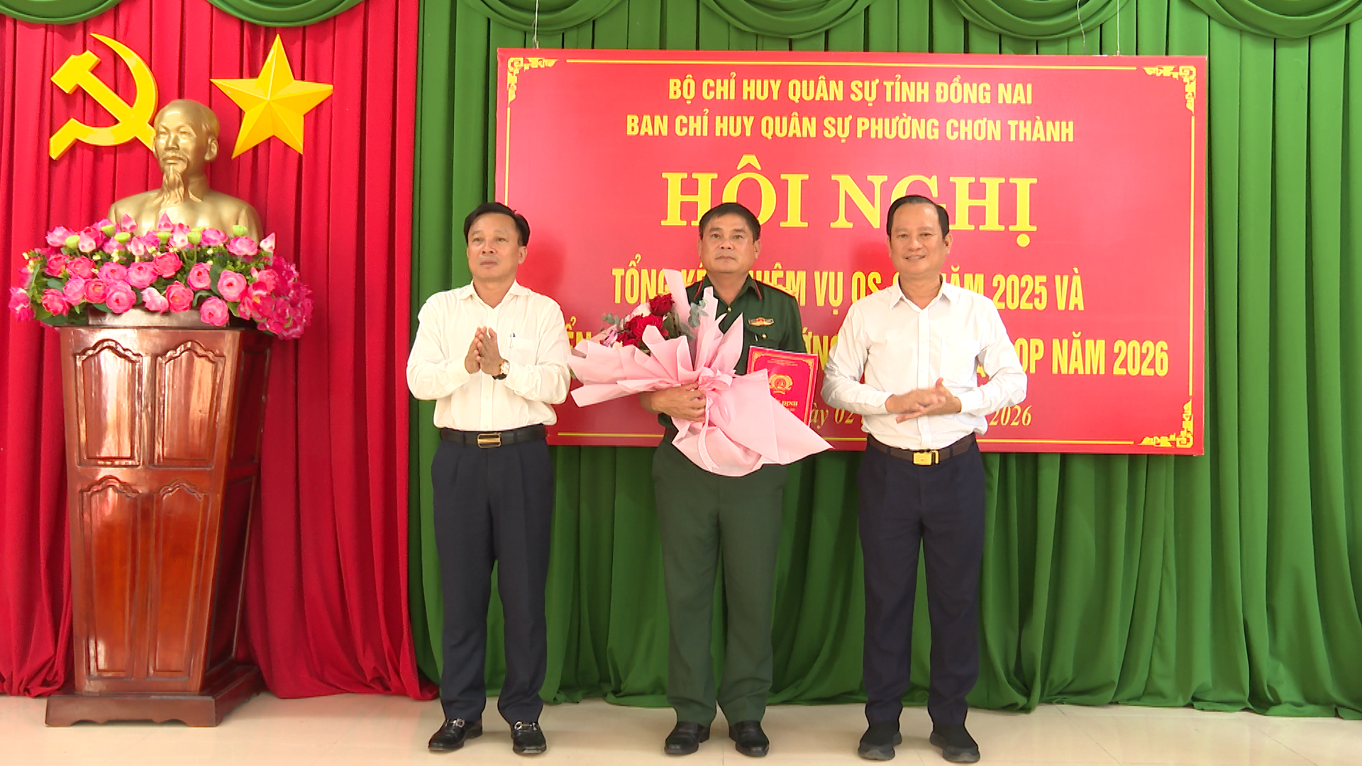 Tại hội nghị lần này, lãnh đạo phường Chơn Thành cũng đã trao quyết định của Ban Thường vụ Đảng ủy phường chỉ định đồng chí Bùi Đức Thoại, Chỉ huy trưởng Ban Chỉ huy Quân sự phường tham gia cấp ủy, giữ chức vụ Phó Bí thư Chi bộ Quân sự phường, nhiệm kỳ 2025 - 2030.