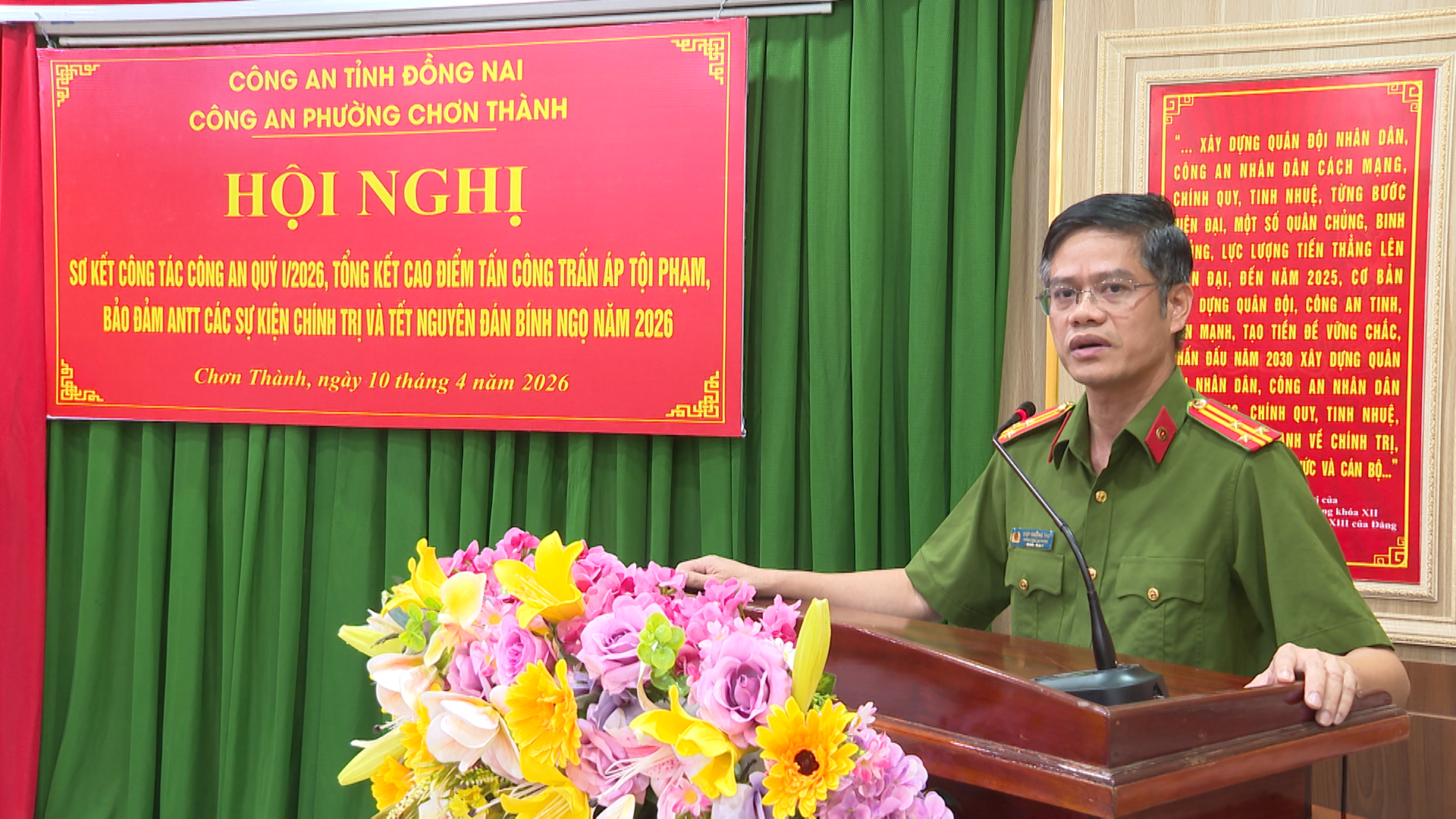 Nhiệm vụ trọng tâm quý II/2026 mà Công an phường Chơn Thành đặt ra là: tiếp tục thực hiện tốt công tác tham mưu cho Đảng ủy - UBND phường về nhiệm vụ đảm bảo an ninh trật tự. Chủ động nắm bắt tình hình, quản lý đối tượng. Quyết liệt các giải pháp phòng ngừa, đấu tranh trấn áp các loại tội phạm. Thưc hiện tốt công tác cải cách hành chính, nêu cao tinh thần phục vụ tốt cho người dân và doanh nghiệp…