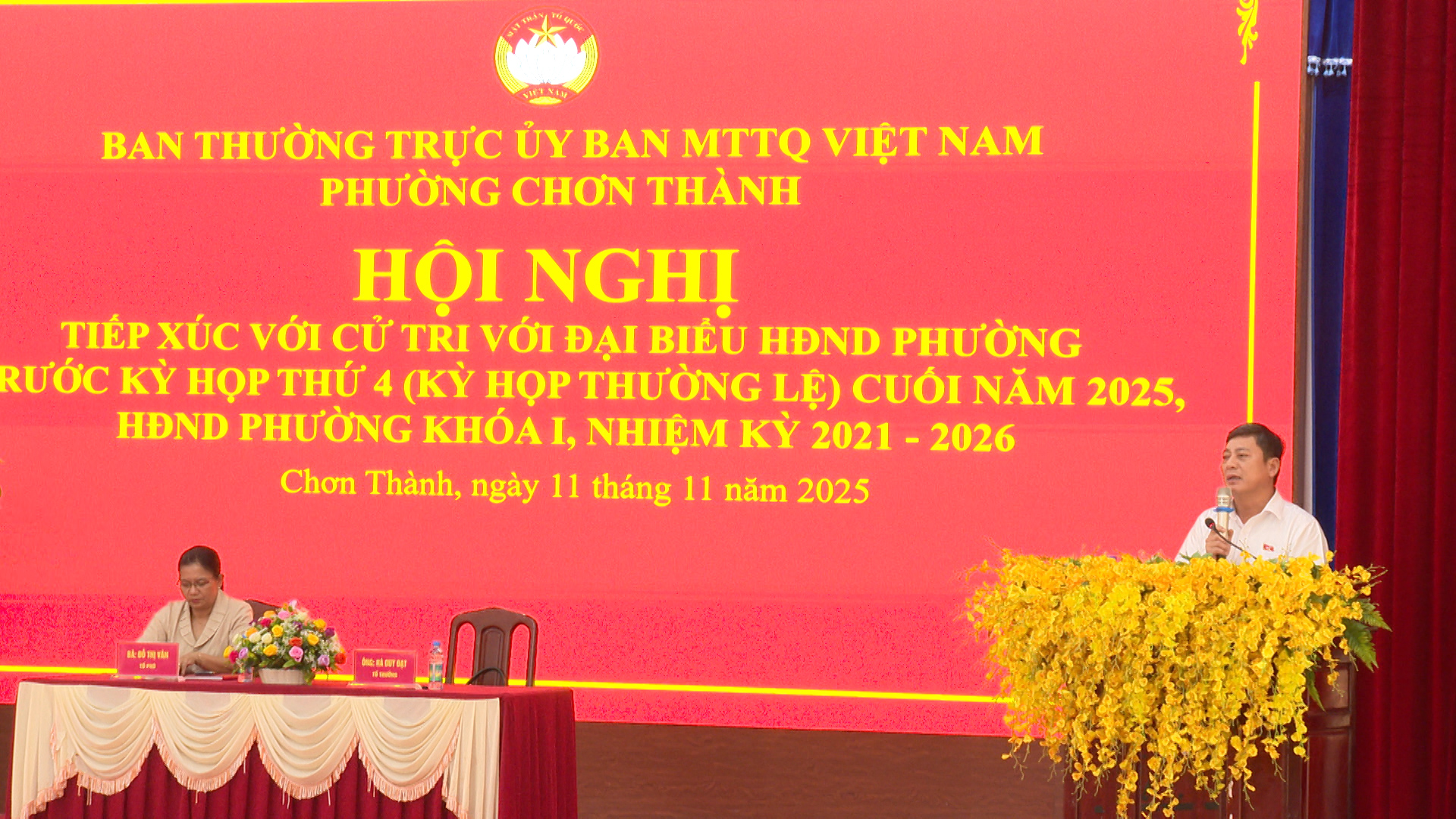 Tại buổi tiếp xúc Đại biểu HĐND phường Chơn Thành đã thông tin về kết quả: kỳ họp thứ Nhất, kỳ họp thứ Hai (kỳ họp chuyên đề) và kỳ họp thứ Ba (kỳ họp chuyên đề) HDND phường khoa I, nhiệm kỳ 2021-2026. Thông tin về kỳ họp lần thứ 4 (kỳ họp thường lệ) cuối năm 2025, HĐND phường khóa I, tổ chức vào 02 ngày (dự kiến 25 và 26 tháng 12 năm 2025); khai mạc lúc 08 giờ 00 phút sáng ngày 25/12/2025, địa điểm: hội trường UBND phường Chơn Thành. Dịp này cử tri của 12 khu phố thuộc phường Hưng Long (cũ), nay là phường Chơn Thành đã có 3 ý kiến góp ý xây dựng về: lĩnh vực đất đại, giao thông và công tác vệ sinh môi trường.