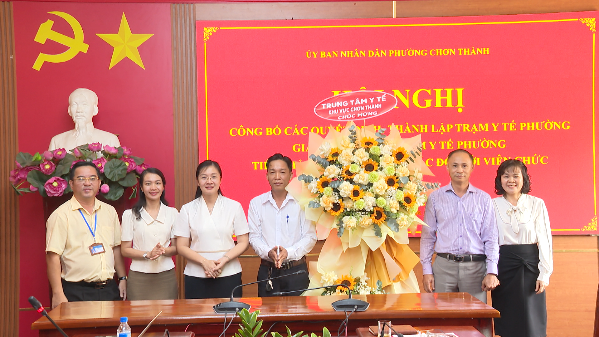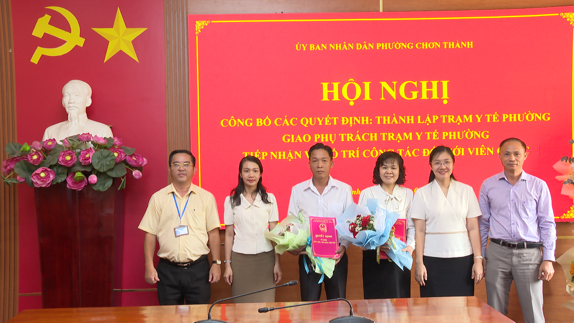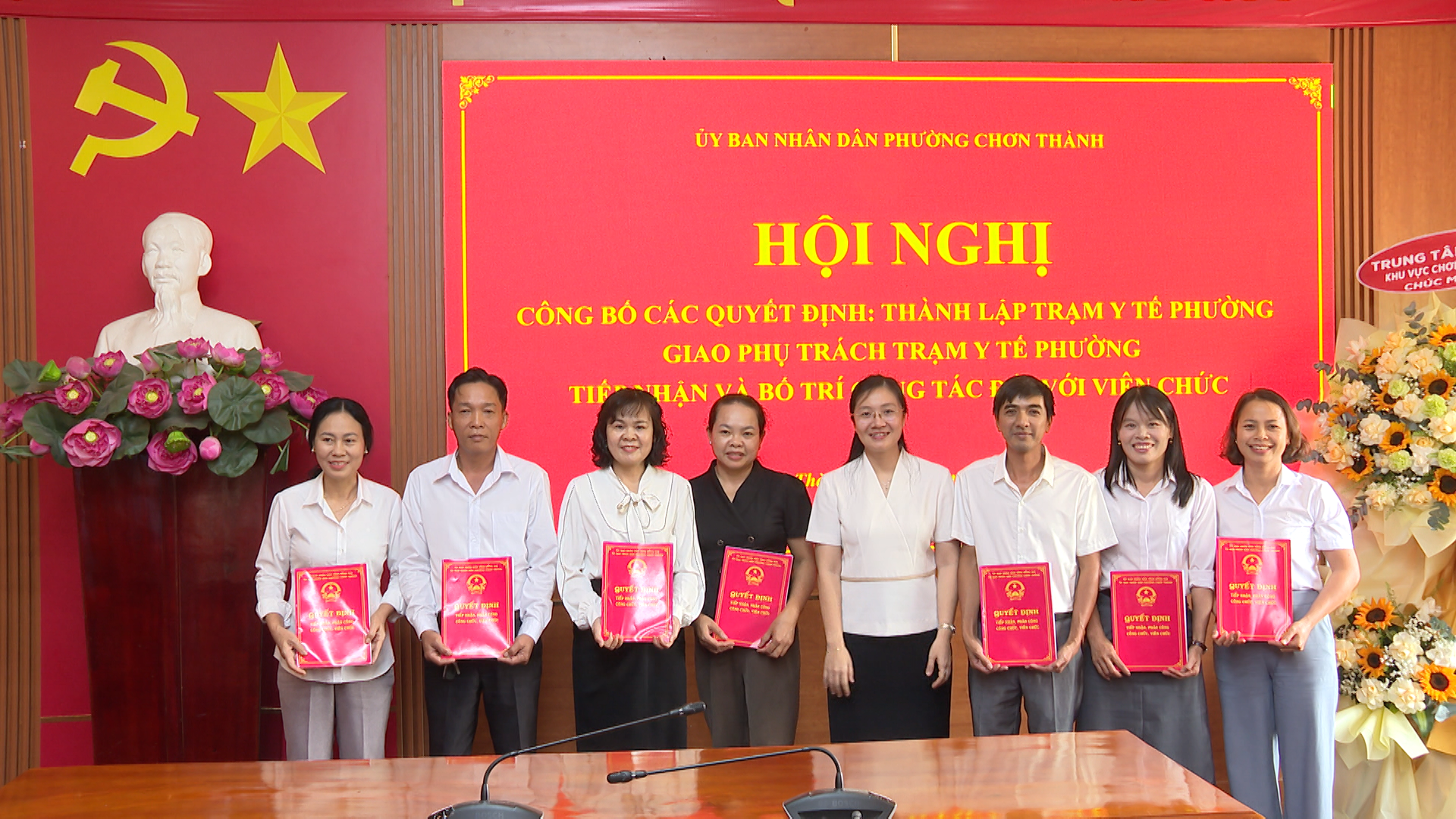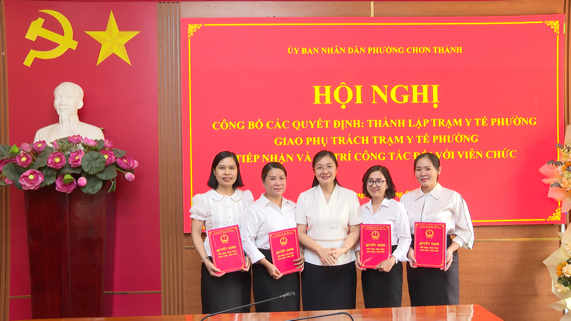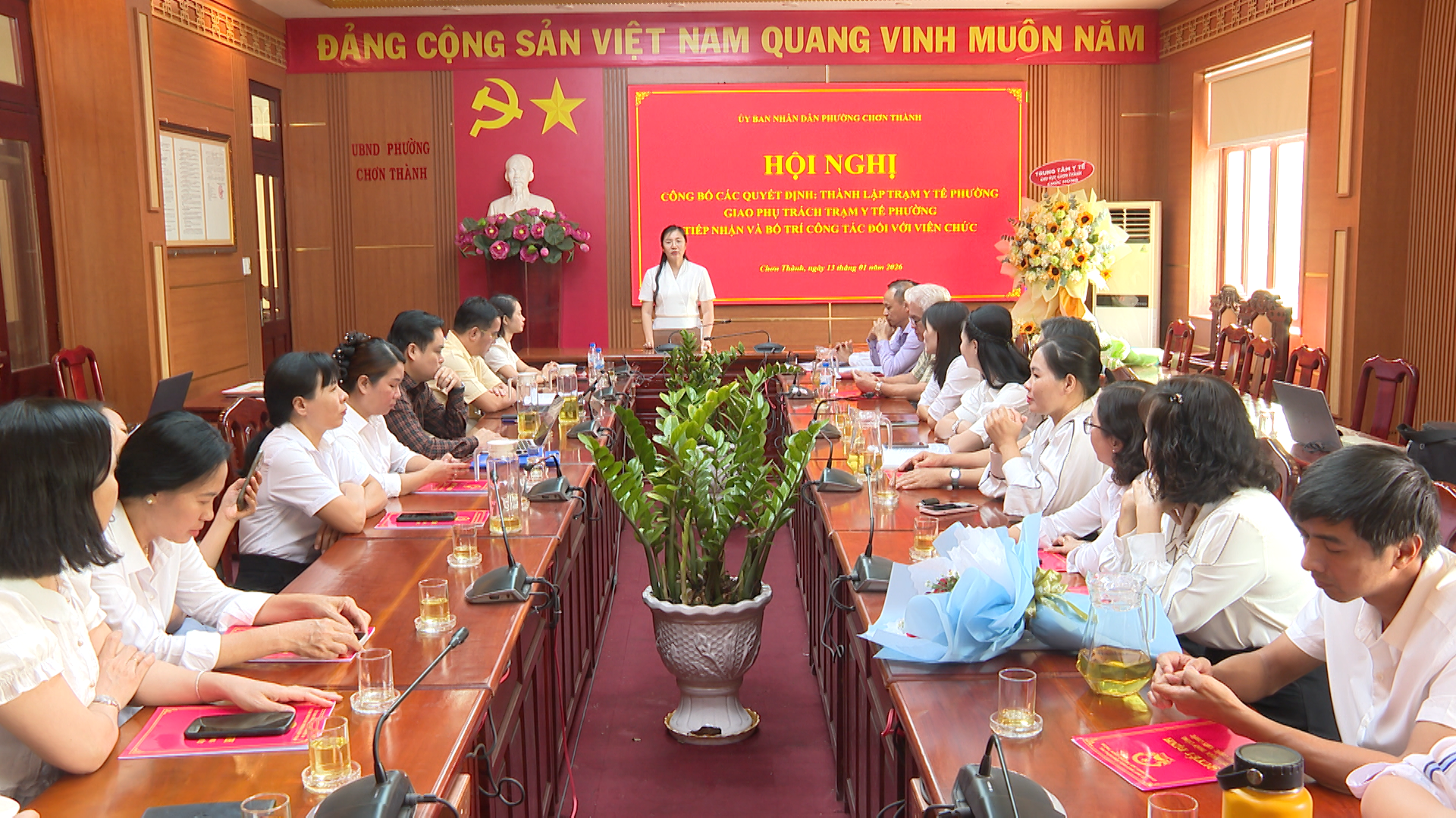 Tại hội nghị, lãnh đạo Phòng Văn hóa - Xã hội phường đã công bố Quyết định UBND phường về việc thành lập Trạm Y tế phường Chơn Thành trực thuộc UBND phường. Tiếp nhận và bố trí công tác tại Trạm y tế phường Chơn Thành đối với 21 viên chức, kể từ ngày 01/01/2026. Giao ông Phạm Văn Tuấn, viên chức Trạm y tế phường phụ trách điều hành Trạm y tế phường Chơn Thành, kể từ ngày 12/01/2026 cho đến khi kiện toàn nhân sự lãnh đạo Trạm y tế phường.