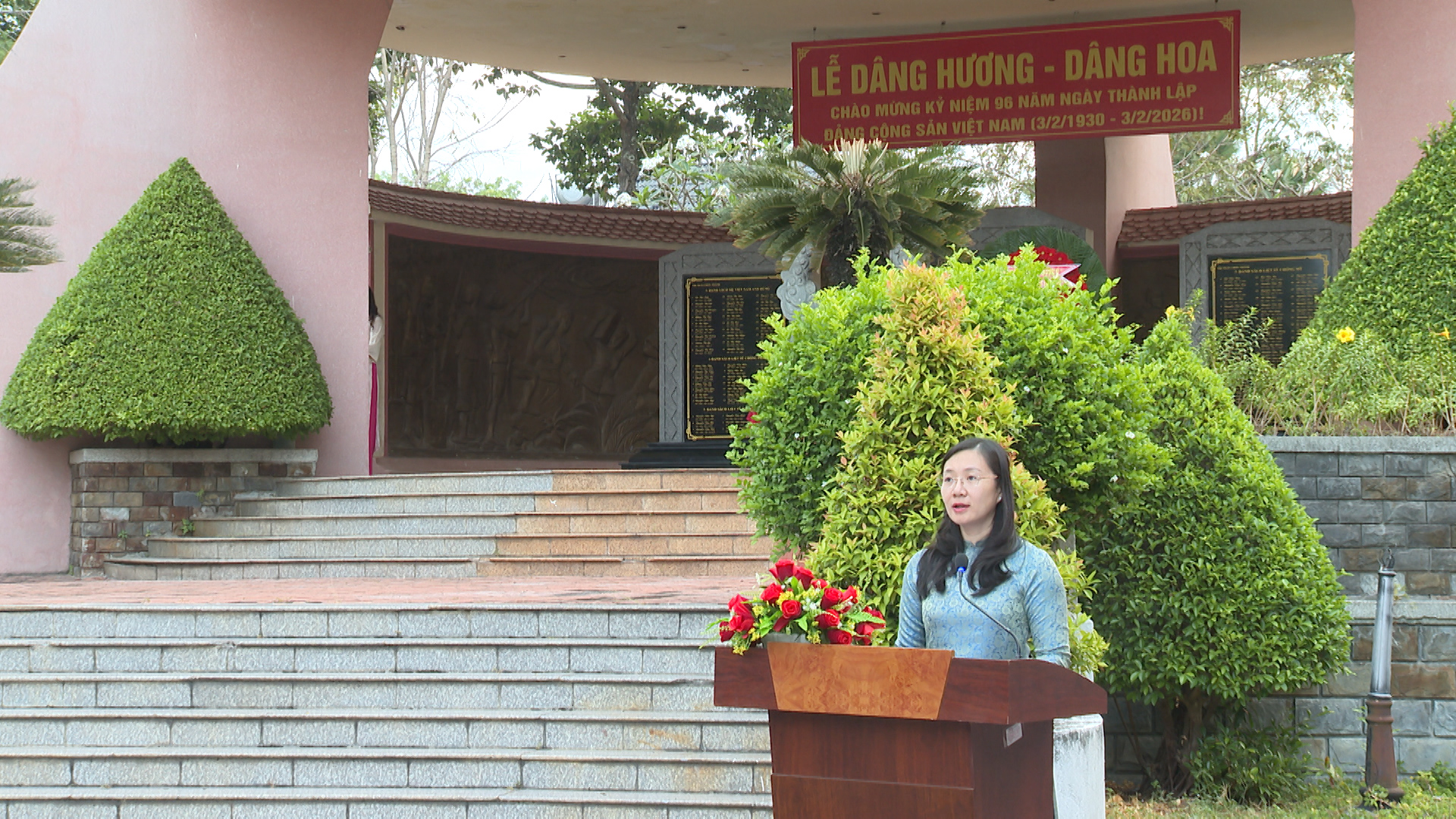 Trong không khí trang nghiêm tại Lễ dâng hương, dâng hoa tưởng niệm các Anh hùng Liệt sĩ nhân dịp kỷ niệm 96 năm Ngày thành lập Đảng Cộng sản Việt Nam và đón Tết nguyên đán Bính Ngọ năm 2026; thay mặt Đảng ủy, HĐND, UBND, UBMTTQVN phường, đồng chí Nguyễn Lâm Hoàng Dung, Ủy viên Ban Thường vụ Đảng ủy, Phó chủ tịch UBND phường Chơn Thành đã phát biểu báo công trước Hương hồn các anh hùng Liệt sĩ về những kết quả đạt được của Đảng bộ, Chính quyền và Nhân dân phường Chơn Thành trong năm 2025: từ ngày 01/7/2025, phường Chơn Thành được thành lập và đi vào vận hành theo mô hình chính quyền 2 cấp. Phát huy truyền thống anh hùng cách mạng, lịch sử đấu tranh và xây dựng của Đảng bộ, quân và dân Chơn Thành luôn kiên trung, đoàn kết, sáng tạo, vượt mọi qua khó khăn, thách thức. Dưới sự lãnh đạo của Thường trực, Ban Thường vụ, Ban Chấp hành Đảng bộ phường và sự nỗ lực phấn đấu của cả hệ thống chính trị, sự đồng hành của cộng đồng doanh nghiệp, sự ủng hộ của Nhân dân; với tinh thần rõ người, rõ việc, rõ trách nhiệm, rõ thời gian, rõ sản phẩm, rõ thẩm quyền và có sự đôn đốc, kiểm tra, giám sát thường xuyên nên kết quả đạt được trên các lĩnh vực là khá toàn diện, các chỉ tiêu chủ yếu đều đạt và vượt nghị quyết đề ra. Đặc biệt hệ thống tổ chức các cơ quan Đảng, chính quyền, Mặt trận Tổ quốc, các tổ chức chính trị - xã hội phường được sắp xếp lại đồng bộ, tinh gọn, hiệu lực, hiệu quả; tổ chức đơn vị hành chính theo mô hình chính quyền địa phương 02 cấp bảo đảm thông suốt, hoạt động hiệu năng, hiệu lực, hiệu quả, phục vụ tốt cho người dân và doanh nghiệp.