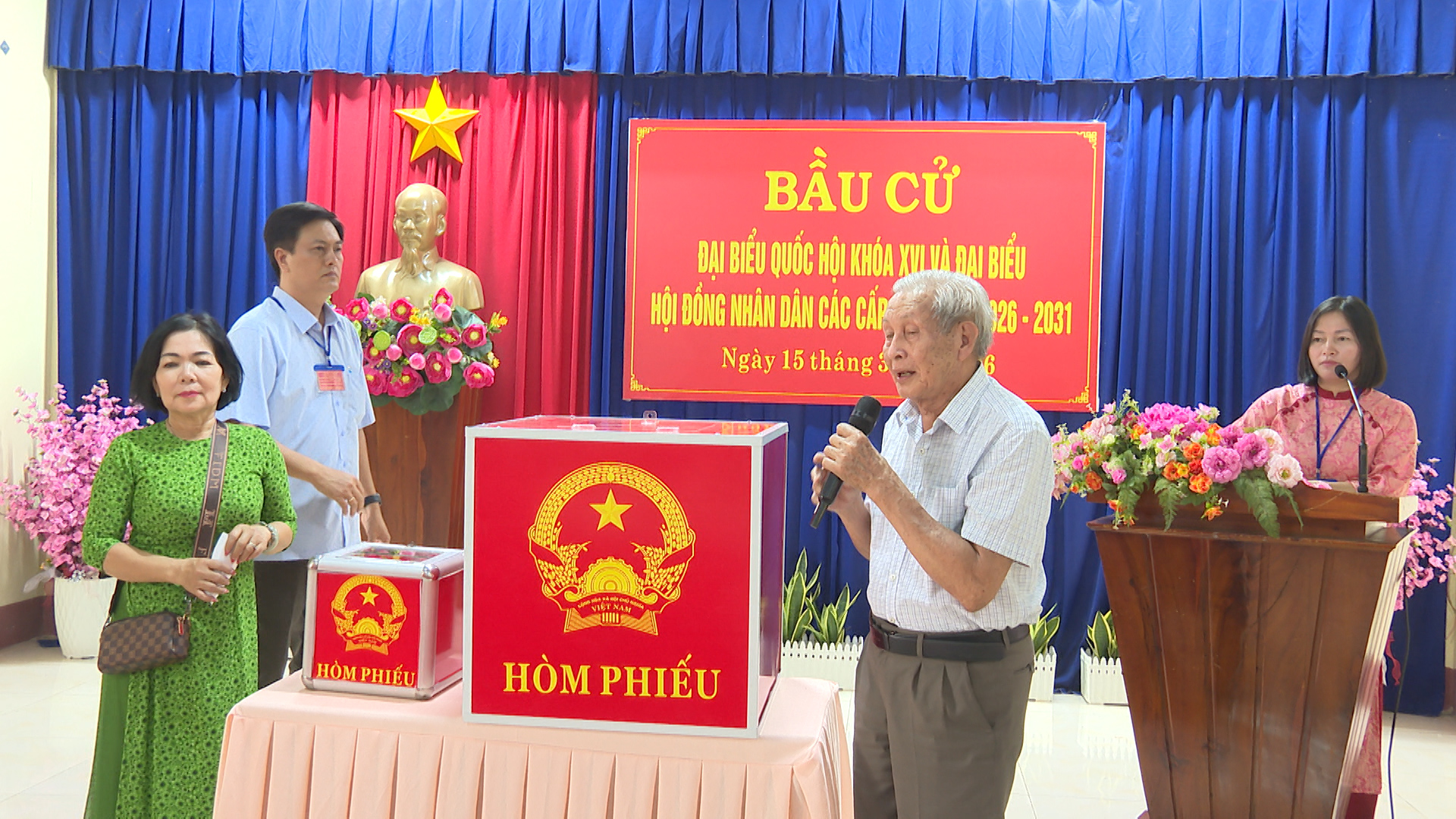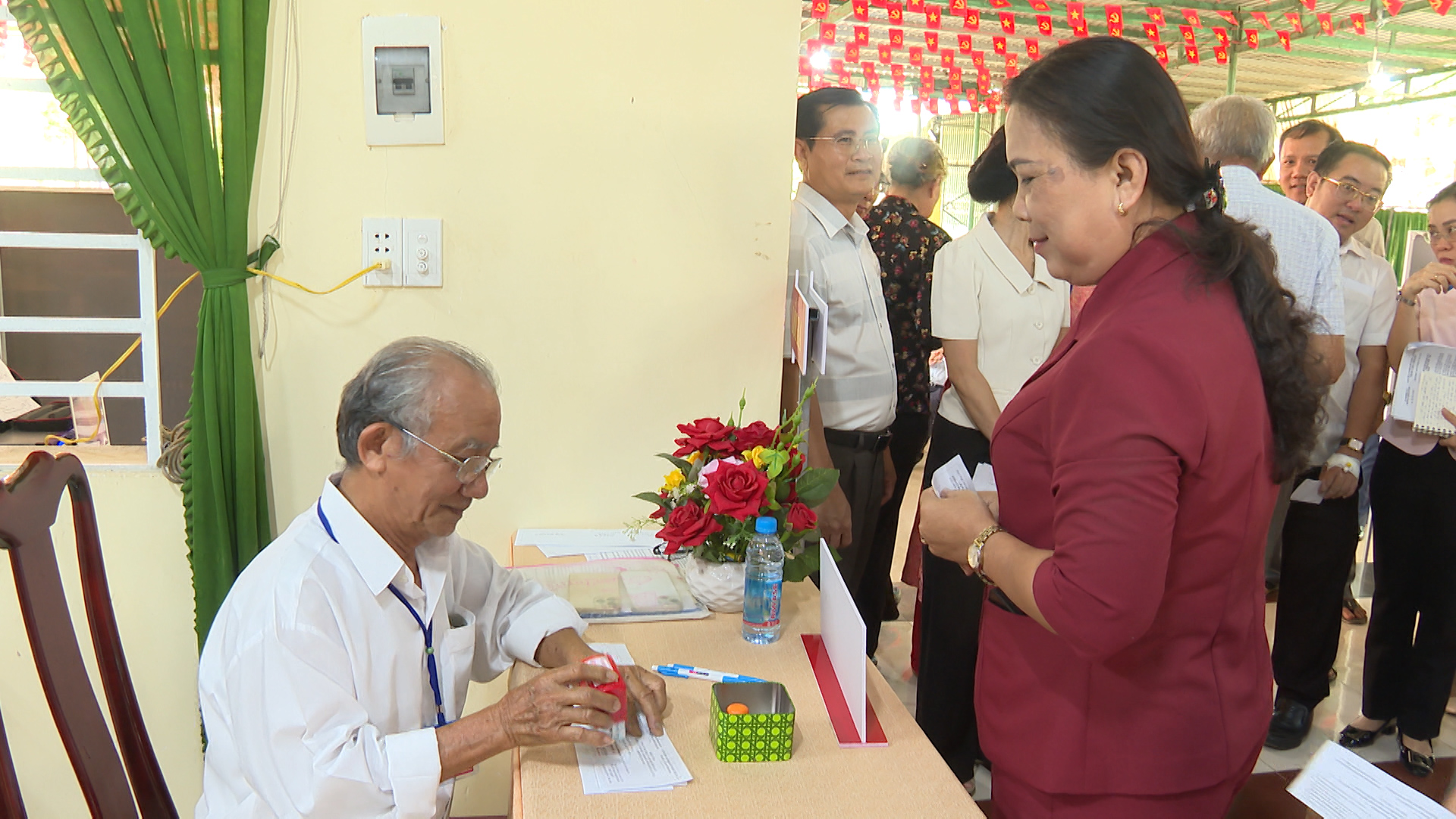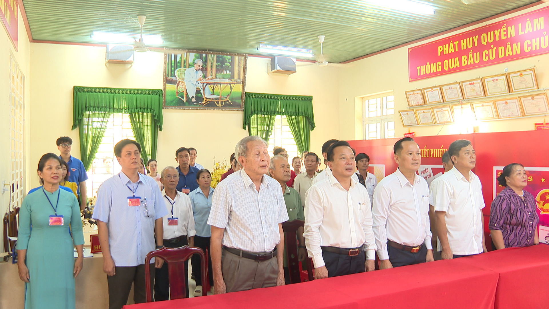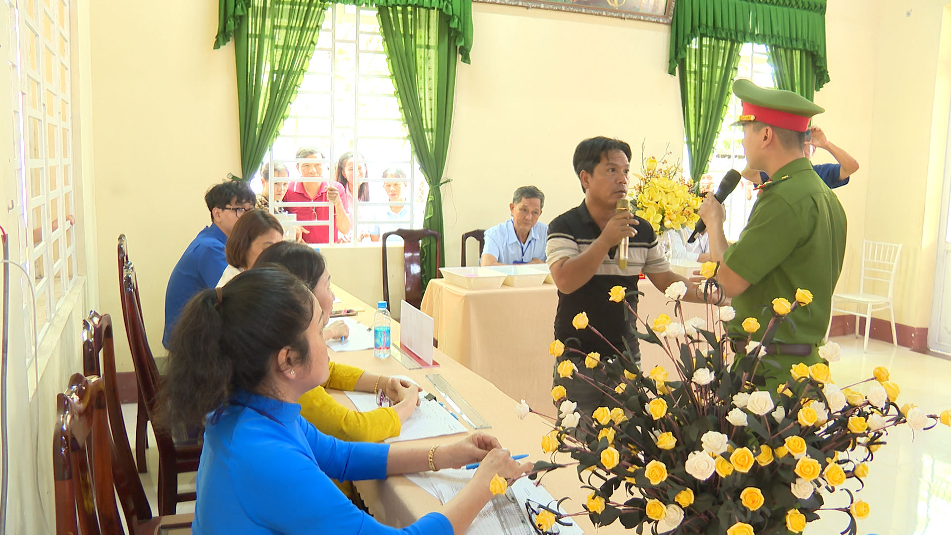 Đồng thời diễn tập xử lý các tình huống giả định: Tình huống 1: Cử tri là người cao tuổi, người khuyết tật cần hỗ trợ sử dụng hòm phiếu phụ để cho cử tri bỏ phiếu tại nơi ở. Tình huống 2: Cử tri làm mất thẻ cử tri; phản ánh, kiến nghị về sai sót thông tin trong danh sách cử tri tại khu vực bỏ phiếu. Tình huống 3: Cử tri tạm trú đến yêu cầu có nguyện vọng thực hiện quyền bầu cử tại khu vực bỏ phiếu. Tình huống 4: Cử tri khiếu nại về quyền cử tri (như: thắc mắc vì sao chỉ được bầu cử 02 cấp, không được bầu 03 cấp; cử tri khiếu nại không có tên trong danh sách cử tri; cử tri ở nước ngoài mới trở về nước yêu cầu quyền được bầu cử...). Tình huống 5: Cử tri có hành vi gây rối trật tự tại phòng bỏ phiếu. Tình huống 6: Xử lý sự cố xảy ra cháy, nổ tại khu vực bỏ phiếu. Qua đó nhằm nâng cao năng lực ứng phó, xử lý tỉnh huống và phối hợp giữa các lực lượng tham gia công tác bầu cử, đảm bảo cho cuộc bầu cử diễn ra an toàn và đạt kết quả tốt.
