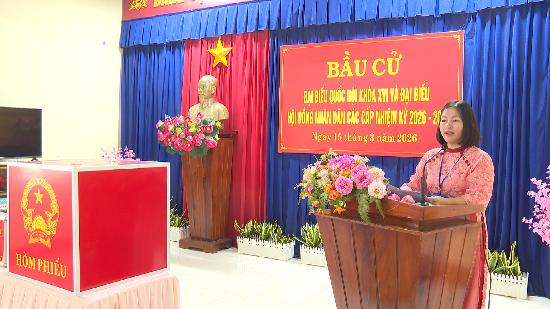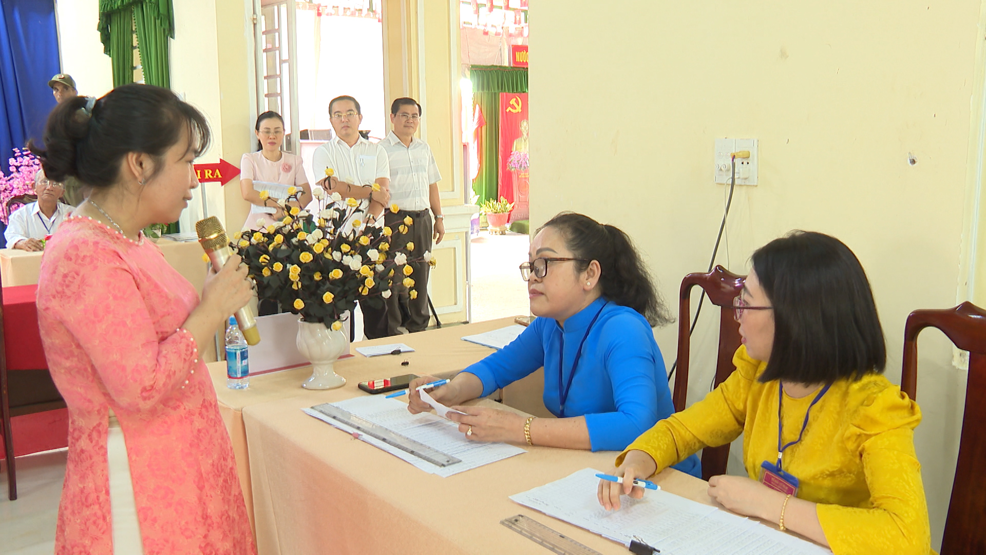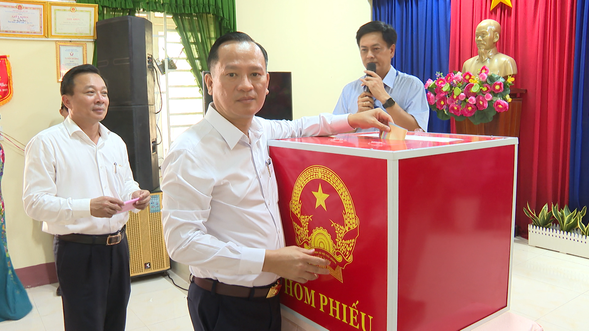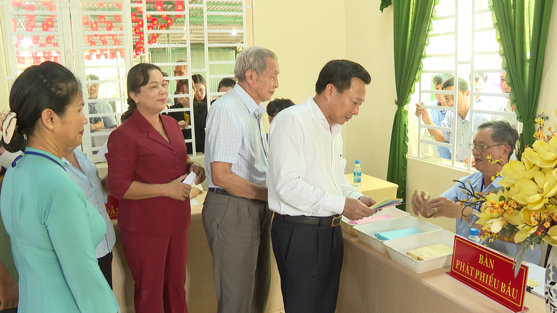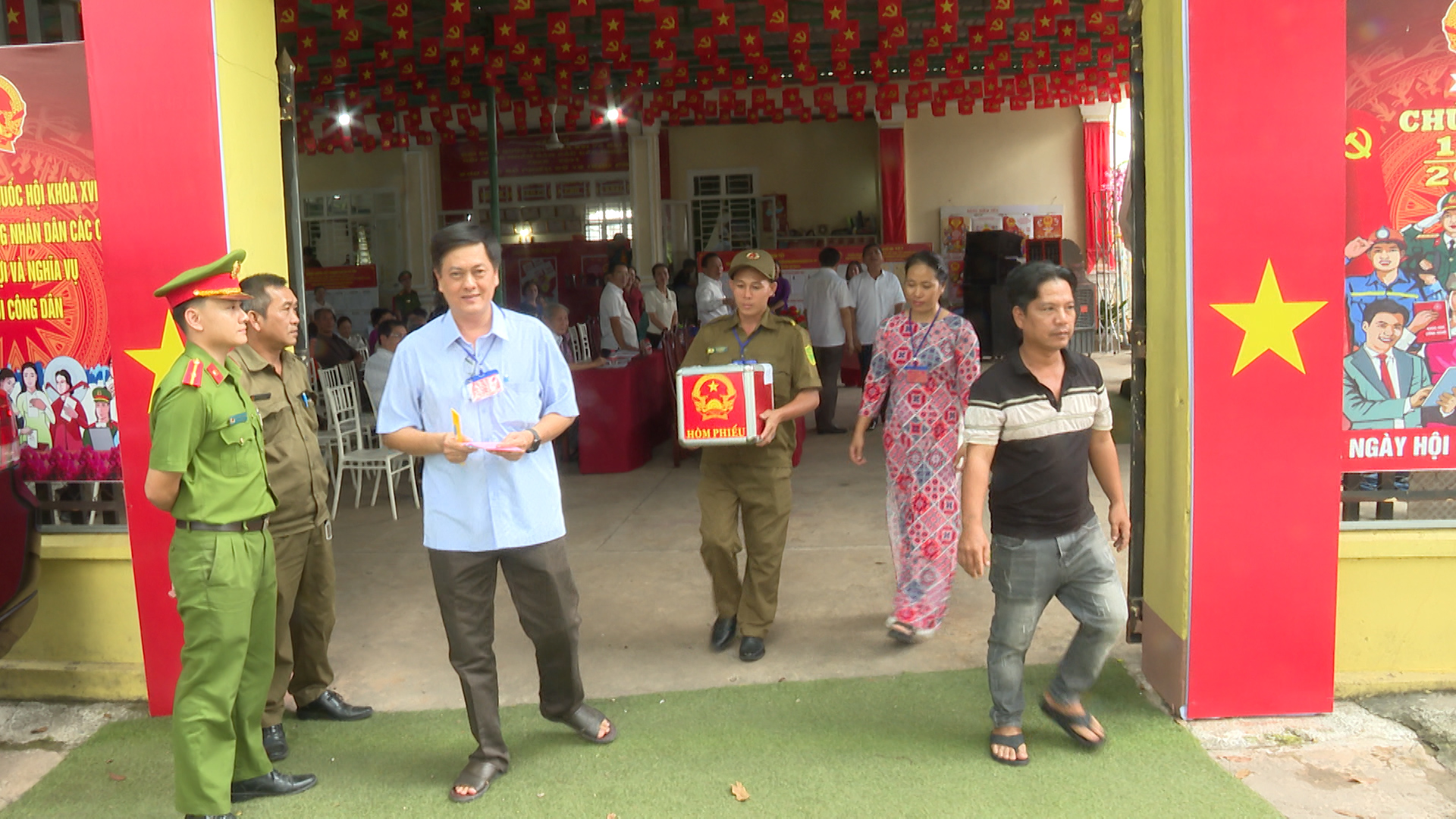 Đồng thời diễn tập xử lý các tình huống giả định: Tình huống 1: Cử tri là người cao tuổi, người khuyết tật cần hỗ trợ sử dụng hòm phiếu phụ để cho cử tri bỏ phiếu tại nơi ở. Tình huống 2: Cử tri làm mất thẻ cử tri; phản ánh, kiến nghị về sai sót thông tin trong danh sách cử tri tại khu vực bỏ phiếu. Tình huống 3: Cử tri tạm trú đến yêu cầu có nguyện vọng thực hiện quyền bầu cử tại khu vực bỏ phiếu. Tình huống 4: Cử tri khiếu nại về quyền cử tri (như: thắc mắc vì sao chỉ được bầu cử 02 cấp, không được bầu 03 cấp; cử tri khiếu nại không có tên trong danh sách cử tri; cử tri ở nước ngoài mới trở về nước yêu cầu quyền được bầu cử...). Tình huống 5: Cử tri có hành vi gây rối trật tự tại phòng bỏ phiếu. Tình huống 6: Xử lý sự cố xảy ra cháy, nổ tại khu vực bỏ phiếu. Qua đó nhằm nâng cao năng lực ứng phó, xử lý tỉnh huống và phối hợp giữa các lực lượng tham gia công tác bầu cử, đảm bảo cho cuộc bầu cử diễn ra an toàn và đạt kết quả tốt.