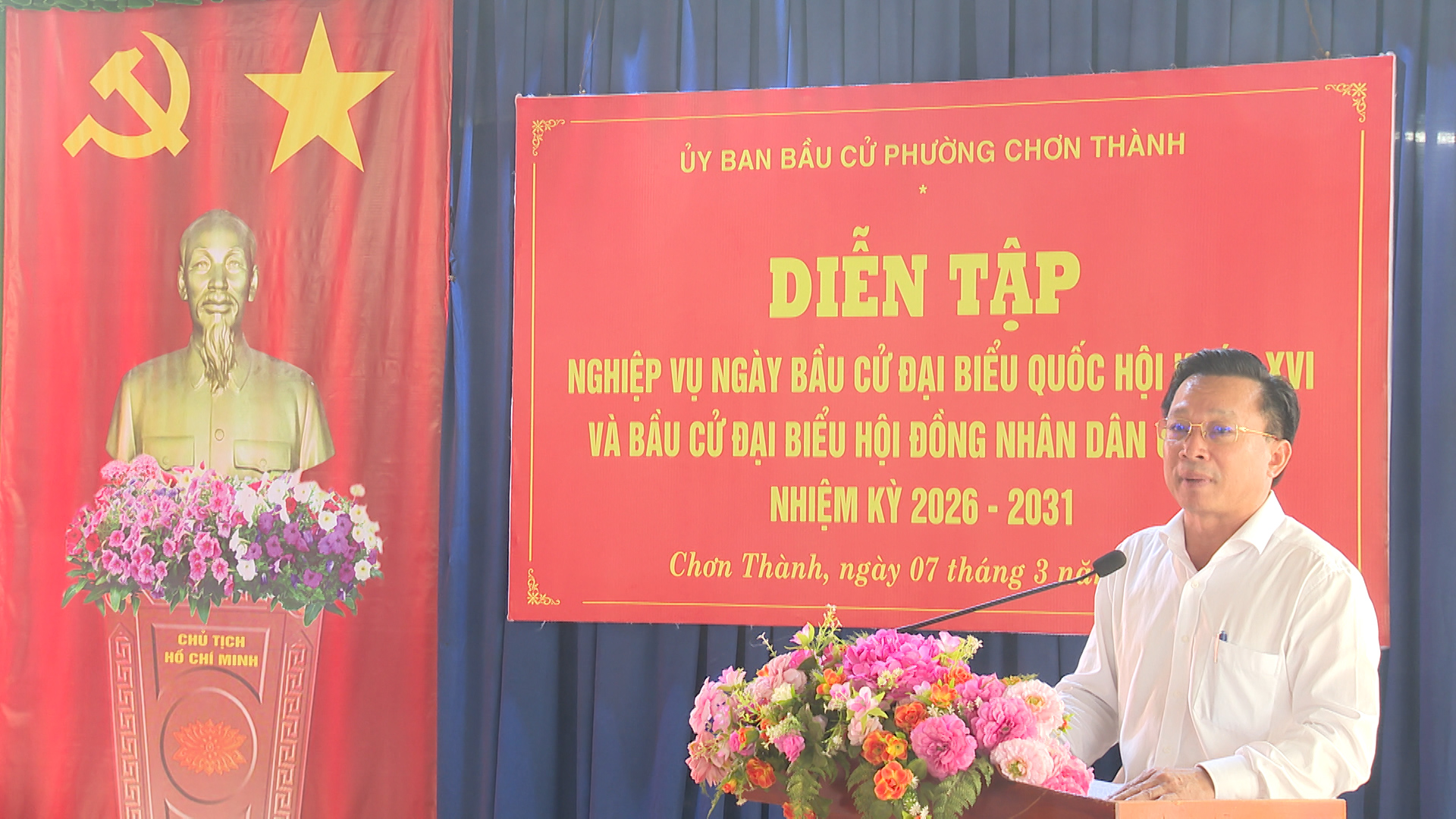 Phát biểu tại kết luận buổi diễn tập, đồng chí Nguyễn Anh Tài, Phó Bí thư Đảng ủy, Chủ tịch UBND phường, Chủ tịch Ủy ban bầu cử phường Chơn Thành, đã biểu dương Tổ bầu cử số 19 và các lực lượng đã thực hiện tốt các nội dung diễn tập. Qua công tác diễn tập nhằm giúp các Tổ bầu cử và các lực lượng liên quan nắm vững quy trình, nhiệm vụ và kỹ năng tổ chức Ngày bầu cử vào ngày 15/3/2026 ( chủ nhật) theo đúng quy định của pháp luật./.
