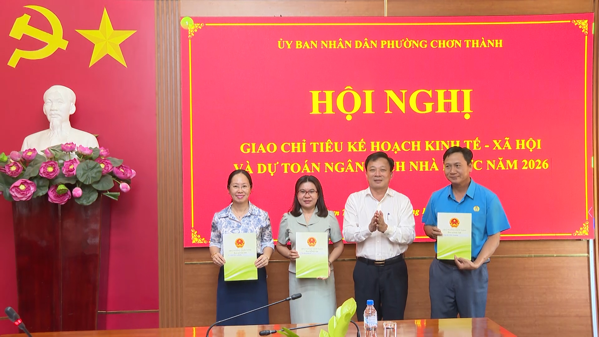 Trên cơ sở Nghị quyết của Ban chấp hành Đảng bộ phường và HĐND phường, UBND phường Chơn Thành đã quyết định giao chi tiêu kế hoạch phát triển kinh tế - xã hội, quốc phòng an ninh năm 2026, bao gồm: giá trị sản xuất ngành công nghiệp - xây dựng là 19.273 tỷ đồng; ngành nông nghiệp 1.360 tỷ đồng; doanh thu ngành dịch vụ 4.426 tỷ đồng; thu ngân sách nhà nước 298,34 tỷ đồng; giải quyết việc làm cho 1.200 lao động; tỷ lệ bao phủ bảo hiểm y tế đạt 96%. Tỷ lệ lao động trong độ tuổi tham gia bảo hiểm xã hội 69%. Số trường học đạt chuẩn Quốc gia: 03/08 trường (37,5%). Tỷ lệ học sinh trong độ tuổi đến trường: 100% .Tỷ lệ gia đình đạt danh hiệu “Gia đình văn hóa”: 91% trở lên. Tỷ lệ khu phố đạt danh hiệu “Khu phố văn hóa”: 83,3% . Các chỉ tiêu về môi trường: Tỷ lệ chất thải nguy hại được thu gom, xử lý phấn đấu đạt 60%.Tỷ lê chất thải rắn sinh hoạt được thu gom, xử lý đảm bảo tiêu chuẩn, quy chuẩn đối với đô thị đạt từ 80% trở lên. Các chỉ tiêu về quốc phòng - an ninh: Hoàn thành 100% chỉ tiêu tuyển quân hằng năm. Phấn đấu kéo giảm số vụ về trật tự xã hội – công tác đảm bảo trật tự xã hội. Chuyển hóa thành công 04 khu phố không ma túy. Đồng thời công bố quyết định giao dự toán thu ngân sách nhà nước, chi ngân sách địa phường năm 2026: tổng số thu 305.514.800.000 đồng, tổng số chi 305.514.800.000 đồng.