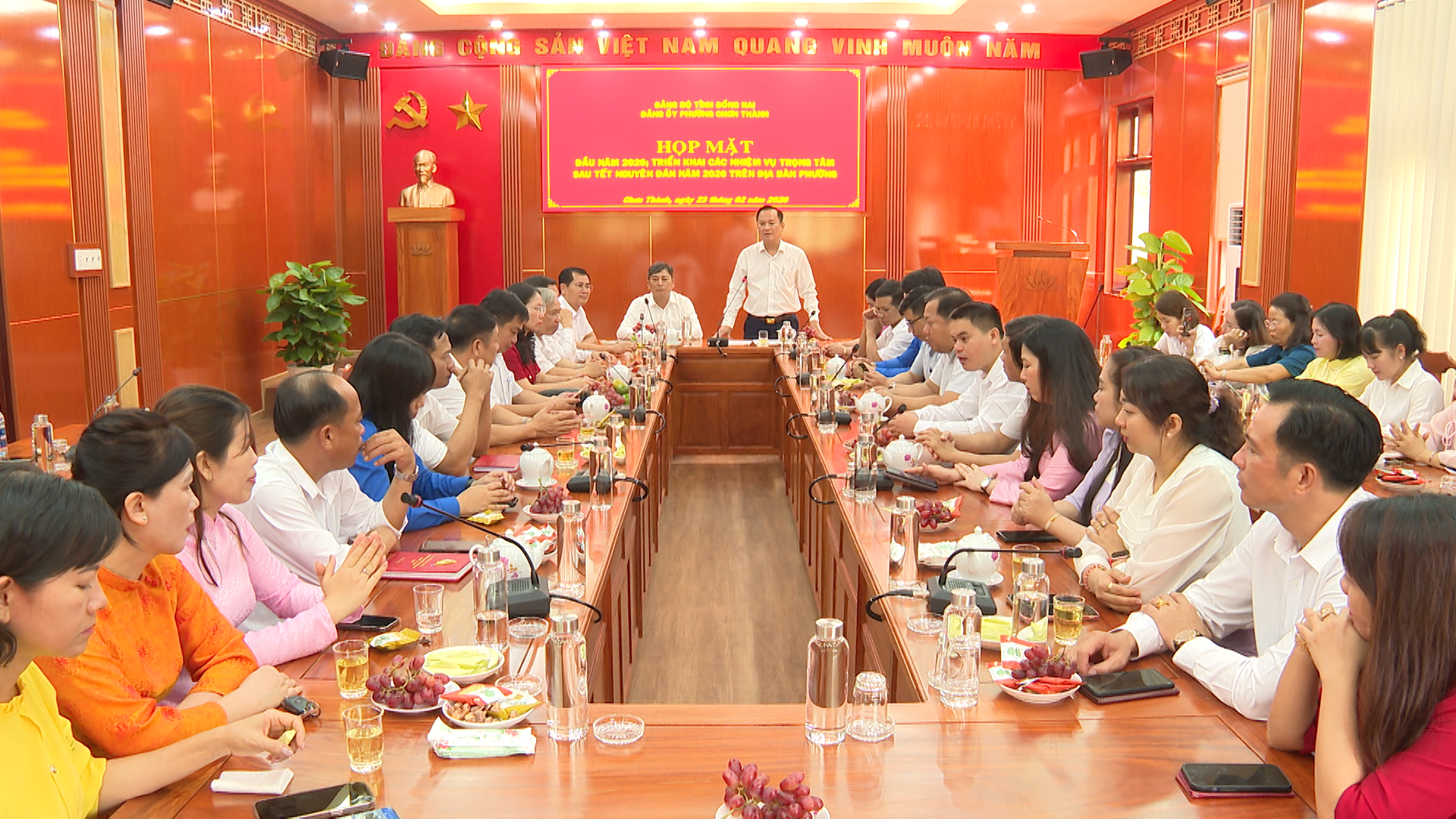 Thường trực Đảng ủy phường Chơn Thành đề nghị cán bộ, công chức, viên chức, người lao động phường, tiếp tục nêu cao tinh thần phục vụ Nhân dân, thực hiện đúng phương châm: “Đảng mạnh - dân tin - phường Chơn Thành phát triển bền vững”. Bộ phận một cửa cần bảo đảm giải quyết thủ tục hành chính đúng hạn, công khai, minh bạch; đẩy mạnh ứng dụng công nghệ số, nâng cao tỷ lệ hồ sơ trực tuyến. Tập trung triển khai các nhiệm vụ phát triển kinh tế – xã hội ngay từ quý I. Các bộ phận chuyên môn rà soát chỉ tiêu năm 2026; cụ thể hóa thành kế hoạch theo tháng, theo quý; phân công rõ người, rõ việc, rõ tiến độ, rõ sản phẩm. Tăng cường công tác quản lý trật tự xây dựng, đất đai, vệ sinh môi trường; thực hiện hiệu quả các mô hình “Tuyến đường sạch, xanh, sáng, đẹp, an toàn”, gắn với xây dựng phường Chơn Thành theo định hướng đô thị văn minh, hạnh phúc. Chủ động nắm tình hình doanh nghiệp, hộ kinh doanh; đồng hành, tháo gỡ khó khăn, tạo môi trường thuận lợi cho sản xuất, kinh doanh. Bảo đảm quốc phòng – an ninh, giữ vững ổn định địa bàn: Lực lượng Công an, Quân sự tiếp tục duy trì nghiêm chế độ trực sẵn sàng chiến đấu; nắm chắc tình hình từ cơ sở; không để phát sinh điểm nóng. Chủ động chuẩn bị tốt công tác tuyển chọn, gọi công dân nhập ngũ năm 2026; thực hiện đúng luật, công khai, minh bạch, bảo đảm chỉ tiêu trên giao. Phát huy vai trò của MTTQ và các tổ chức chính trị – xã hội: ngay từ đầu năm, cần xây dựng kế hoạch vận động đoàn viên, hội viên tham gia các phong trào thi đua yêu nước; đẩy mạnh công tác dân vận chính quyền; phát huy tinh thần đoàn kết trong cộng đồng dân cư. Tiếp tục nhân rộng các mô hình tự quản, mô hình “gần dân – sát dân – vì dân”; lắng nghe tâm tư, nguyện vọng chính đáng của Nhân dân, kịp thời phản ánh, đề xuất với Đảng ủy, chính quyền giải quyết. Chuẩn bị tốt các nội dung phục vụ công tác xây dựng Đảng năm 2026: các cơ quan, đơn vị cần chủ động tham mưu chương trình kiểm tra, giám sát; kế hoạch đào tạo, bồi dưỡng cán bộ; nâng cao chất lượng sinh hoạt chi bộ; tăng cường ứng dụng chuyển đổi số trong quản lý đảng viên, điều hành công việc. Mỗi cán bộ, đảng viên phải thực sự gương mẫu về tác phong, lề lối làm việc; nói đi đôi với làm; lấy hiệu quả công việc làm thước đo uy tín. Đối với công tác bầu cử đại biểu Quốc hội và đại biểu Hội đồng nhân dân các cấp nhiệm kỳ 2026 – 2031, đề nghị toàn hệ thống chính trị phường xác định đây là nhiệm vụ chính trị đặc biệt quan trọng của năm 2026. Tin tưởng rằng, với tinh thần trách nhiệm và sự đồng lòng, phường Chơn Thành tổ chức thành công cuộc bầu cử Quốc hội và HĐND các cấp, góp phần vào sự phát triển chung của tỉnh và đất nước.