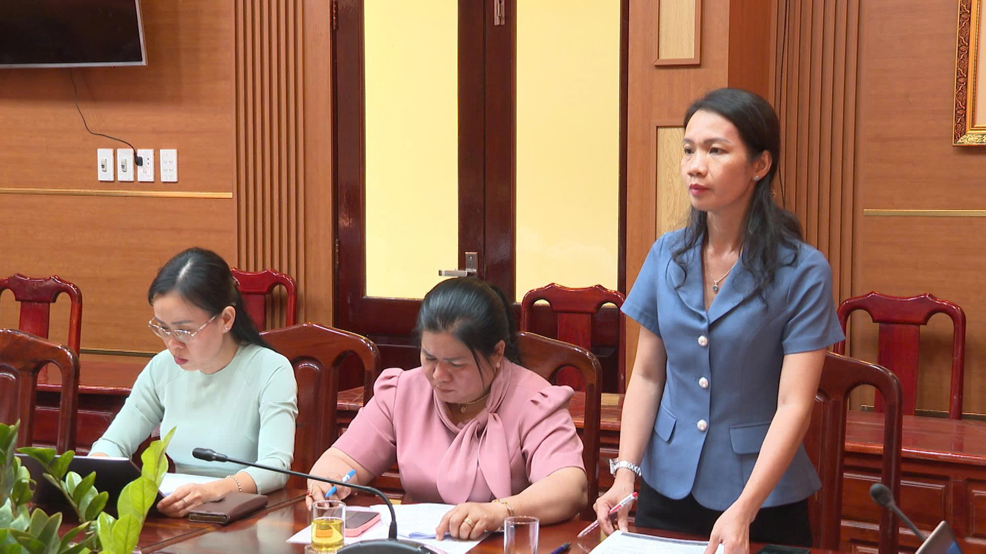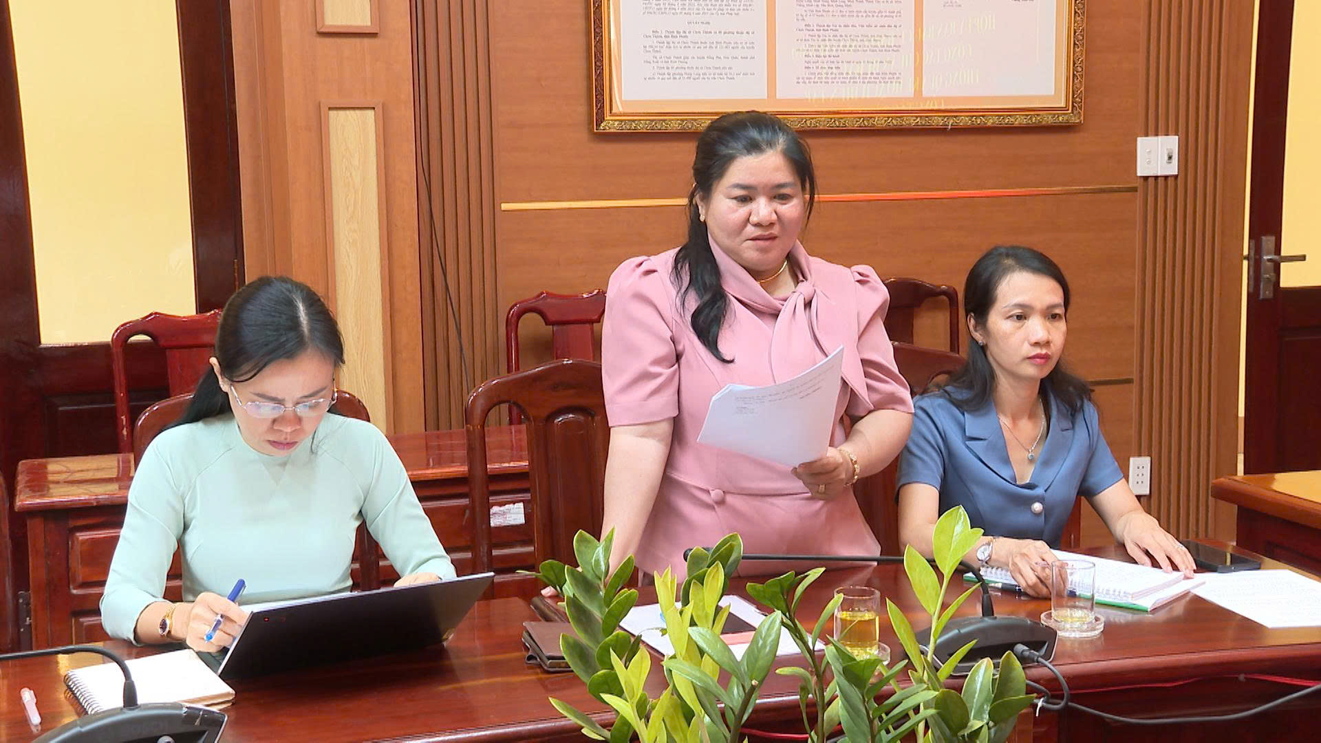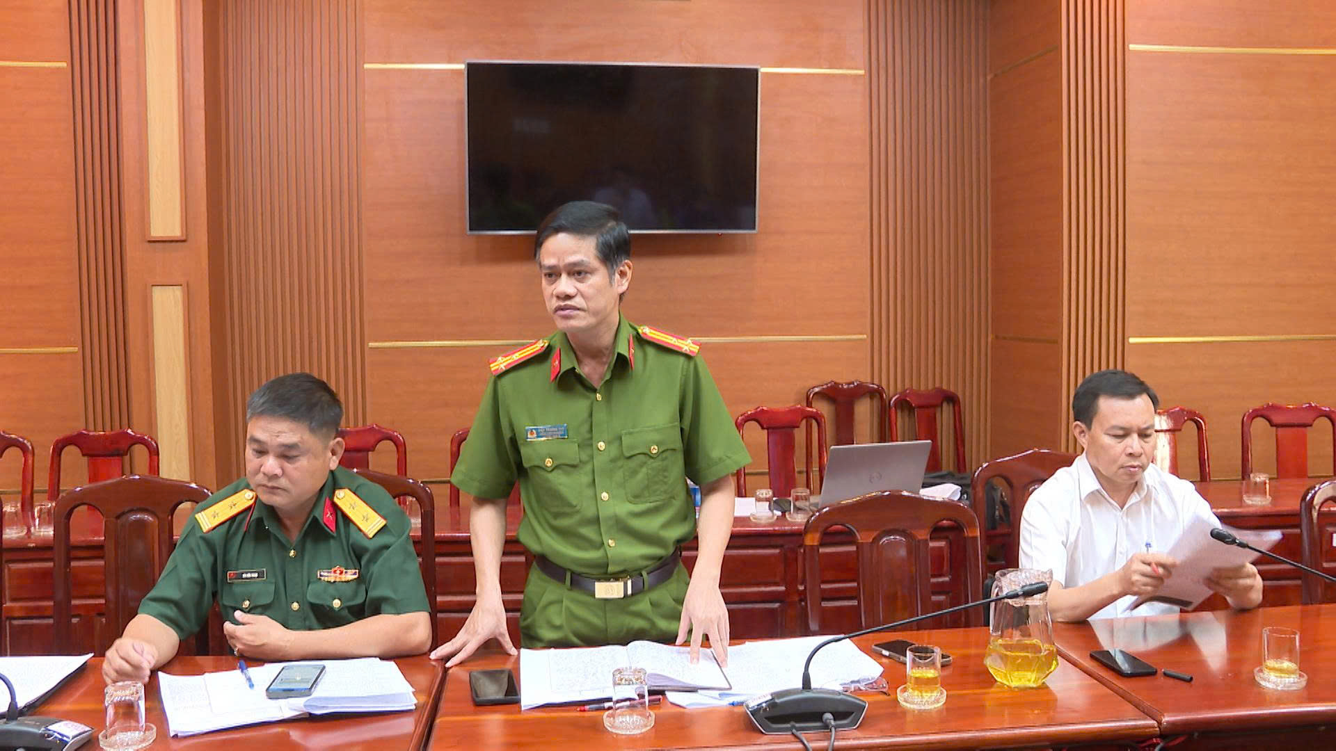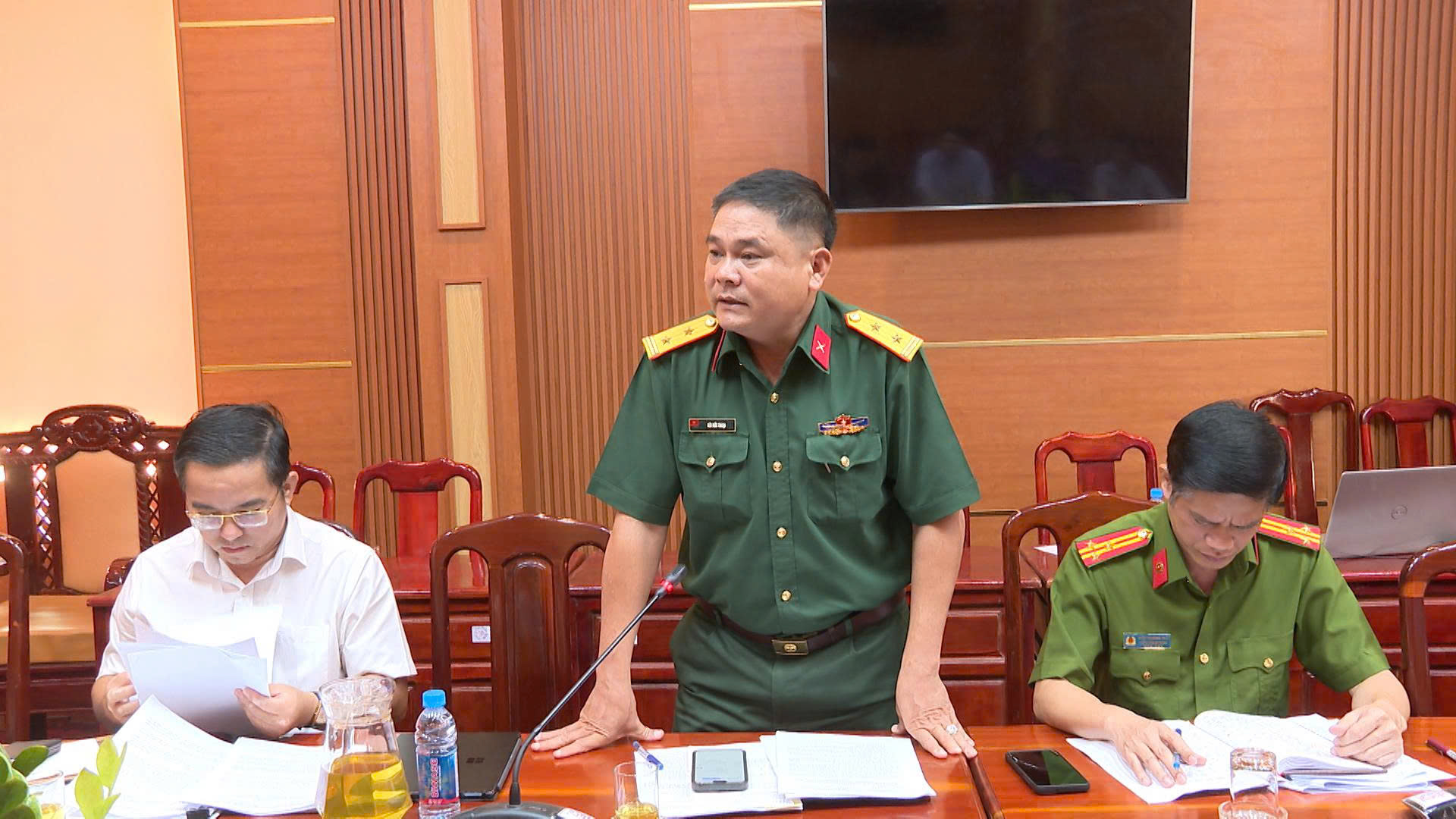 Thành viên UBBC phường Chơn Thành và lãnh đạo các cơ quan, đơn vị phát biểu tại cuộc họp