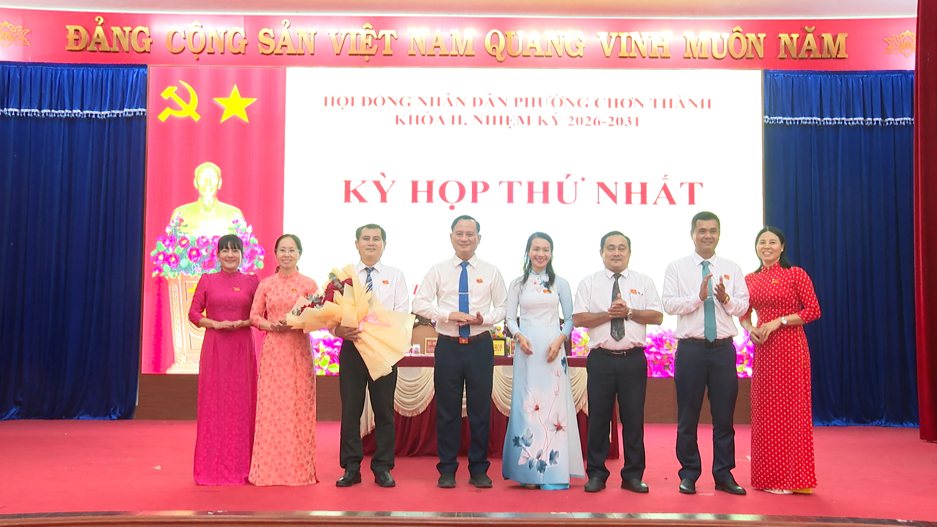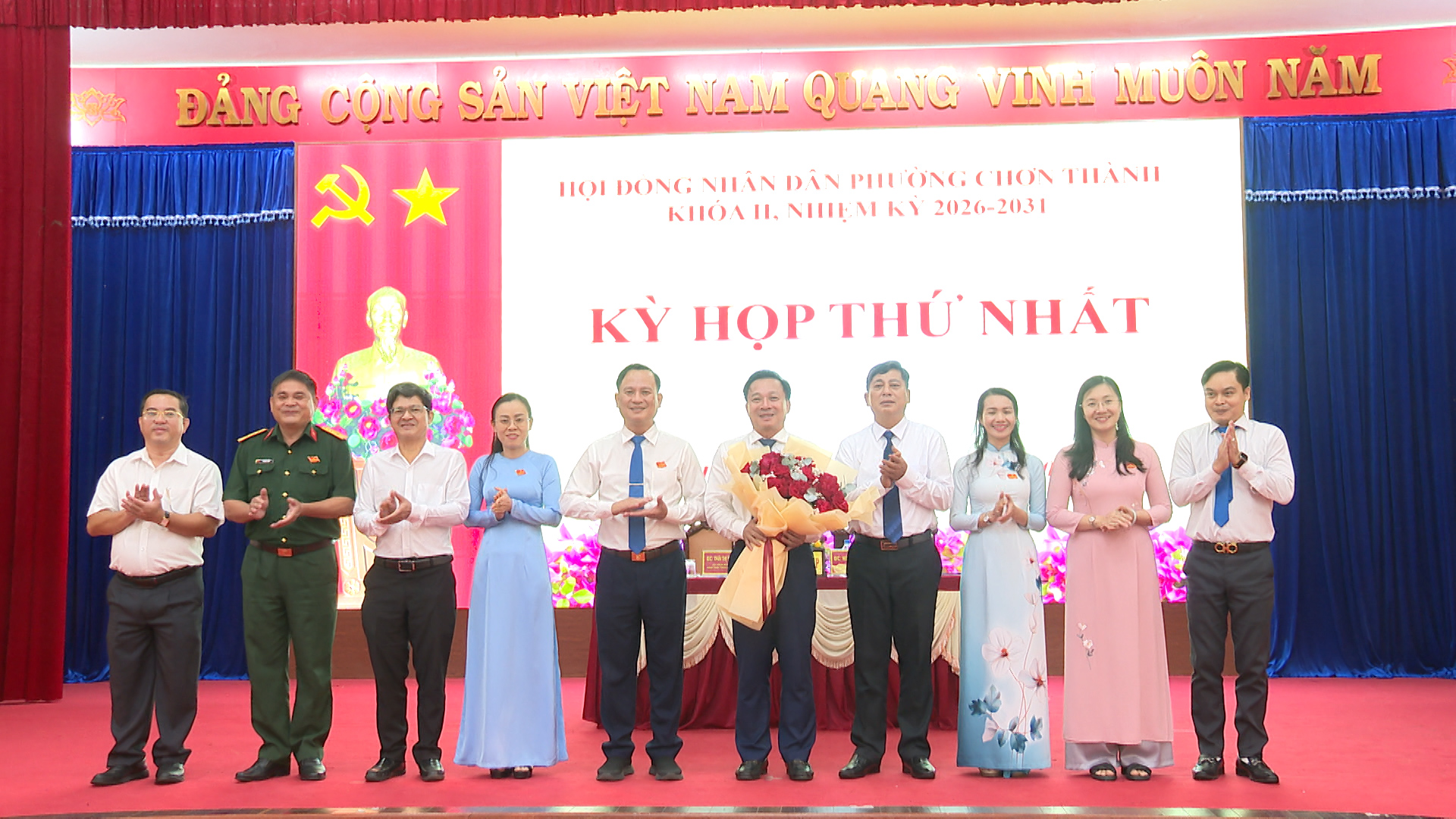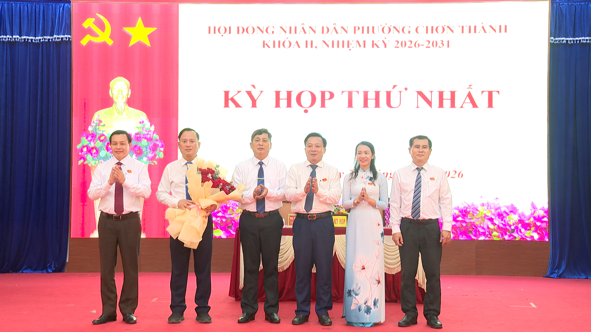 Lãnh đạo phường Chơn Thành, tặng hoa chúc mừng các chức danh chủ chốt của HĐND phường khóa II, nhiệm kỳ 2026-2031 ra mắt tại kỳ họp