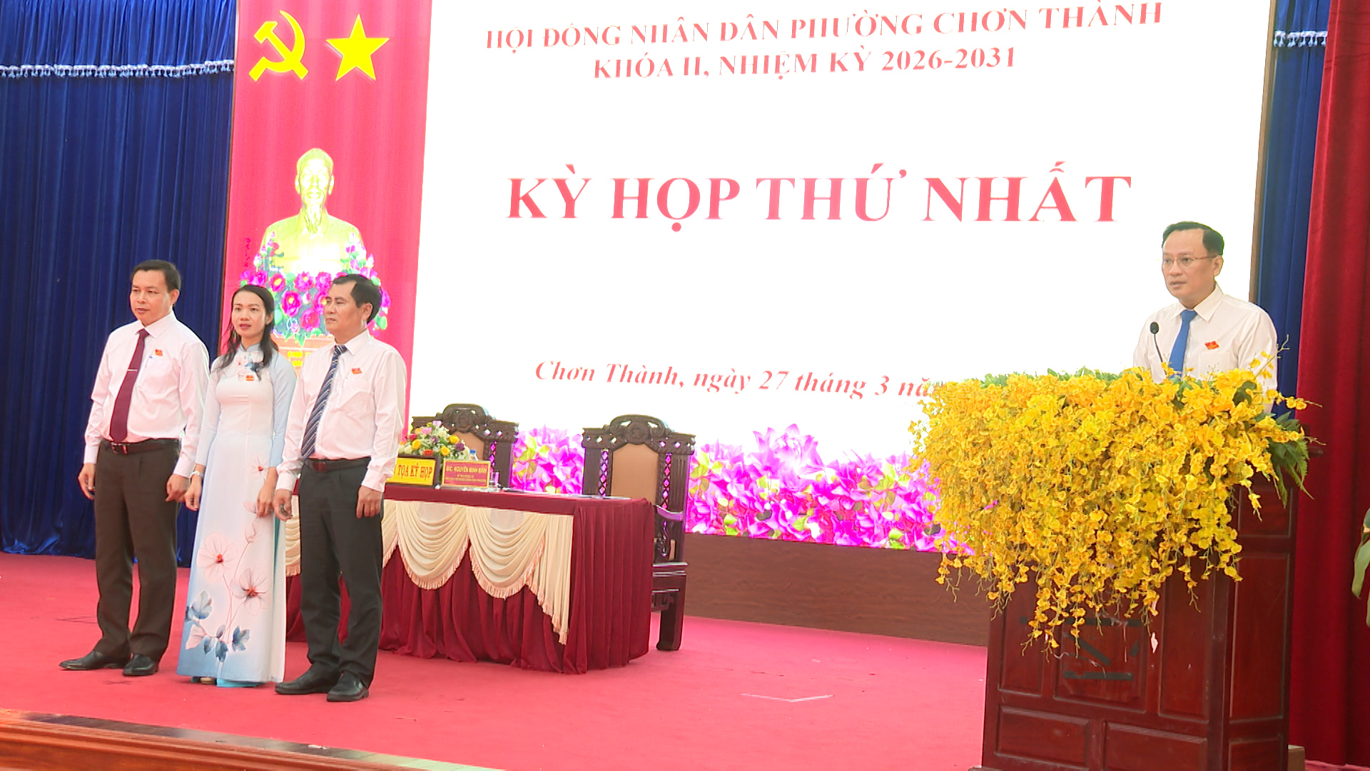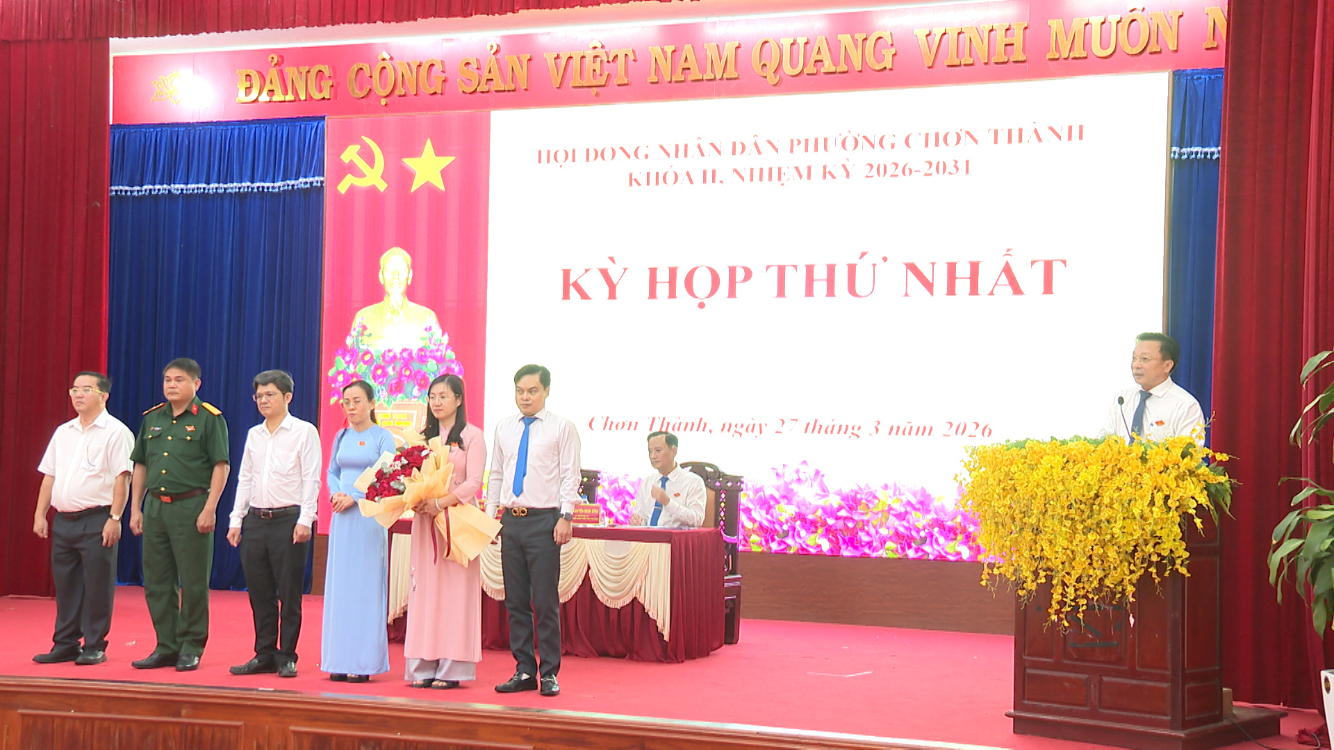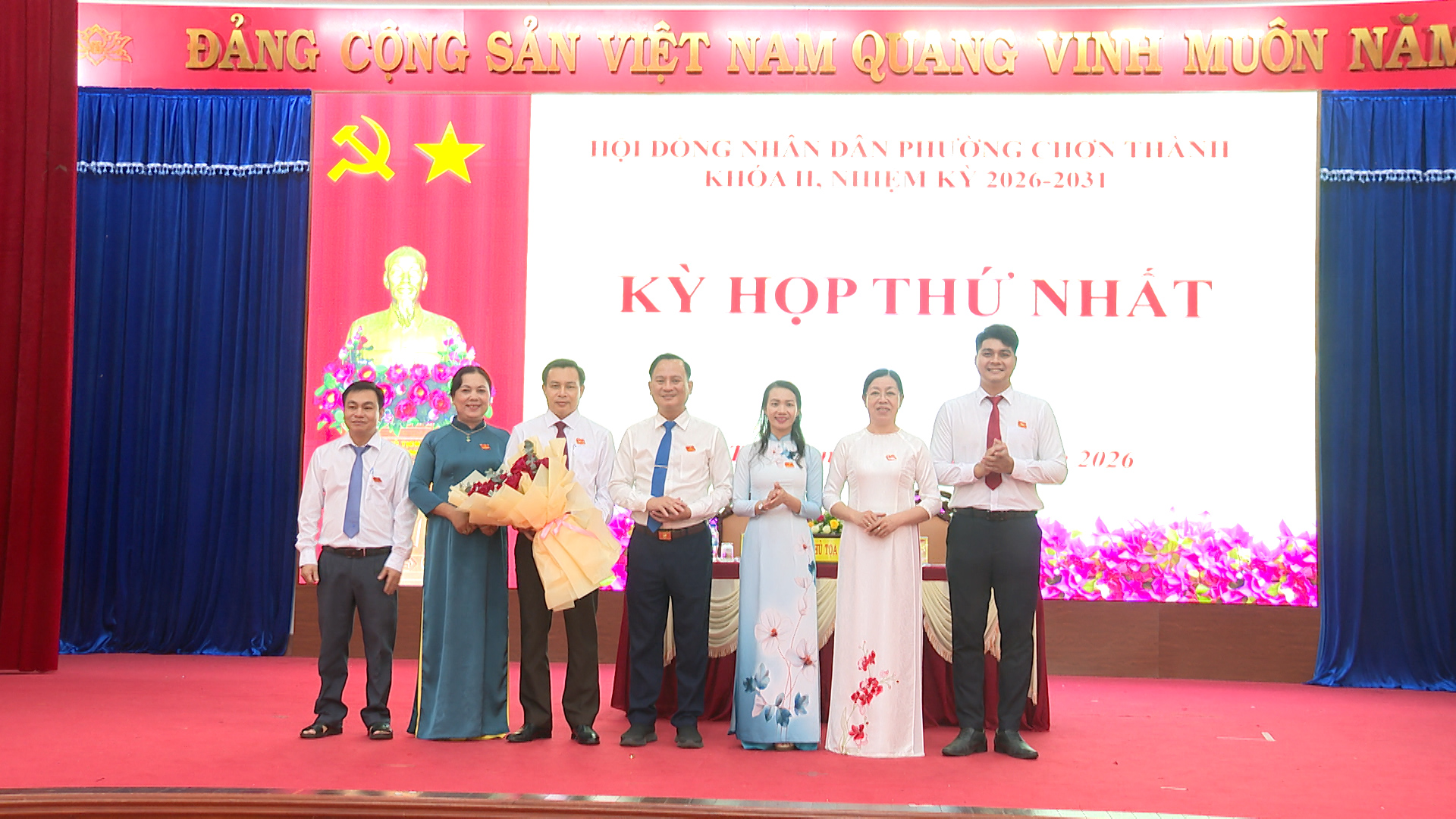 Lãnh đạo phường Chơn Thành, tặng hoa chúc mừng các chức danh chủ chốt của HĐND phường khóa II, nhiệm kỳ 2026-2031 ra mắt tại kỳ họp