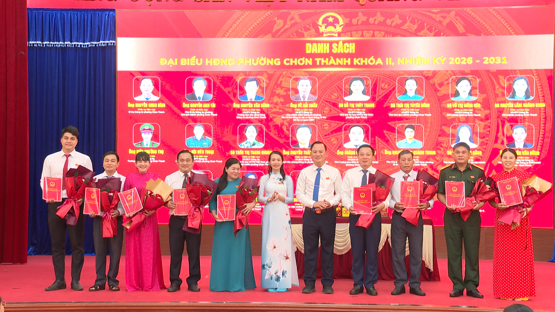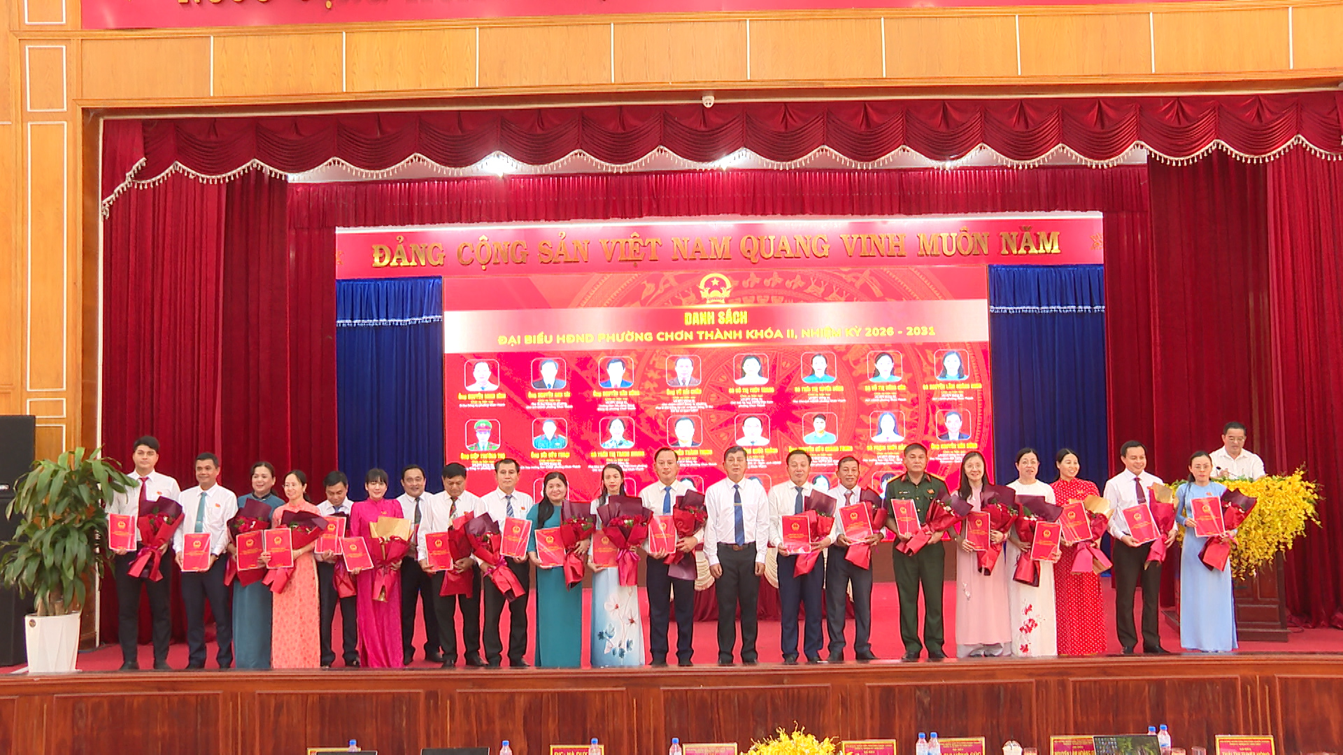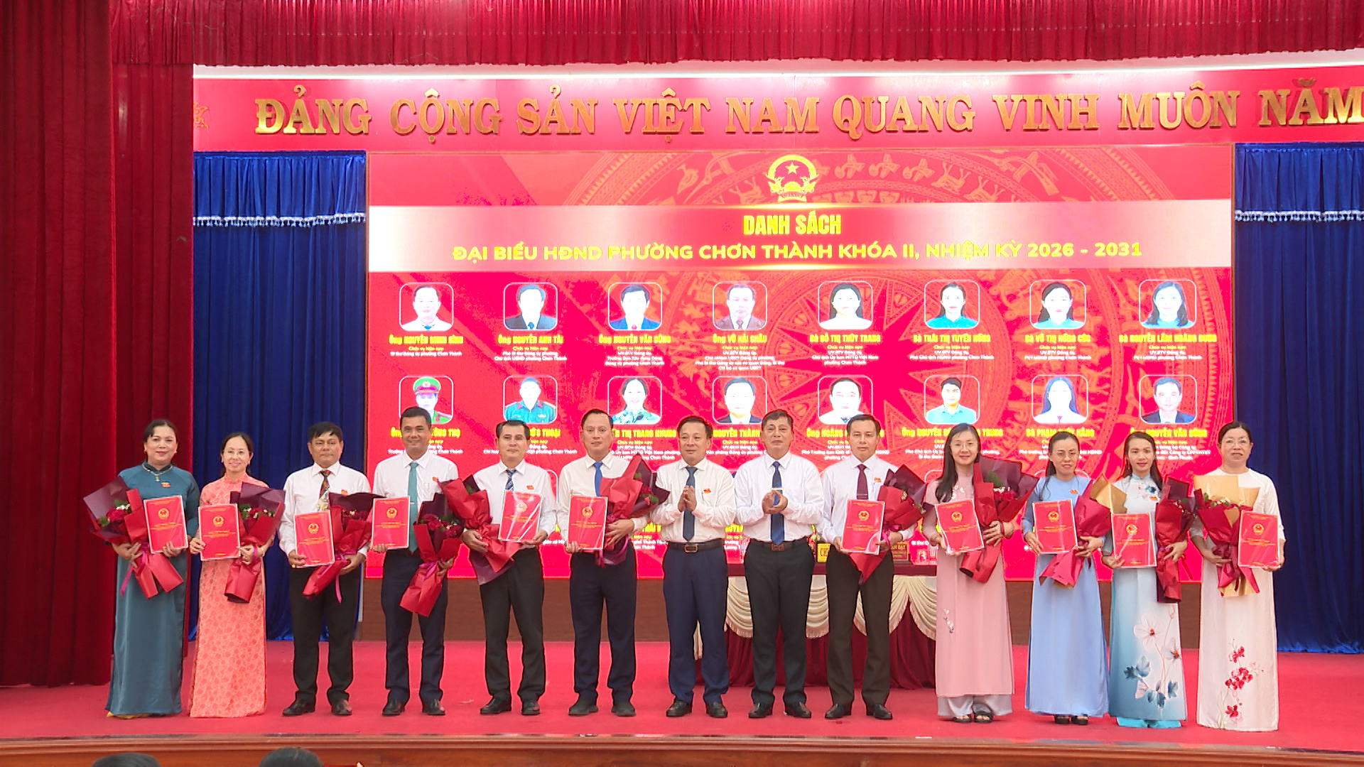 Ủy ban bầu cử phường Chơn Thành, trao giấy chứng nhận xác nhận tư cách đối với 22 đại biểu HĐND phường khóa II, nhiệm kỳ 2026-2031
