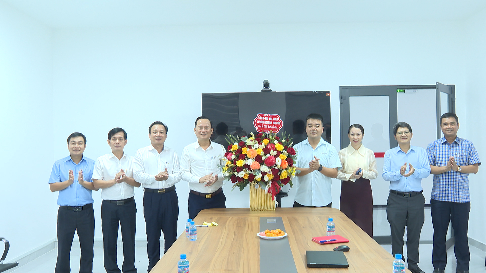 Thường trực Đảng ủy phường Chơn Thành, tặng hoa chúc mừng Công ty TNHH Mustang Battery thuộc KCN Becamex – Bình Phước