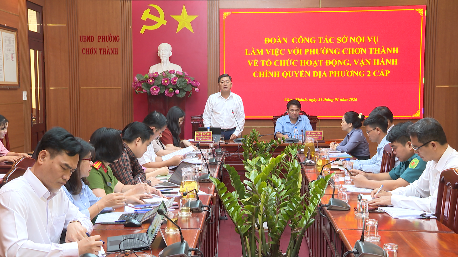 Phát biểu kết luận tại buổi làm việc Phó Giám đốc Sở Nội vụ tỉnh Mai Xuân Tuân, đã ghi nhận những kiến nghị của phường Chơn Thành. Đoàn công tác sẽ tổng hợp để báo cáo cấp trên, để có hướng chỉ đạo, thực hiện tốt về hoạt động, vận hành chính quyền địa phương 2 cấp trên địa bàn tỉnh.