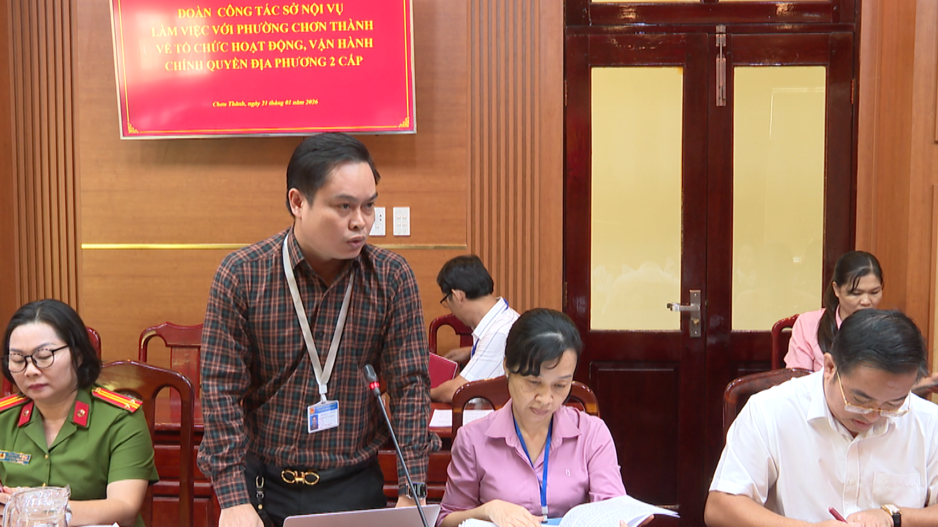 Lãnh đạo các cơ quan, đơn vị của phường Chơn Thành, phát biểu ý kiến tại buổi làm việc