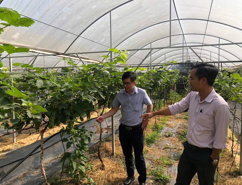 Anh Nguyễn Duy Vương giới thiệu quá trình xây dựng mô hình, kỹ thuật trồng, chăm sóc nho
