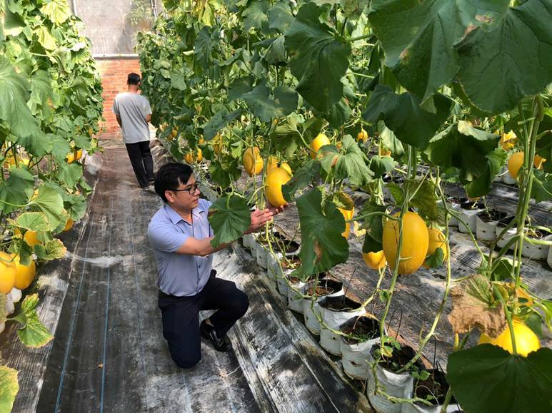Một điển hình khác là mô hình Dưa lưới nhà màng của hội viên Đặng Tiến Luyện - Hội viên Nông dân khu phố Thành Tâm 1, phường Chơn Thành.