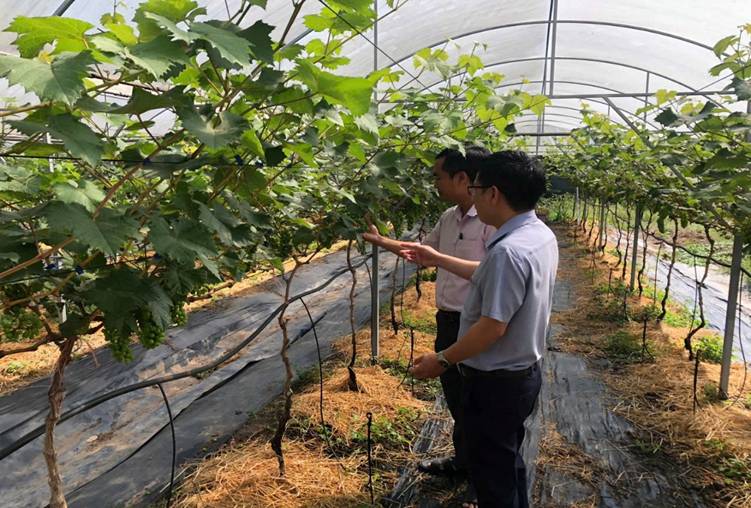 Tại buổi tham quan, đoàn đã được anh Nguyễn Duy Vương giới thiệu về quá trình xây dựng mô hình, kỹ thuật trồng, chăm sóc nho và hiệu quả kinh tế bước đầu mang lại. Các hội viên đã trao đổi, thảo luận sôi nổi, chia sẻ kinh nghiệm sản xuất nhằm áp dụng phù hợp với điều kiện thực tế của từng hộ.