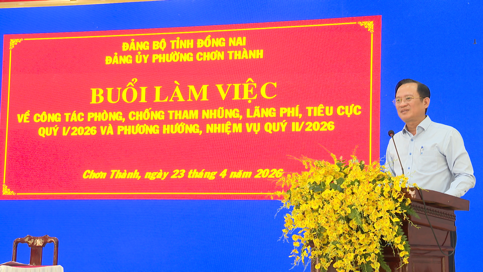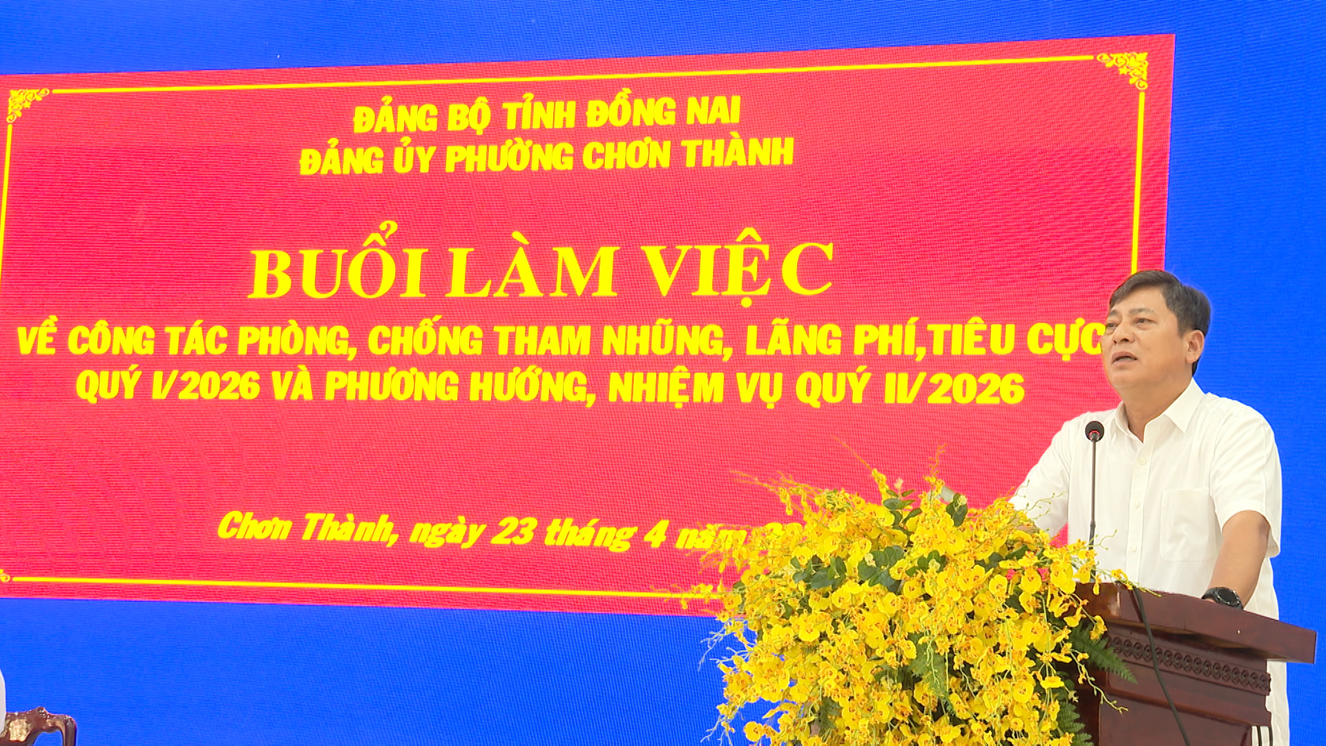 <figure class="image"><img style="aspect-ratio:1920/1080;" src="https://chonthanh.dongnai.gov.vn/uploads/chonthanh/news/2026_04/a_5.jpg" width="1920" height="1080" /></figure><p style="text-align:center;"><i>Đồng chí Nguyễn Minh Bình, Bí thư Đảng ủy, Chủ tịch HĐND phường Chơn Thành cùng đồng chí Hà Duy Đạt, Phó Bí thư Thường trực Đảng ủy phường, chủ trì buổi làm việc</i></p><figure class="image"><img style="aspect-ratio:1920/1080;" src="https://chonthanh.dongnai.gov.vn/uploads/chonthanh/news/2026_04/a3_5.jpg" width="1920" height="1080" /></figure><figure class="image"><img style="aspect-ratio:1920/1080;" src="https://chonthanh.dongnai.gov.vn/uploads/chonthanh/news/2026_04/a4_6.jpg" width="1920" height="1080" /></figure><p style="text-align:center;"><i>Các đại biểu tham dự buổi làm việc</i></p><p style="text-align:justify;"><span style="color:black;font-family:&#039;Times New Roman&#039;,serif;font-size:14.0pt;"><span style="line-height:107%;">Trong quý I/2026 Đảng ủy phường Chơn Thành đã chú trọng lãnh đạo, chỉ đạo thực hiện tốt công tác tiếp công dân, xử lý đơn, thư, giải quyết khiếu nại tố cáo, phòng chống tham nhũng, tiêu cực. Thực hiện đồng bộ giải pháp phòng ngừa tham nhũng, nâng cao hiệu lực quản lý nhà nước, đẩy mạnh cải cách hành chính, công khai minh bạch tài chính, ngân sách, mua sắm tài sản công, đầu tư xây dựng đất đại. Nâng cao chất lượng kiểm tra, giám sát các lĩnh vực nhạy cảm, phát hiện xử lý nghiêm sai phạm. Qua đó nâng cao ý thức trách nhiệm cán bộ, công chức, phát huy vai trò người đứng đầu. Tiếp tục thực hiện công tác giáo dục liêm chính, giám sát chặt chẽ các hoạt động có thể dẫn đến hành vi tham nhũng…</span></span></p><figure class="image"><img style="aspect-ratio:1920/1080;" src="https://chonthanh.dongnai.gov.vn/uploads/chonthanh/news/2026_04/a1_6.jpg" width="1920" height="1080" /></figure><p style="text-align:center;"><i>Đồng chí Hà Duy Đạt, Phó Bí thư Thường trực Đảng ủy phường, phát biểu điều hành thảo luận tại buổi làm việc</i></p><p><span style="font-size:14px;">Tại buổi làm việc lãnh đạo các chi, đảng bộ trực thuộc cũng đã có những thảo luận, trao đổi về các giải pháp để thực hiện tốt về công tác phòng, chống tham nhũng, lãng phí, tiêu cực trên địa bàn.</span><span style="color:black;font-family:&#039;Times New Roman&#039;,serif;font-size:14px;"><span style="line-height:107%;">&nbsp;</span></span></p><figure class="image"><img style="aspect-ratio:1920/1080;" src="https://chonthanh.dongnai.gov.vn/uploads/chonthanh/news/2026_04/a5_5.jpg" width="1920" height="1080" /></figure><figure class="image"><img style="aspect-ratio:1920/1080;" src="https://chonthanh.dongnai.gov.vn/uploads/chonthanh/news/2026_04/a6_4.jpg" width="1920" height="1080" /></figure><figure class="image"><img style="aspect-ratio:1920/1080;" src="https://chonthanh.dongnai.gov.vn/uploads/chonthanh/news/2026_04/a9_2.jpg" width="1920" height="1080" /></figure><figure class="image"><img style="aspect-ratio:1920/1080;" src="https://chonthanh.dongnai.gov.vn/uploads/chonthanh/news/2026_04/a10_3.jpg" width="1920" height="1080" /></figure><p style="text-align:center;"><span style="color:black;font-family:&#039;Times New Roman&#039;,serif;font-size:14.0pt;"><i><span style="line-height:107%;">Đại diện cấp ủy các chi, đảng bộ trực thuộc, phát biểu thảo luận, trao đổi&nbsp;tại buổi làm việc</span></i></span></p><figure class="image"><img style="aspect-ratio:1920/1080;" src="https://chonthanh.dongnai.gov.vn/uploads/chonthanh/news/2026_04/a2_5.jpg" width="1920" height="1080" /></figure><p style="text-align:center;"><span style="color:black;font-family:&#039;Times New Roman&#039;,serif;font-size:14.0pt;"><i><span style="line-height:107%;">Đồng chí Nguyễn Minh Bình, Bí thư Đảng ủy, Chủ tịch HĐND phường Chơn Thành, phát biểu chỉ đạo tại buổi làm việc</span></i></span></p><p style="text-align:justify;"><span style="color:black;font-family:&#039;Times New Roman&#039;,serif;font-size:14.0pt;"><span style="line-height:107%;">Phát biểu chỉ đạo tại buổi làm việc, đồng chí Nguyễn Minh Bình, Bí thư Đảng ủy, Chủ tịch HĐND phường Chơn Thành đề nghị&nbsp;</span></span><span style="font-family:&#039;Times New Roman&#039;,serif;font-size:14.0pt;"><span style="line-height:107%;">các chi, đảng bộ trực thuộc tiếp tục quán triệt sâu sắc trong cán bộ, đảng viên, công chức, viên chức, người lao động về vị trí, vai trò, tầm quan trọng của công tác phòng, chống tham nhũng, lãng phí, tiêu cực; xác định đây là nhiệm vụ trực tiếp, thường xuyên của từng tổ chức đảng, từng cơ quan, đơn vị, từng đồng chí Bí thư chi bộ, người đứng đầu.</span></span><span style="color:black;font-family:&#039;Times New Roman&#039;,serif;font-size:14.0pt;"><span style="line-height:107%;">&nbsp;</span></span><span style="font-family:&#039;Times New Roman&#039;,serif;font-size:14.0pt;"><span style="line-height:107%;">Gắn công tác phòng, chống tham nhũng, lãng phí, tiêu cực với xây dựng, chỉnh đốn Đảng; với siết chặt kỷ luật, kỷ cương cải cách hành chính, chuyển đổi số; thực hiện quy chế dân chủ ở cơ sở; nâng cao đạo đức công vụ, văn hóa công vụ, tinh thần phục vụ Nhân dân.</span></span><span style="color:black;font-family:&#039;Times New Roman&#039;,serif;font-size:14.0pt;"><span style="line-height:107%;">&nbsp;</span></span><span style="font-family:&#039