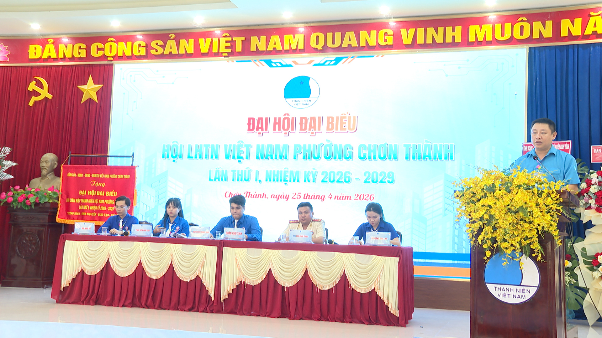 <figure class="image"><img style="aspect-ratio:1920/1080;" src="https://chonthanh.dongnai.gov.vn/uploads/chonthanh/news/2026_04/a_6.jpg" width="1920" height="1080" /></figure><figure class="image"><img style="aspect-ratio:1920/1080;" src="https://chonthanh.dongnai.gov.vn/uploads/chonthanh/news/2026_04/a1_7.jpg" width="1920" height="1080" /></figure><p style="text-align:center;"><i>Chương trình văn nghệ chào mừng</i></p><figure class="image"><img style="aspect-ratio:1920/1080;" src="https://chonthanh.dongnai.gov.vn/uploads/chonthanh/news/2026_04/a2_6.jpg" width="1920" height="1080" /></figure><p style="text-align:center;"><i>Các đại biểu tham dự đại hội</i></p><p style="text-align:justify;"><span style="font-family:&#039;Times New Roman&#039;,serif;font-size:14.0pt;"><span style="line-height:107%;">Trong giai đoạn 2024- 2025, Ủy ban Hội LHTN Việt Nam phường Chơn Thành đã thực hiện tốt chương trình công tác Hội và phong trào thanh niên phù hợp với tình hình thực tế của địa phương. Thực hiện các phong trào lớn, tiêu biểu là phong trào “Tôi yêu Tổ quốc tôi”. Tổ chức tốt các hoạt động như: ra quân hướng dẫn, phát tờ rơi, hướng dẫn cài đặt ứng dụng bảo hiểm xã hội, sổ sức khoẻ, thanh toán hoá đơn điện tử số trên thiết bị di động; cài đăng ký chữ ký số cá nhân; hỗ trợ người dân cấp căn cước công dân, cài đặt và sử dụng định danh điện tử VNeID, đăng ký chữ ký số tích hợp với sim chính chủ, triển khai 4 phủ...thu hút hơn 500 lượt đoàn viên thanh niên tham gia. Duy trì tổ công nghệ số cộng đồng tổ chức các hoạt động Chuyển đổi số cộng đồng”; triển khai thanh toán điện tử, chuyển giao công nghệ số... cho hơn 1.000 lượt người dân, hội viên thanh niên. Ra quân 12 “Ngày Chủ nhật xanh” thu hút hơn 500 lượt hội viên tham gia; dọn dẹp, phát quang hơn 10 km đường giao thông, tuyến đường tự quản, tại các trường học, cơ quan đơn vị; trồng mới và chăm sóc trên 2.000 cây xanh, hoa kiểng; ra quân thu gom, phân loại hơn 1 tấn rác thải nhựa; bóc xóa 4km đường quảng cáo, rao vặt trái phép... góp phần xây dựng cảnh quan đô thị văn minh...</span></span></p><figure class="image"><img style="aspect-ratio:1920/1080;" src="https://chonthanh.dongnai.gov.vn/uploads/chonthanh/news/2026_04/a4_7.jpg" width="1920" height="1080" /></figure><p style="text-align:center;"><span style="background-color:white;color:rgb(51,51,51);font-family:&#039;Times New Roman&#039;,serif;font-size:14.0pt;"><i><span style="line-height:107%;">Đồng chí Bùi Xuân Dũng, Phó chủ tịch Hội LHTN tỉnh, phát biểu chỉ đạo tại đại hội</span></i></span></p><figure class="image"><img style="aspect-ratio:1920/1080;" src="https://chonthanh.dongnai.gov.vn/uploads/chonthanh/news/2026_04/a5_6.jpg" width="1920" height="1080" /></figure><p style="text-align:center;"><span style="background-color:white;color:rgb(51,51,51);font-family:&#039;Times New Roman&#039;,serif;font-size:14.0pt;"><i><span style="line-height:107%;">Đồng chí Bùi Xuân Dũng, Phó chủ tịch Hội LHTN tỉnh</span></i><span style="line-height:107%;">, </span><i><span style="line-height:107%;">tặng hoa chúc mừng&nbsp;</span></i></span><span style="color:black;font-family:&#039;Times New Roman&#039;,serif;font-size:14.0pt;"><i><span style="letter-spacing:-.3pt;line-height:107%;" lang="PT-BR">Hội LHTN Việt Nam phường Chơn Thành</span></i></span></p><figure class="image"><img style="aspect-ratio:1920/1080;" src="https://chonthanh.dongnai.gov.vn/uploads/chonthanh/news/2026_04/a6_5.jpg" width="1920" height="1080" /></figure><p style="text-align:center;"><span style="background-color:white;color:rgb(51,51,51);font-family:&#039;Times New Roman&#039;,serif;font-size:14.0pt;"><i><span style="line-height:107%;">Đồng chí Nguyễn Lâm Hoàng Dung, Ủy viên Ban Thường vụ Đảng ủy, Phó chủ tịch UBND phường Chơn Thành, phát biểu chỉ đạo tại đại hội</span></i></span></p><figure class="image"><img style="aspect-ratio:1920/1080;" src="https://chonthanh.dongnai.gov.vn/uploads/chonthanh/news/2026_04/a7_3.jpg" width="1920" height="1080" /></figure><p style="text-align:center;"><span style="background-color:white;color:rgb(51,51,51);font-family:&#039;Times New Roman&#039;,serif;font-size:14.0pt;"><i><span style="line-height:107%;">Lãnh đạo Đảng ủy-HĐND-UBND-UBMTTQ Việt Nam phường Chơn Thành, tặng bức trướng chúc mừng Đại Hội Đại Biểu Hội LHTN Việt Nam phường lần thứ I, nhiệm kỳ 2026 - 2029&nbsp;</span></i></span></p><figure class="image"><img style="aspect-ratio:1920/1080;" src="https://chonthanh.dongnai.gov.vn/uploads/chonthanh/news/2026_04/a8_4.jpg" width="1920" height="1080" /></figure><p style="text-align:center;"><span style="background-color:white;color:rgb(51,51,51);font-family:&#039;Times New Roman&#039;,serif;font-size:14.0pt;"><i><span style="line-height:107%;">Lãnh đạo Đảng ủy-HĐND-UBND-UBMTTQ Việt Nam phường Chơn Thành, tặng hoa chúc mừng Đại Hội Đại Biểu Hội LHTN Việt Nam phường lần thứ I, nhiệm kỳ 2026 - 2029&nbsp;</span></i></span></p><p style="text-align:justify;"><span style="font-family:&#039;Times New Roman&#039;,serif;font-size:14.0pt;"><span style="line-height:107%;">Với khẩu hiệu hành động thanh niên phường Chơn Thành “Xung kích - Tình nguyện - Sáng tạo - Phát triển”, trong nhiệm kỳ 2026-2029, Hội LHTN Việt Nam phường Chơn Thành đã đề ra mục tiêu: xây dựng, bồi dưỡng thế hệ thanh niên Chơn Thành có lý tưởng cách mạng, giàu lòng yêu nước,