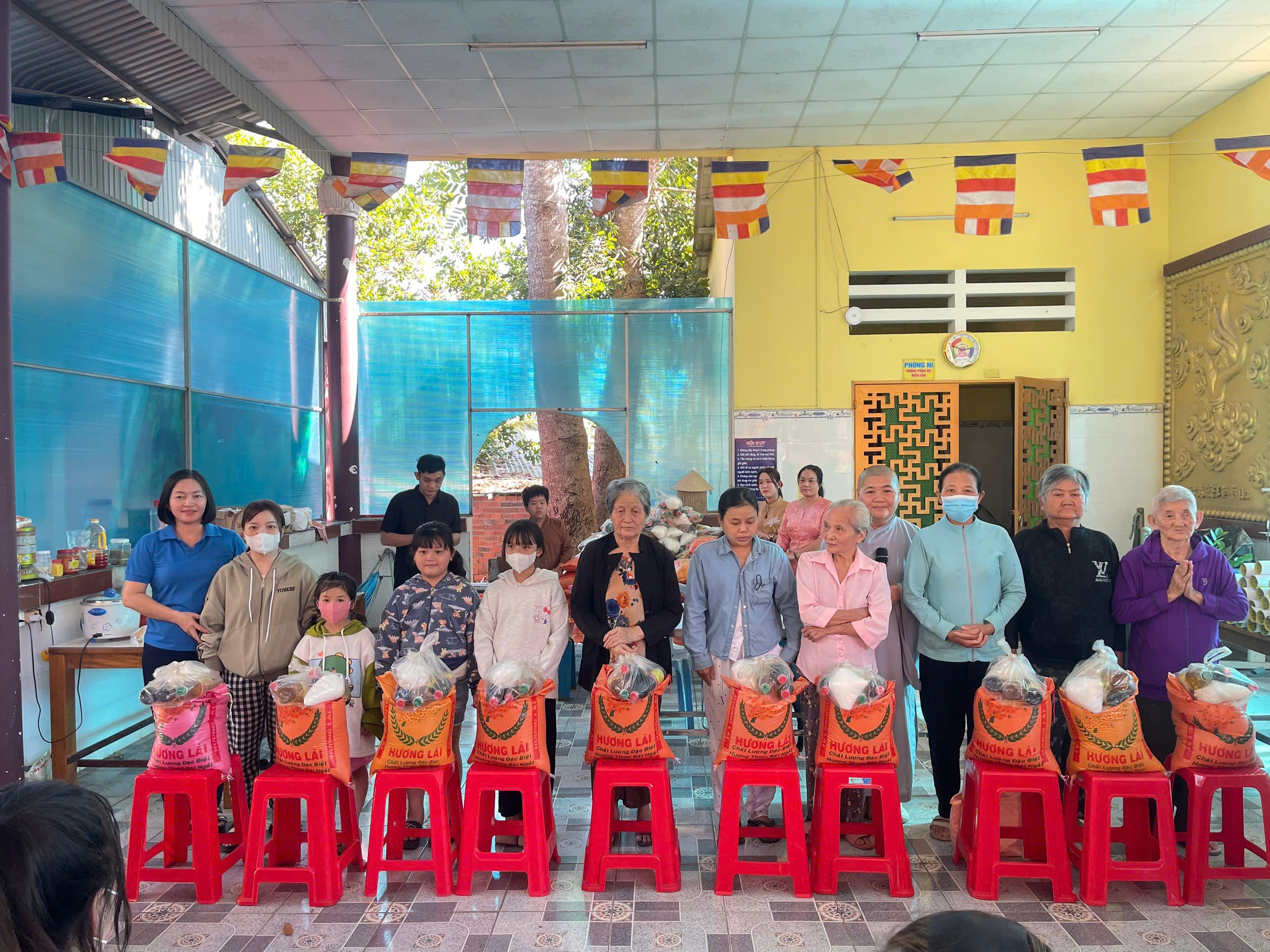 Sư Cô Thích Nữ Diệu Quán – Trụ trì chù Đức Tạng trao quà cho người dân khó khăn tại chùa Đức Tạng