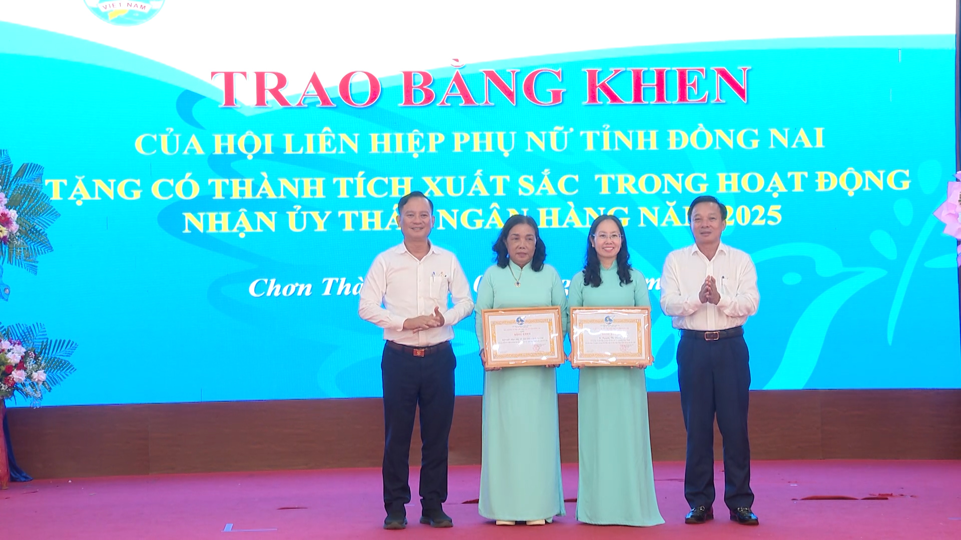 Lãnh đạo phường Chơn Thành, trao tặng bằng khen của Hội LHPN tỉnh Đồng Nai cho Hội LHPN phường Chơn Thành và 01 cá nhân có thành tích xuất sắc trong hoạt động ủy thác ngân hàng năm 2025