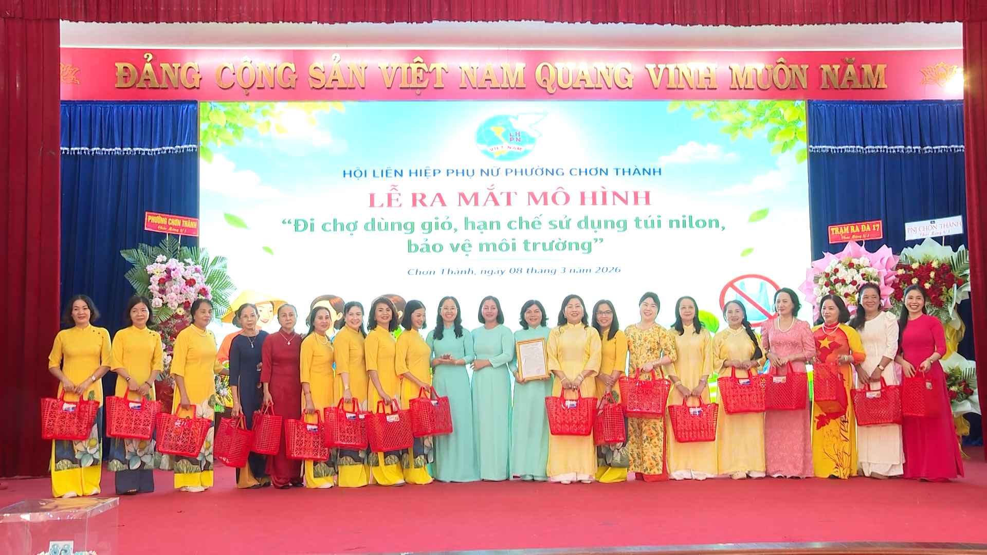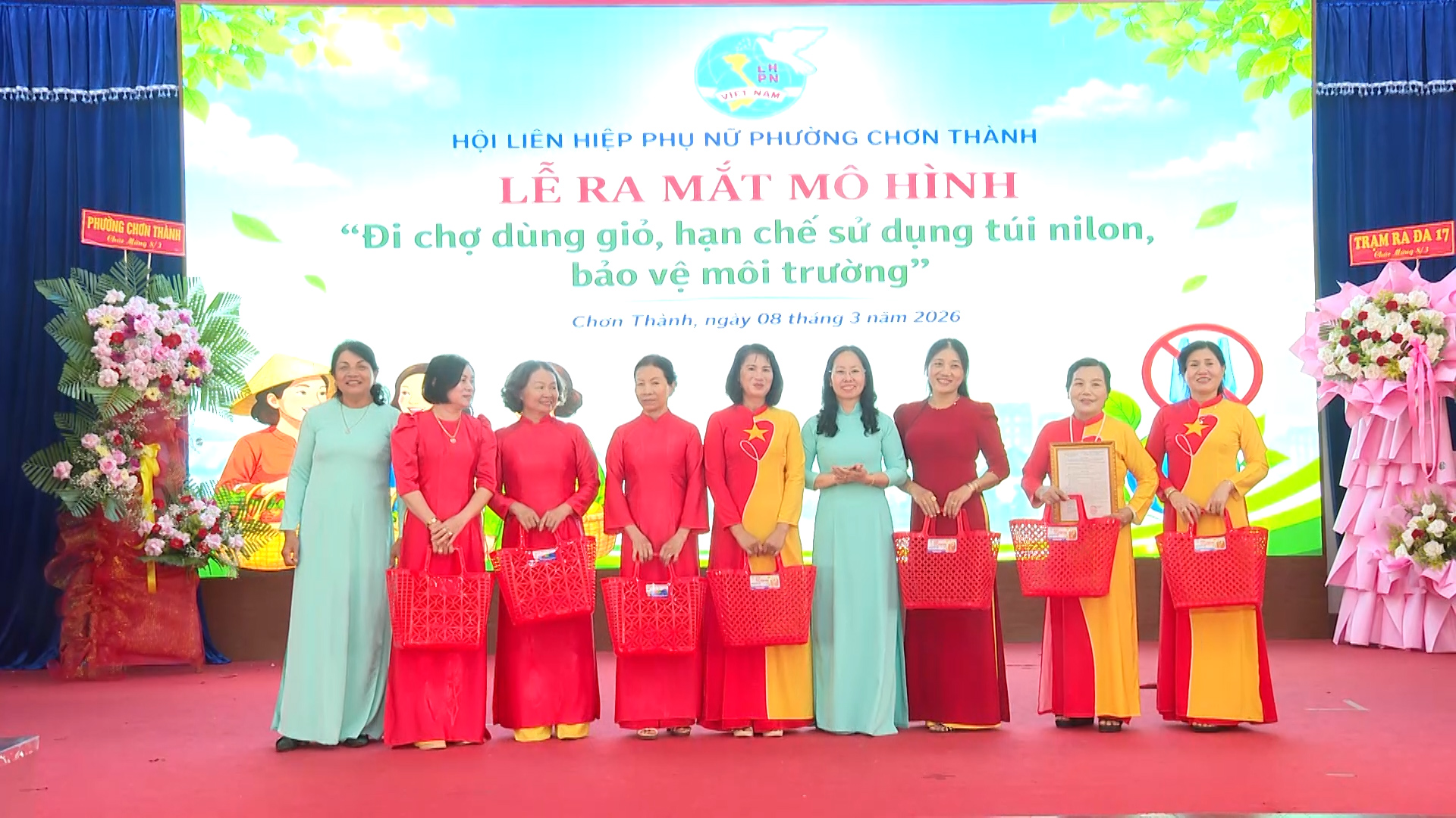 Dịp này Hội LHPN phường Chơn Thành đã ra mắt 02 mô hình “Đi chợ dùng giỏ, hạn chế sử dụng túi nilon, bảo vệ môi trường”, nhằm nâng cao nhận thức, trách nhiệm của cán bộ, hội viên phụ nữ và Nhân dân về tác hại của túi nilon đối với môi trường. Tuyên truyền, hình thành thói quen sử dụng giỏ, làn, túi vải tái sử dụng khi đi chợ (hoặc mua, đựng đồ ăn, vật dụng…).