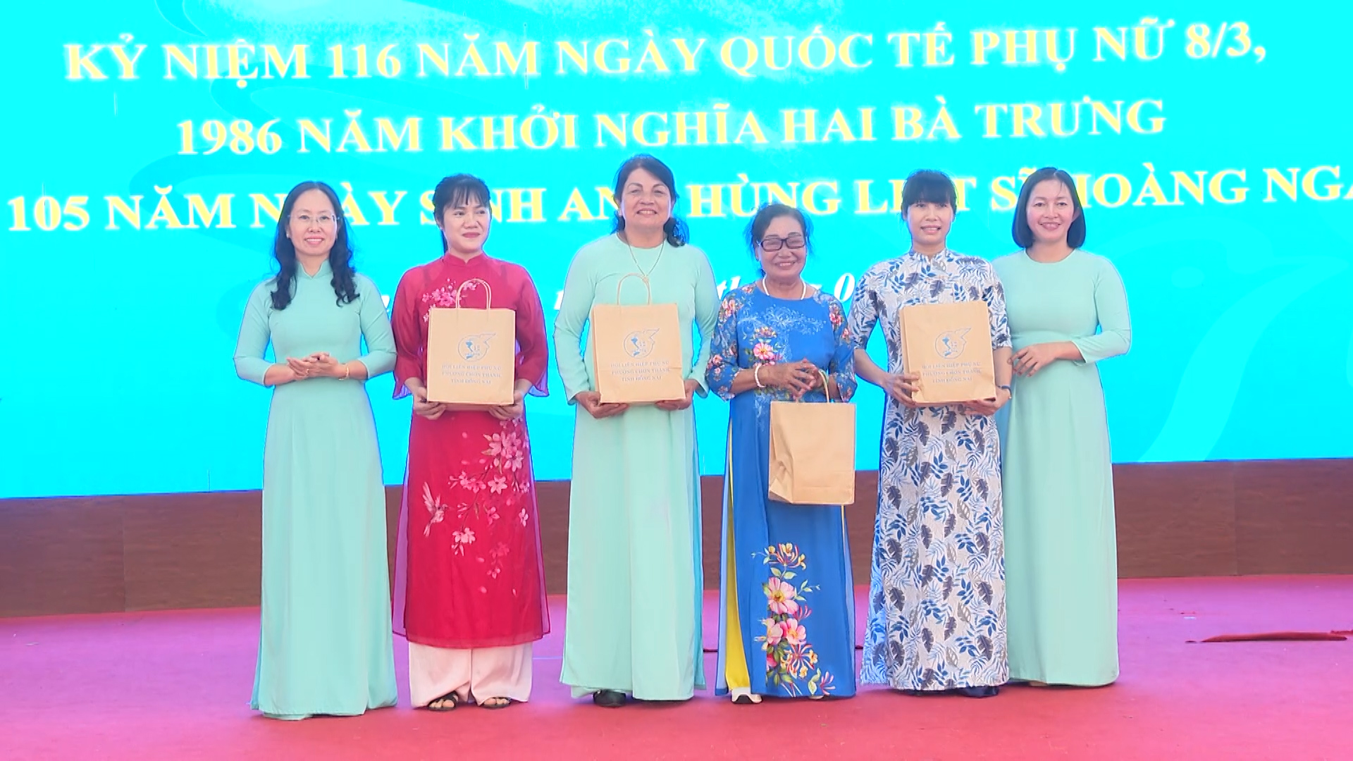 Trao tặng quà cho các đồng chí lãnh đạo nữ