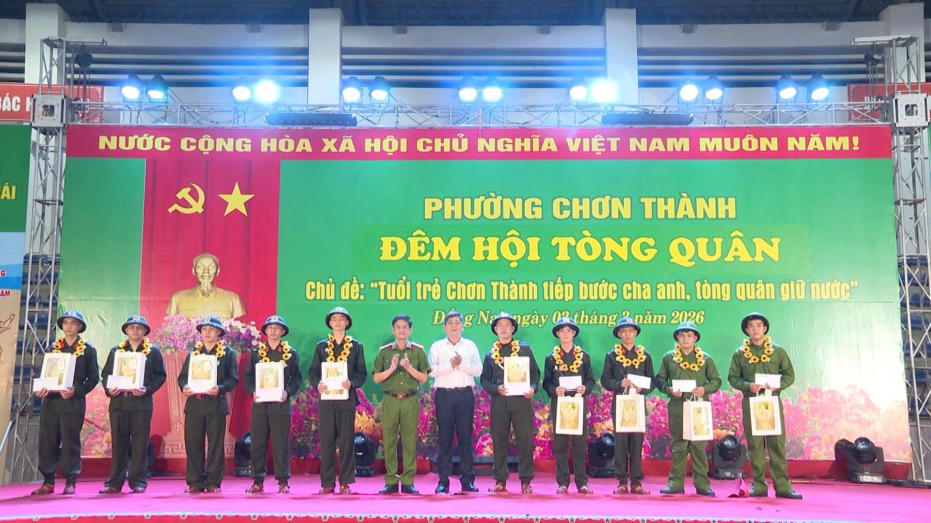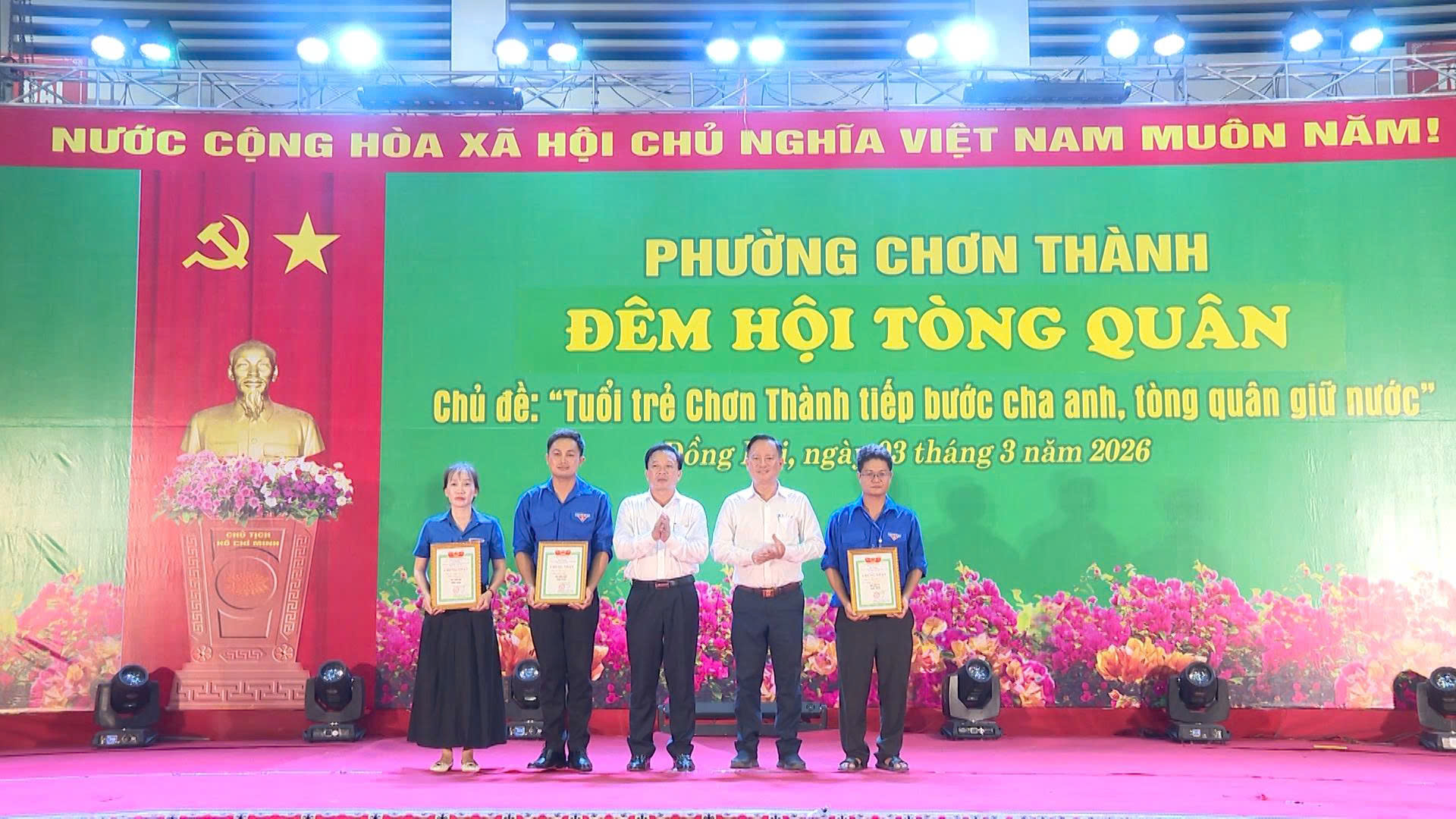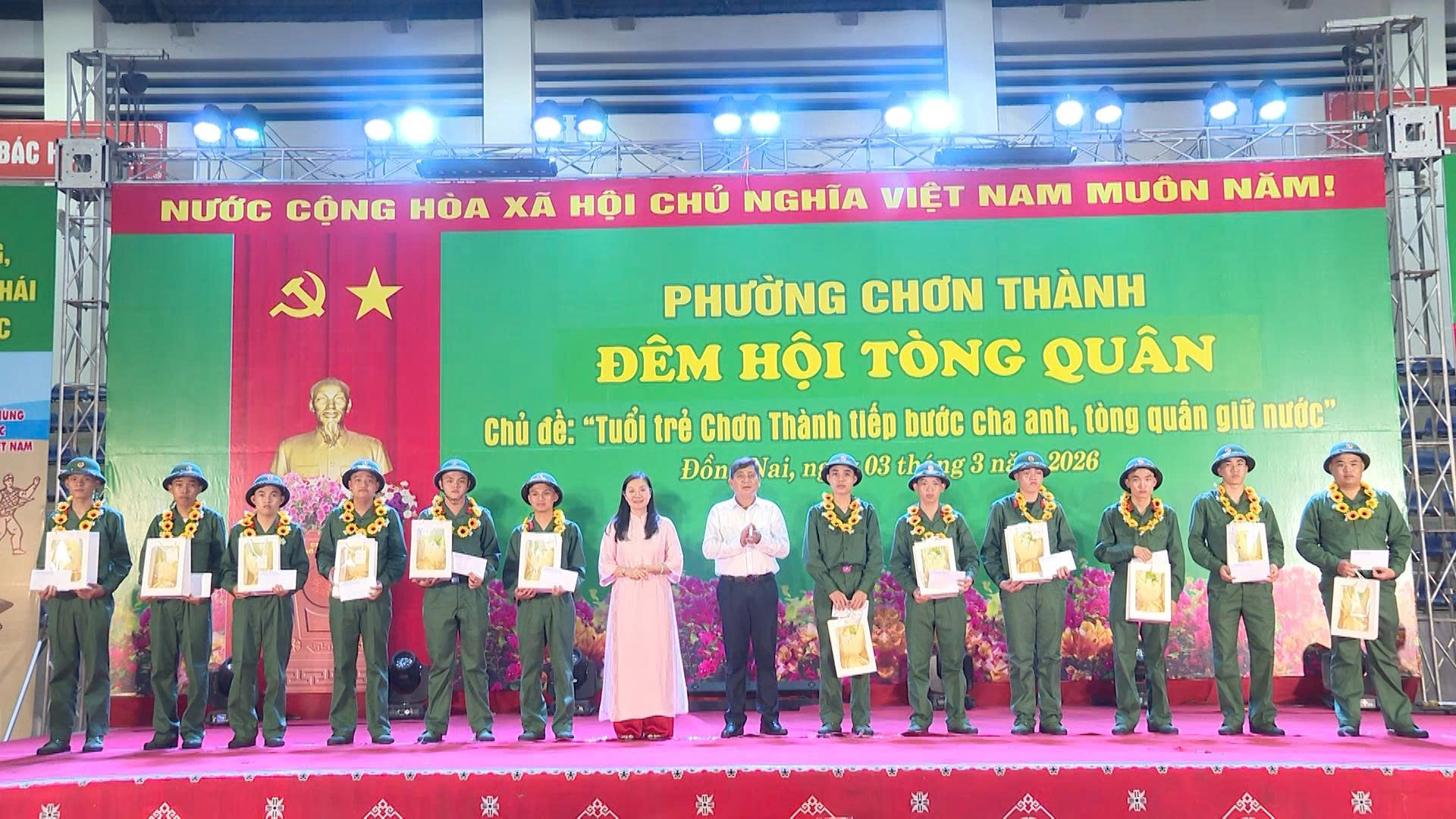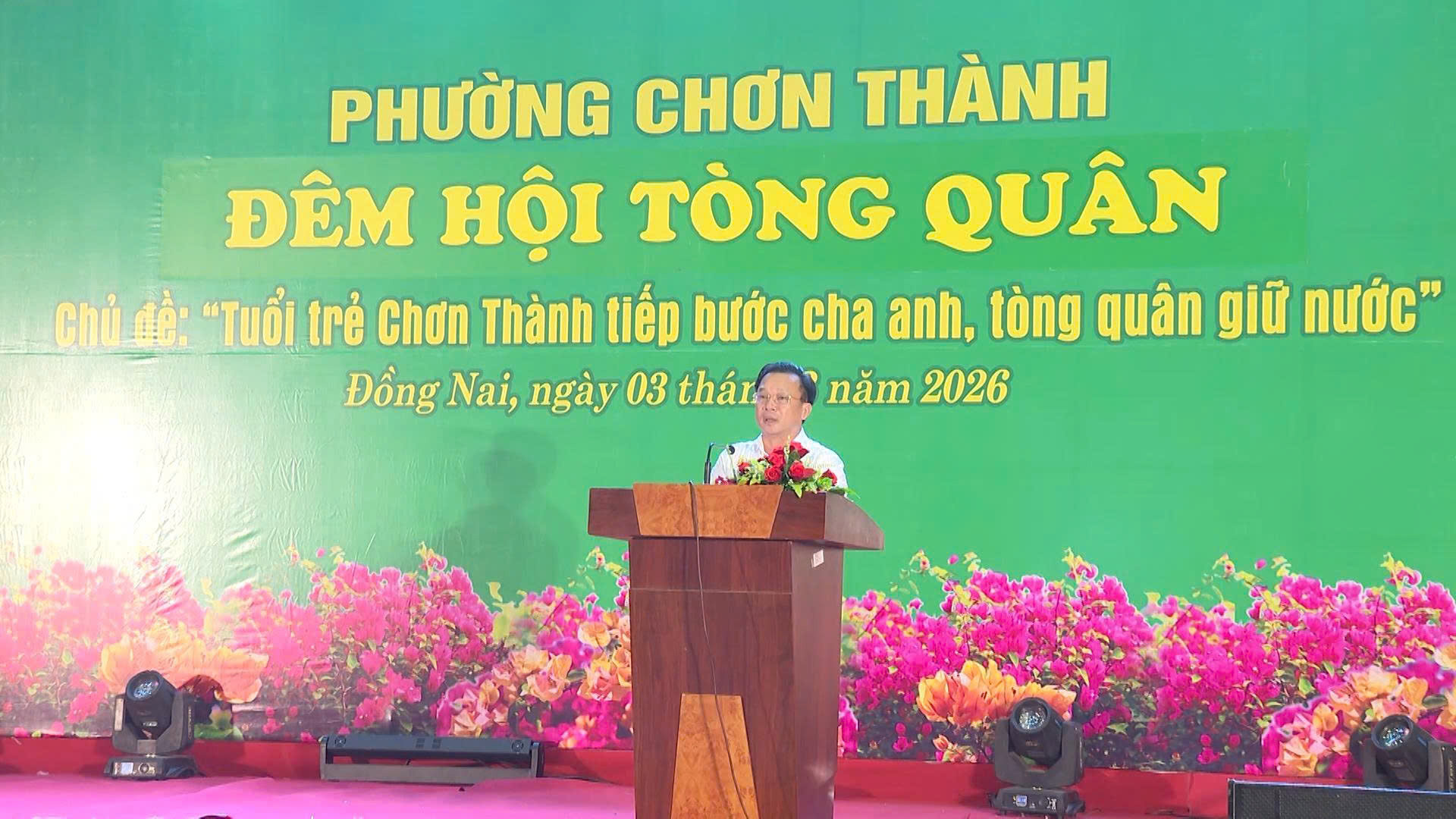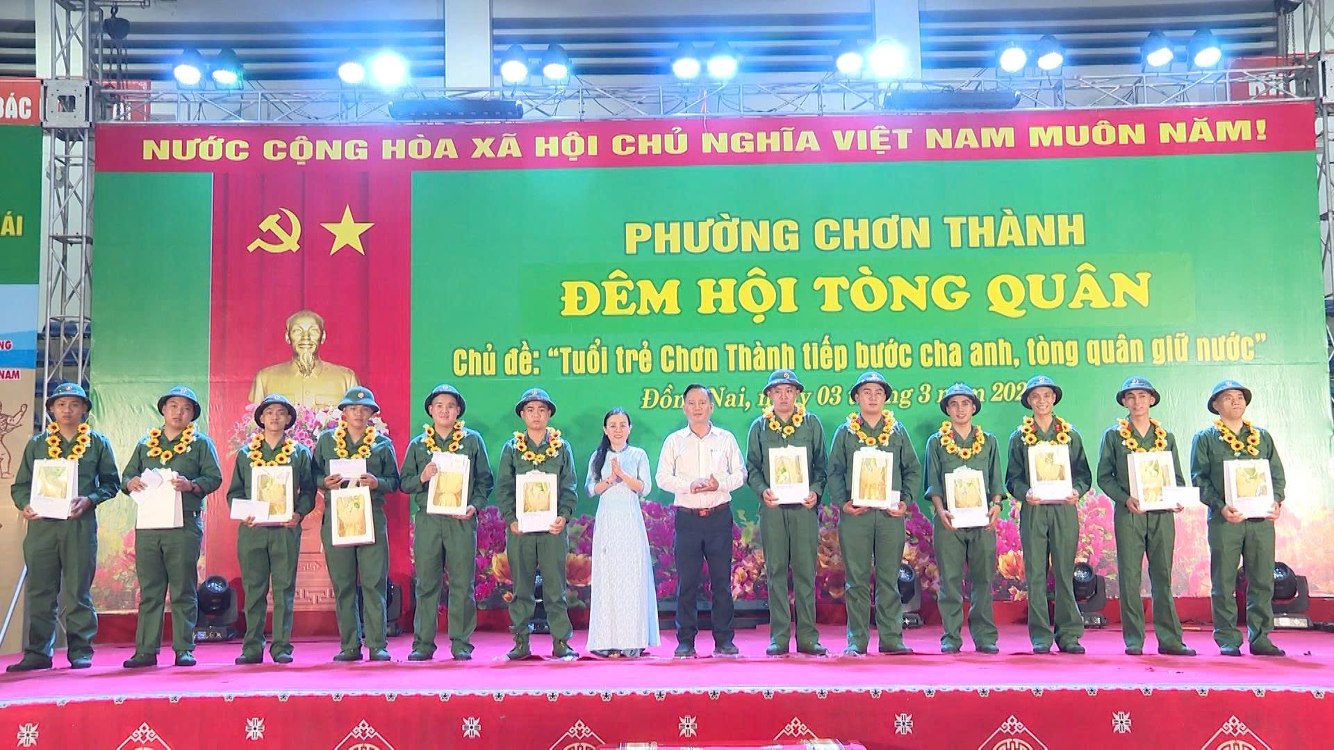 Phát biểu tại đêm hội, đồng chí Nguyễn Anh Tài, Phó Bí thư Đảng ủy, Chủ tịch UBND phường Chơn Thành, mong rằng mỗi tân binh hãy mang theo niềm tự hào của quê hương Chơn Thành anh hùng; hãy xem môi trường trong Quân đội; Công an nhân dân là trường học lớn của tuổi trẻ; hãy biến thử thách thành cơ hội rèn luyện bản lĩnh ý chí và tinh thần kỷ luật; dù ở bất cứ đơn vị nào hãy luôn giữ vững phẩm chất người chiến sĩ, sống có trách nhiệm, có lý tưởng, đoàn kết, giúp đỡ đồng đội và quyết tâm hoàn thành tốt mọi nhiệm vụ được giao. Tin tưởng rằng trong thời gian rèn luyện trong môi trường quân ngũ các đồng chí sẽ trưởng thành hơn, bản lĩnh hơn và trở thành những công dân ưu tú, tiếp tục đóng góp xây dựng quê hương Chơn Thành ngày càng phát triển…