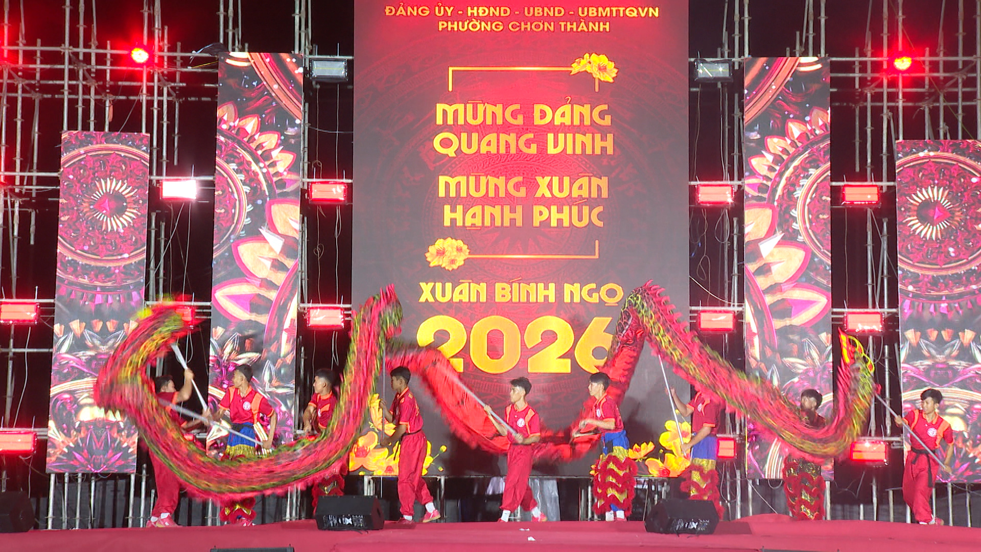 Cán bộ, công chức và toàn thể nhân dân đã xem phóng sự giới thiệu về sự phát triển kinh tế, xã hội, quốc phòng an ninh của phường Chơn Thành. Đồng thời, trước thời khắc giao thừa chào đón năm mới, đồng chí Nguyễn Anh Tài, Phó Bí thư Đảng ủy, Chủ tịch UBND phường Chơn Thành đã phát biểu chúc Tết toàn thể cán bộ, công chức và nhân dân trên địa bàn phường. Đúng 00 giờ 00', ngày 17/2/2026, pháo hoa được bắn lên bầu trời khu vực Khu dân cư đô thị, Thương mại và Dịch vụ Suối Đôi, phường Chơn Thành, với thời gian 15 phút, rực rỡ sắc màu, đánh dấu thời khắc chuyển giao giữa năm cũ và năm mới Bính Ngọ 2026.