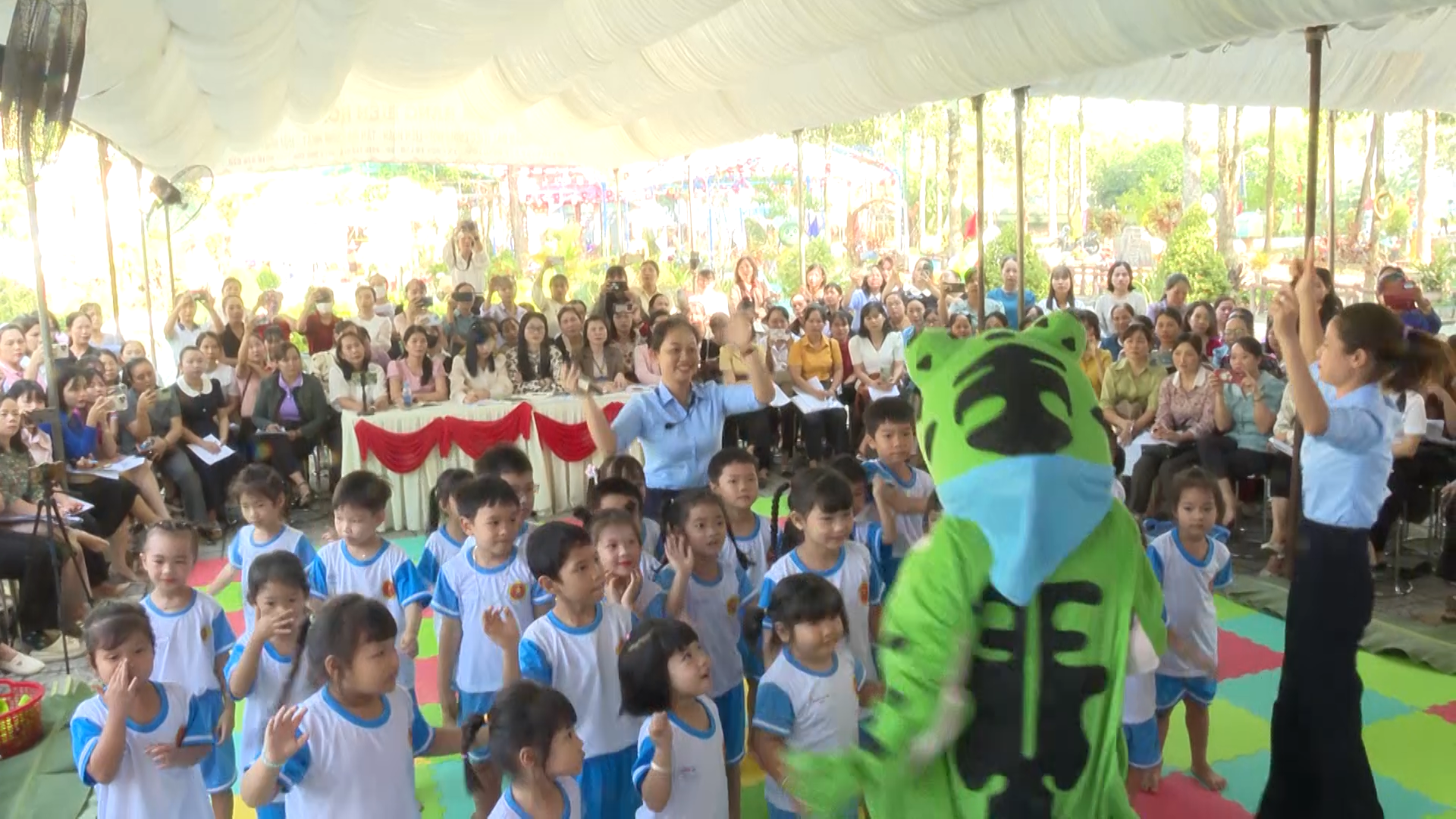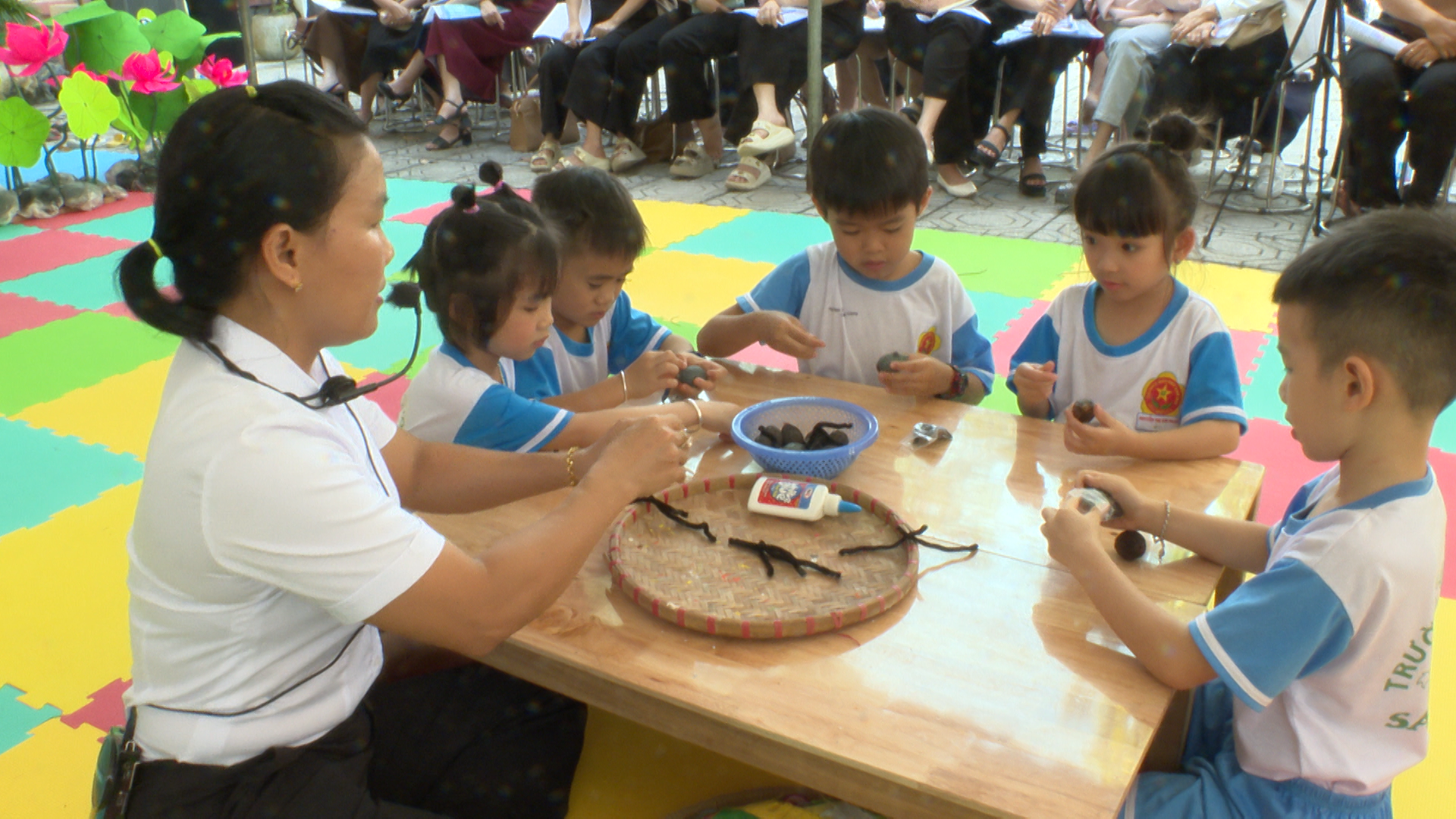 Các cô giáo mầm non theo dõi buổi sinh hoạt
