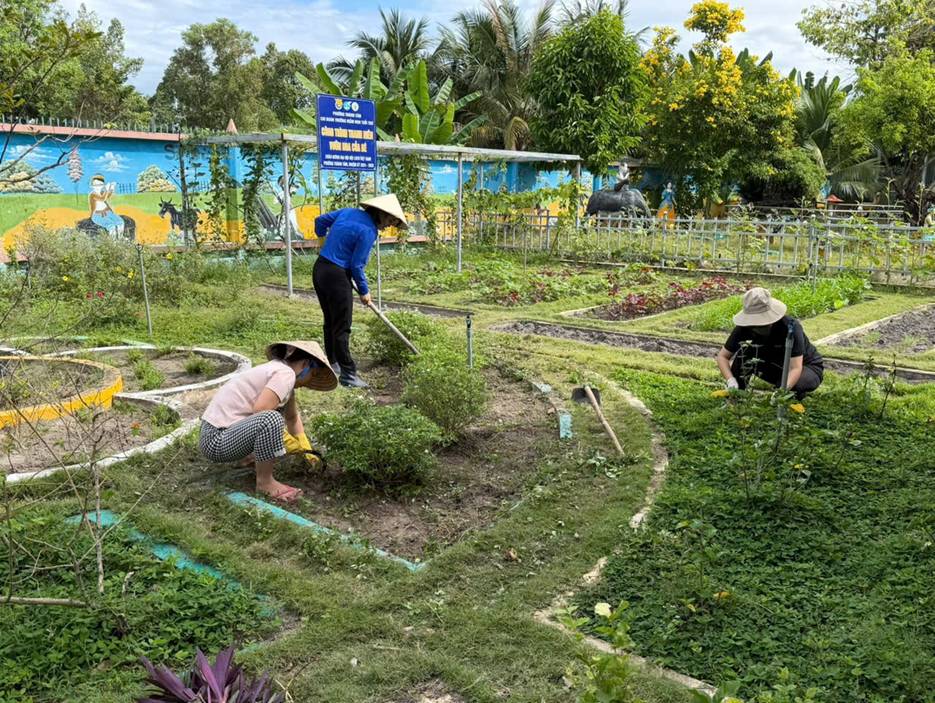 Đoàn viên Chi đoàn trường Mầm non Tuổi Thơ ra quân Chủ nhật xanh