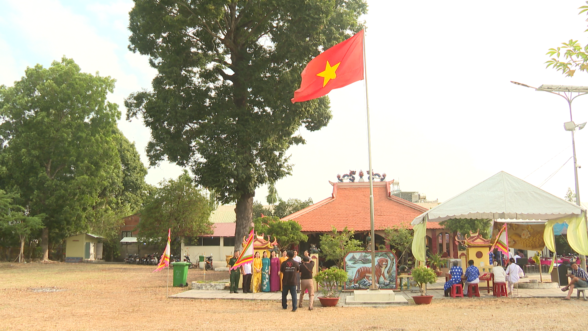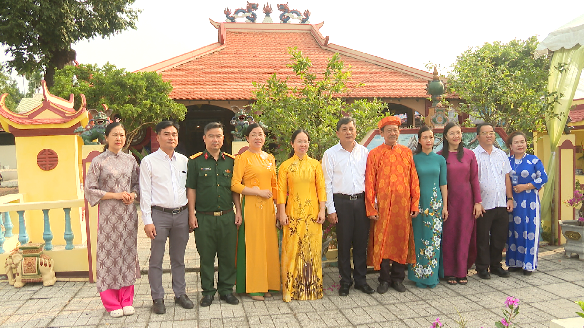 Lãnh đạo phường Chơn Thành chụp hình lưu niệm với Ban quản lý Đình thần Hưng Long, phường Chơn Thành