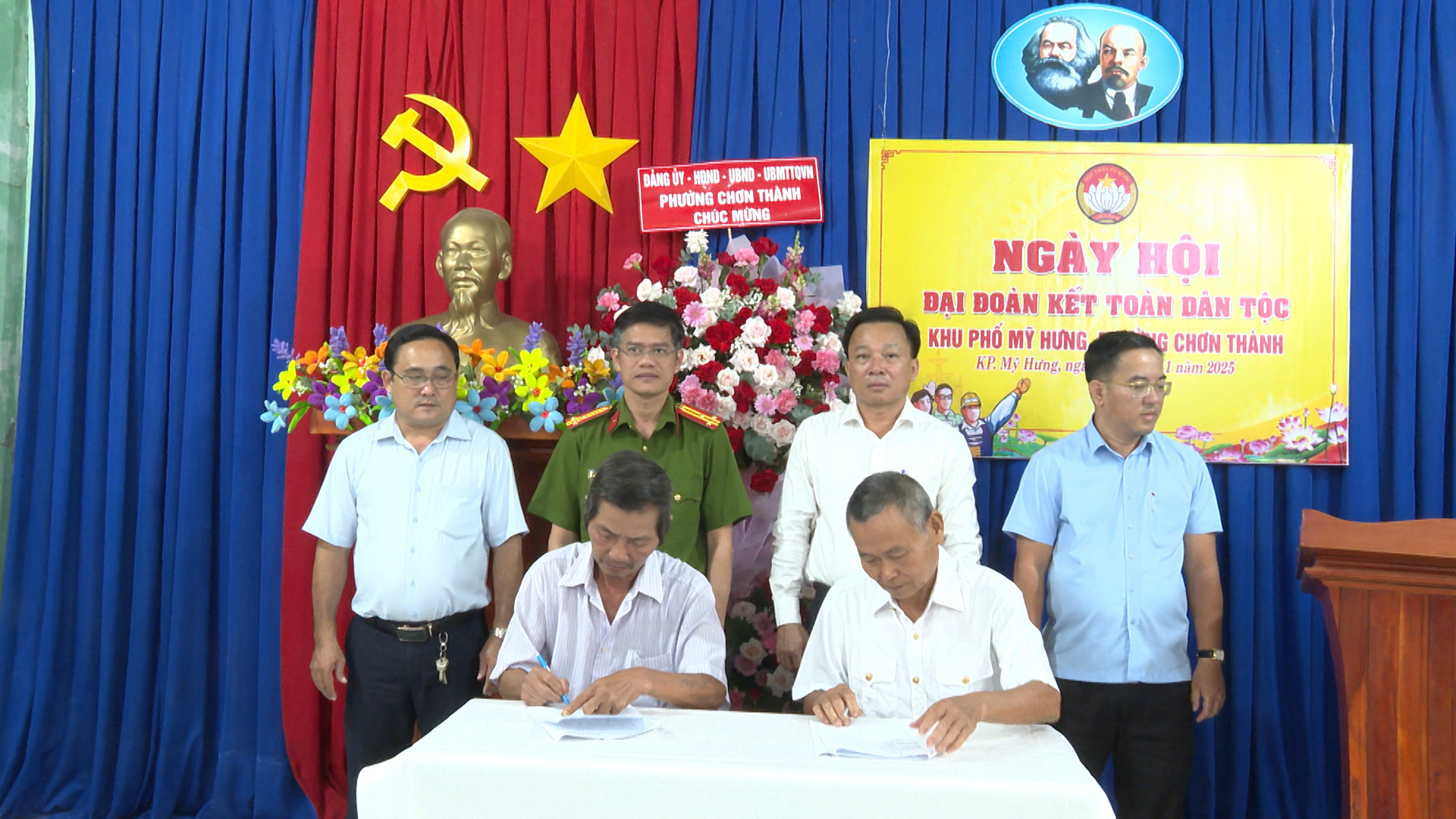 Tại ngày hội, các đại biểu đã được ôn lại lịch sử kỷ niệm 95 năm Ngày truyền thống Mặt trận Tổ quốc Việt Nam (18/11/1930 - 18/11/2025). Khu phố Mỹ Hưng, phường Chơn Thành, có diện tích 415 ha, với 260 hộ, 966 nhân khẩu thường trú và 30 hộ, 70 nhân khẩu tạm trú, được chia thành 6 tổ tự quản. Đa số người dân sống bằng nghề sản xuất nông nghiệp chủ yếu chuyên canh cây cao su lấy mũ, một số hộ dân dọc theo QL 13 đã chuyển đổi nghề nghiệp sang thương mại, dịch vụ phát triển kinh tế gia đình. Trong năm 2025, cán bộ, đảng viên và quần chúng nhân dân nên khu phố Mỹ Hưng đã hoàn thành tốt nhiệm vụ được giao và các chỉ tiêu phát triển kinh tế, xã hội, quốc phòng-an ninh luôn giữ vững. Đời sống Nhân dân được cải thiện.