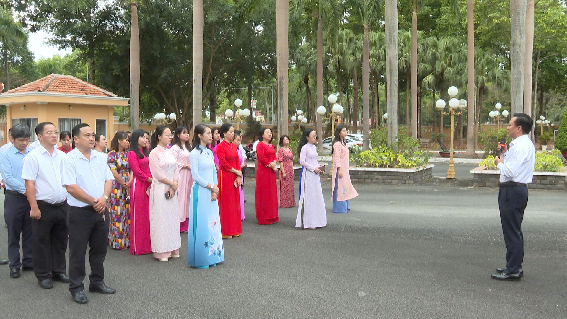 Các đồng chí Thường trực HĐND, Lãnh đạo UBND phường, lãnh đạo và công chức, viên chức, người lao động của các Phòng, Trung tâm trực thuộc UBND phường Chơn Thành, thực hiện nghi thức lễ chào cờ đầu năm 2026