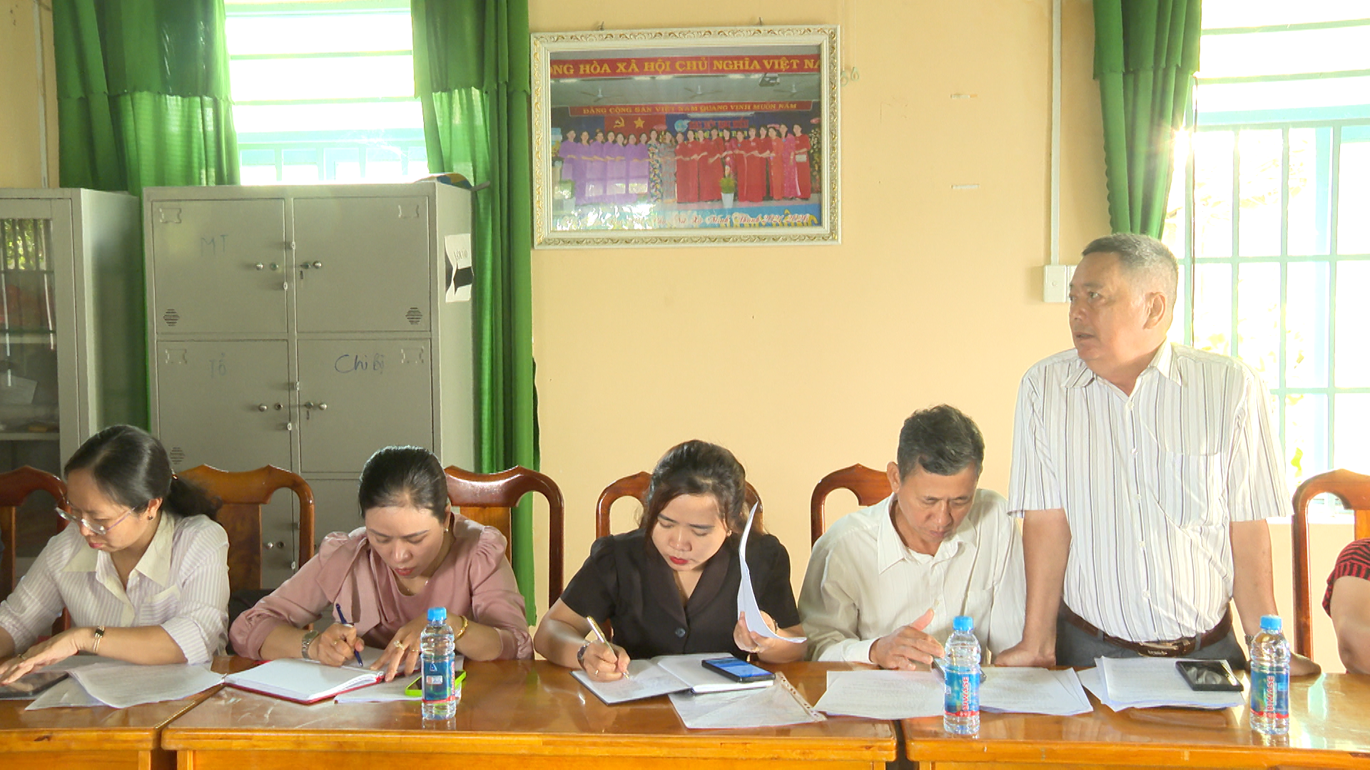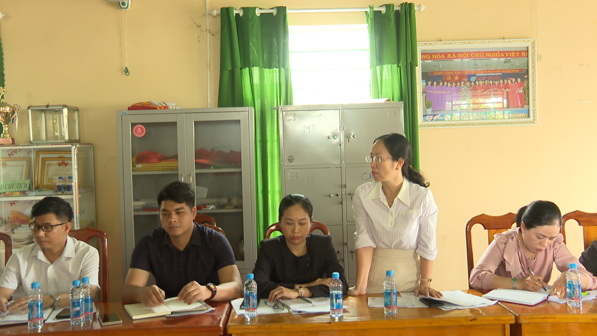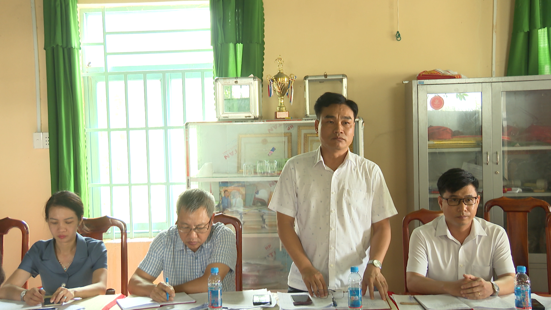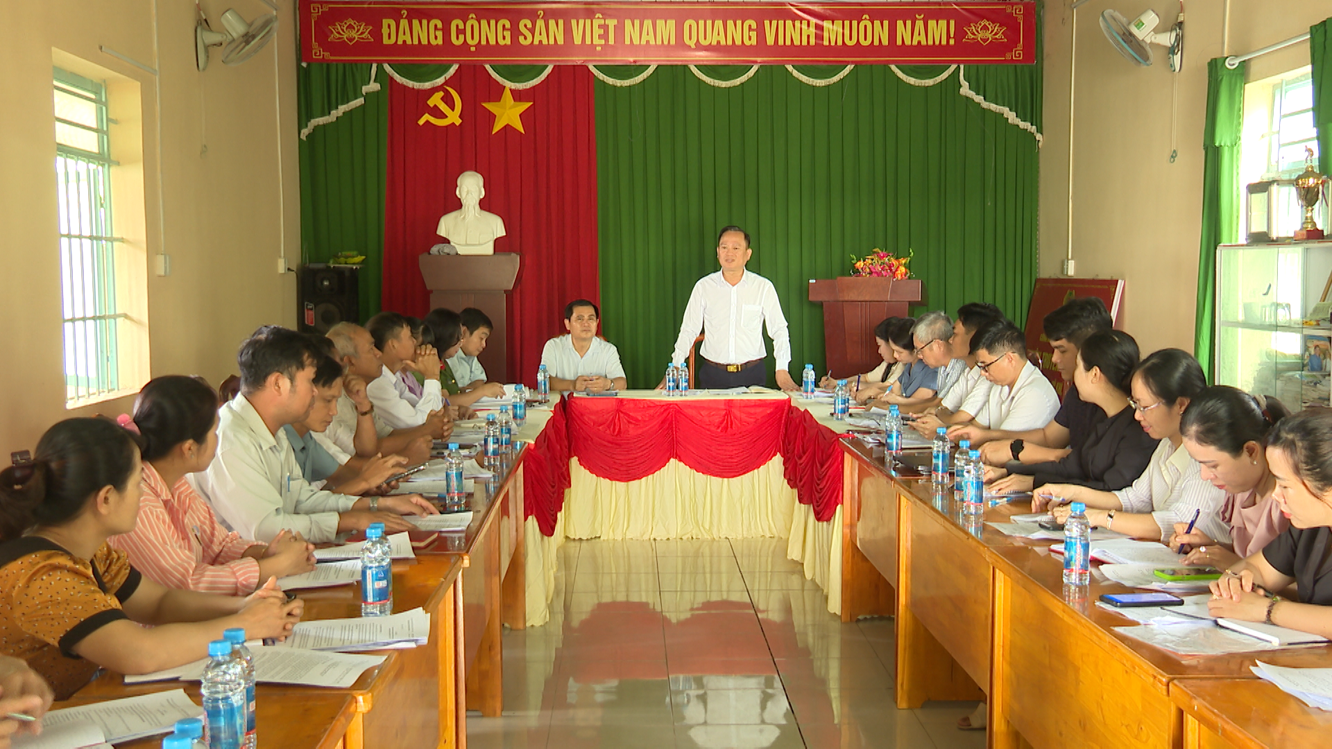 Lãnh đạo các khu phố (Minh Thành: 1, 2, 3, 4, 5) báo cáo tại buổi làm việc