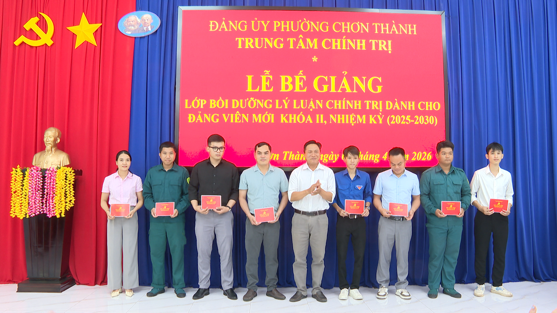 Tham gia lớp học có 21 học viên là những đảng viên dự bị thuộc Đảng ủy phường Chơn Thành, phường Minh Hưng, xã Nha Bích và một số đơn vị khác. Trong thời gian (từ ngày 30/3/2026 đến ngày 07/4/2026 ), các học viên đã được tiếp thu, học tập 10 chuyên đề do Ban Tuyên giáo Trung ương biên soạn gồm: Chủ nghĩa Mác - Lênin, tư tưởng Hồ Chí Minh - nền tảng tư tưởng, kim chỉ nam cho hành động cách mạng của Đảng và cách mạng Việt Nam. Độc lập dân tộc gắn liền với chủ nghĩa xã hội và con đường đi lên chủ nghĩa xã hội ở Việt Nam. Phát huy sức mạnh đại đoàn kết toàn dân tộc; dân chủ xã hội chủ nghĩa; xây dựng và hoàn thiện nhà nước pháp quyền XHCN. Đường lối phát triển kinh tế - xã hội của Đảng. Phát triển giáo dục và đào tạo; khoa học và công nghệ; xây dựng và phát triển văn hóa, con người Việt Nam; bảo vệ môi trường và quản lý phát triển xã hội.Tăng cường quốc phòng, an ninh, bảo vệ vững chắc Tổ quốc, giữ vững môi trường hòa bình, đảm bảo ổn định chính trị, trật tự, an toàn xã hội. Chủ động và tích cực hội nhập quốc tế. Nguyên tắc tổ chức, hoạt động của Đảng và công tác xây dựng Đảng ở cơ sở. Tăng cường xây dựng, chỉnh đốn Đảng. Phấn đấu, rèn luyện để xứng đáng là đảng viên Đảng Cộng sản Việt Nam.