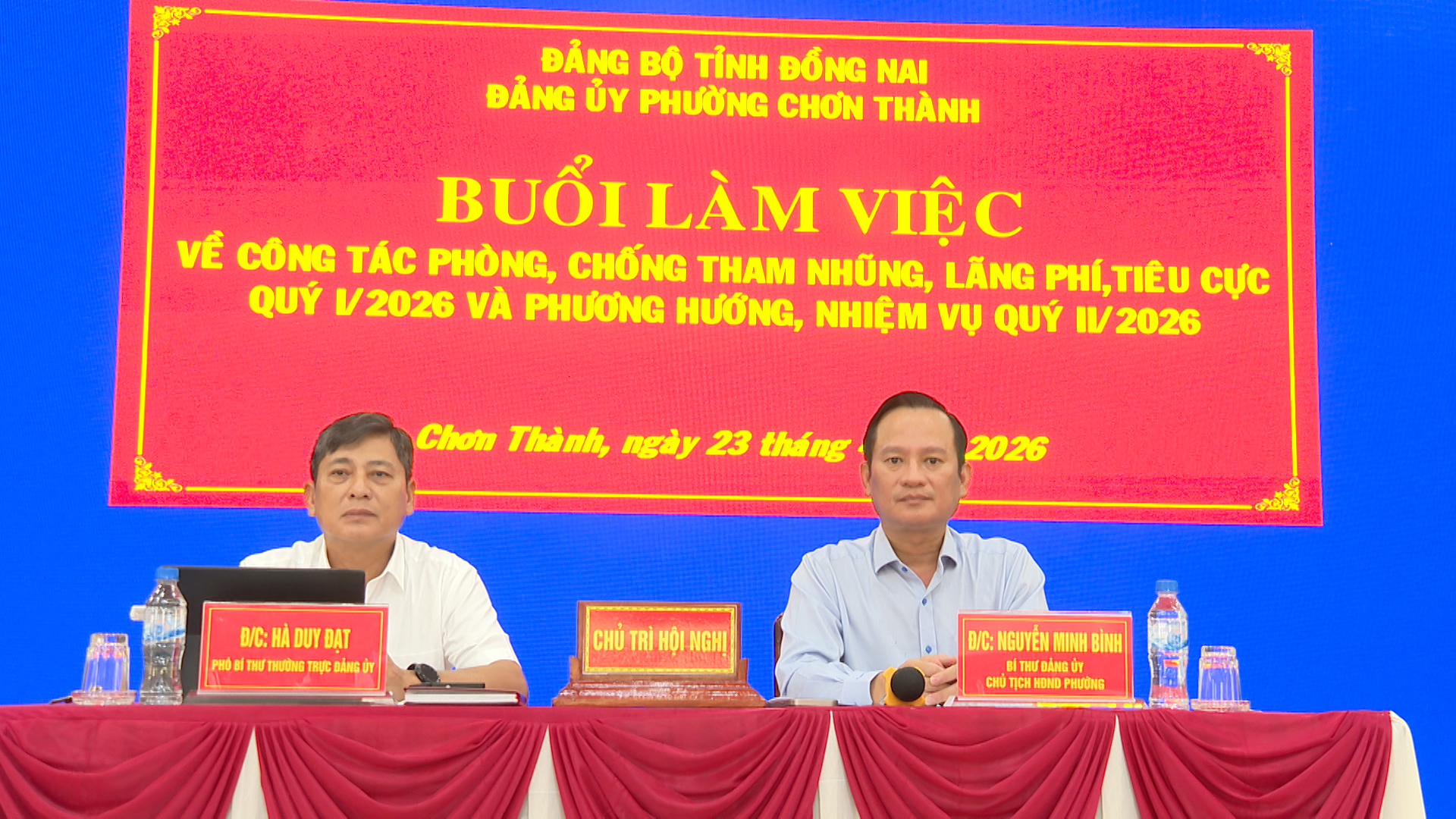 Trong quý I/2026 Đảng ủy phường Chơn Thành đã chú trọng lãnh đạo, chỉ đạo thực hiện tốt công tác tiếp công dân, xử lý đơn, thư, giải quyết khiếu nại tố cáo, phòng chống tham nhũng, tiêu cực. Thực hiện đồng bộ giải pháp phòng ngừa tham nhũng, nâng cao hiệu lực quản lý nhà nước, đẩy mạnh cải cách hành chính, công khai minh bạch tài chính, ngân sách, mua sắm tài sản công, đầu tư xây dựng đất đại. Nâng cao chất lượng kiểm tra, giám sát các lĩnh vực nhạy cảm, phát hiện xử lý nghiêm sai phạm. Qua đó nâng cao ý thức trách nhiệm cán bộ, công chức, phát huy vai trò người đứng đầu. Tiếp tục thực hiện công tác giáo dục liêm chính, giám sát chặt chẽ các hoạt động có thể dẫn đến hành vi tham nhũng…