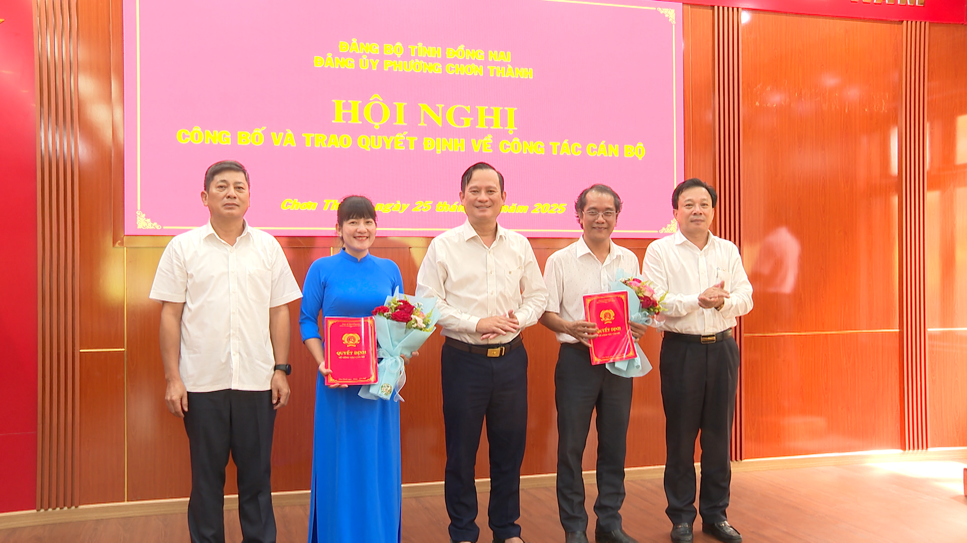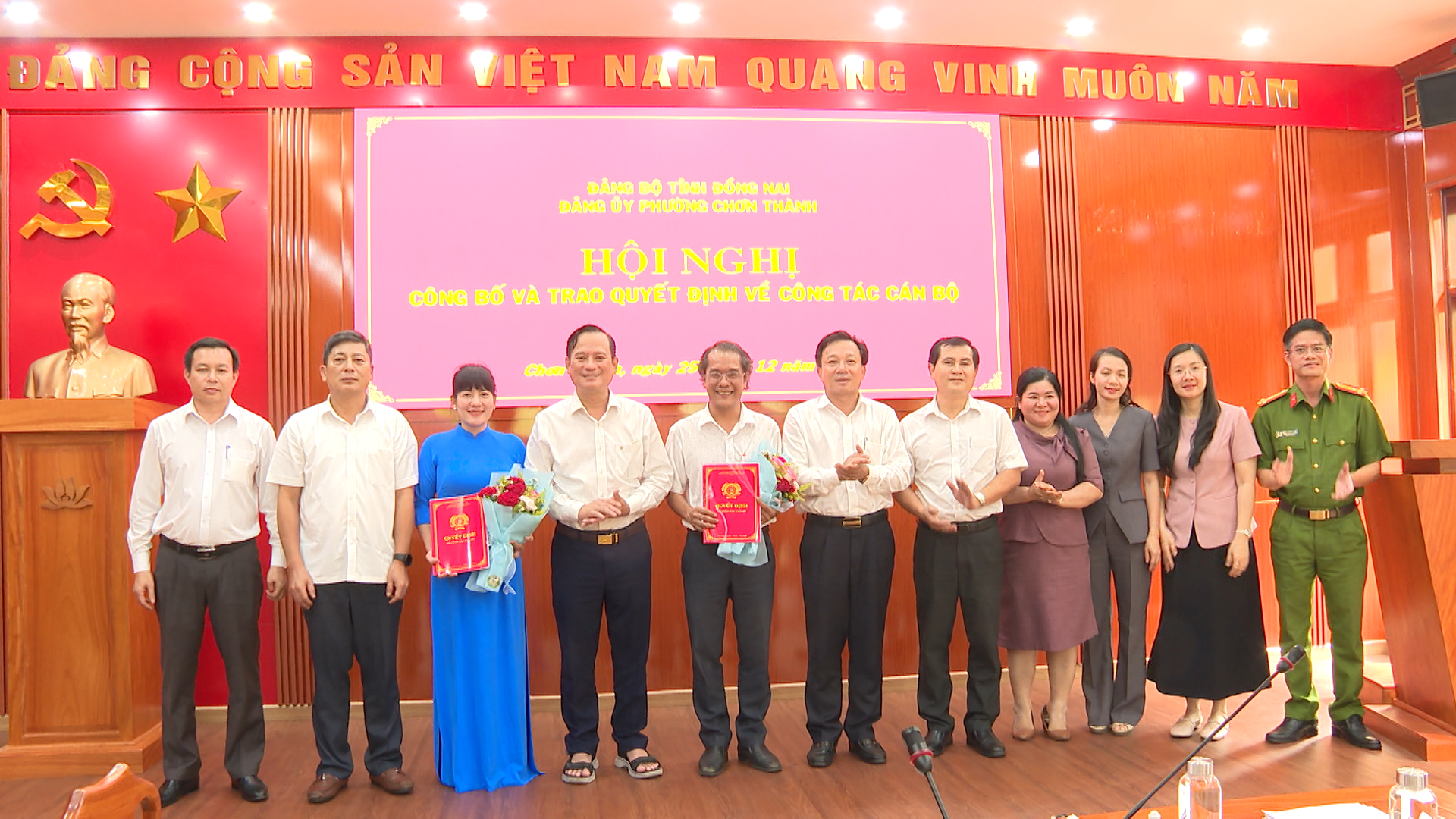 Tại hội nghị các đại biểu đã được nghe công bố Quyết định của Ban Thường vụ Tỉnh ủy Đồng Nai, chỉ định bổ sung Ban Chấp hành Đảng bộ phường Chơn Thành nhiệm kỳ 2025-2030 đối với 2 đồng chí: đồng chí Nguyễn Văn Nghiêm, Bí thư Đảng ủy, Hiệu trưởng Trường THPT Chu Văn An A và đồng chí Vũ Thị Thùy Trang, Bí thư Chi bộ khu phố Minh Thành 4.