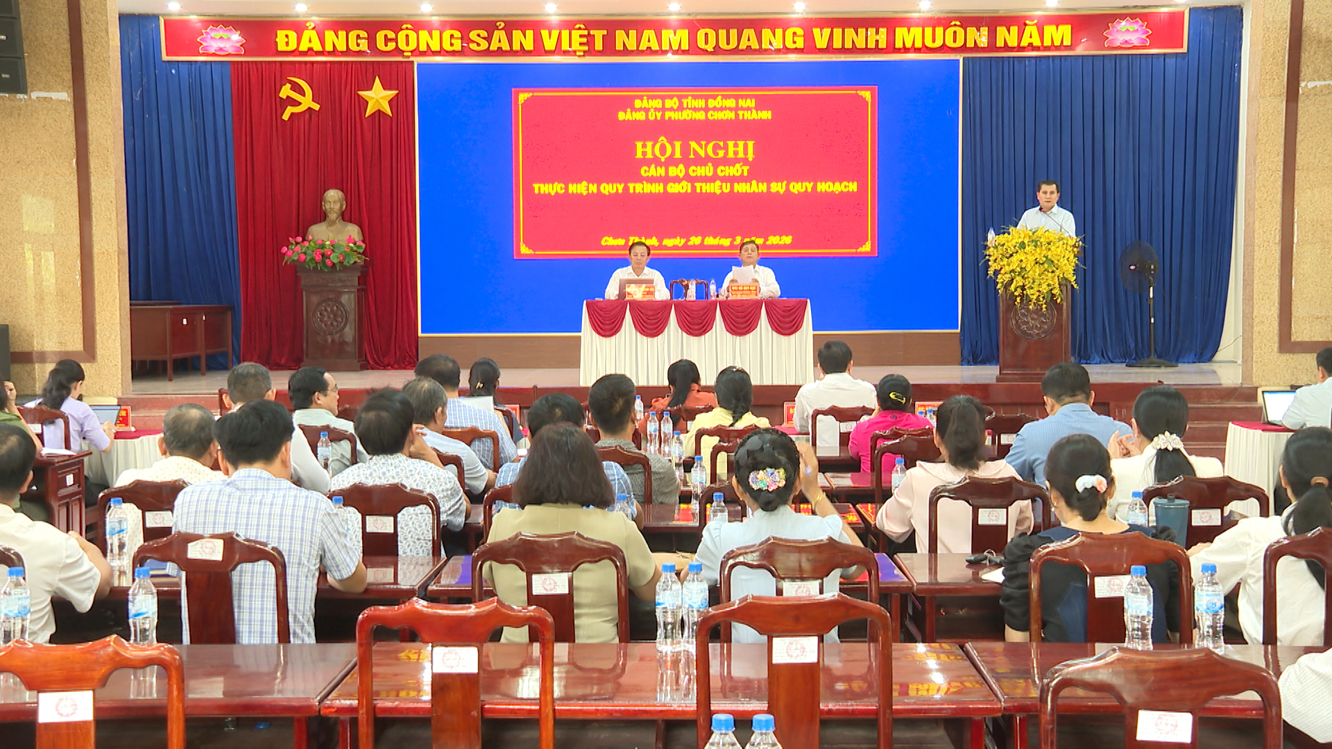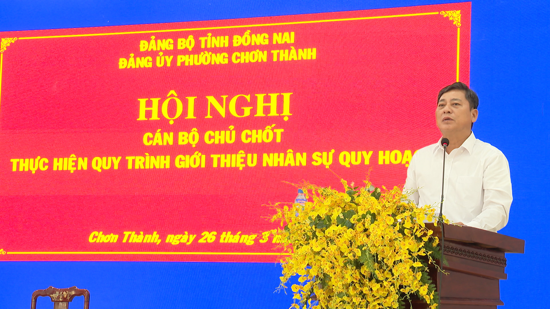 Phát biểu quán triệt tại hội nghị, đồng chí Hà Duy Đạt, Phó Bí thư Thường trực Đảng ủy, Chủ tịch HĐND phường Chơn Thành nhấn mạnh mục đích, yêu cầu của công tác quy hoạch cán bộ là nhằm xây dựng đội ngũ cán bộ có bản lĩnh chính trị vững vàng, phẩm chất đạo đức tốt, năng lực và uy tín đáp ứng yêu cầu nhiệm vụ trong tình hình mới, bảo đảm tính kế thừa, phát triển liên tục giữa các nhiệm kỳ... Các nhân sự được giới thiệu bầu giữ các chức danh lãnh đạo chủ chốt HĐND, UBND phường nhiệm kỳ 2026-2031 đều đảm bảo đủ điều kiện tiêu chuẩn, đã thực hiện giới thiệu nhân sự theo quy định và kết quả bầu cử đại biểu HĐND phường đều đạt tỷ lệ phiếu bầu cao.