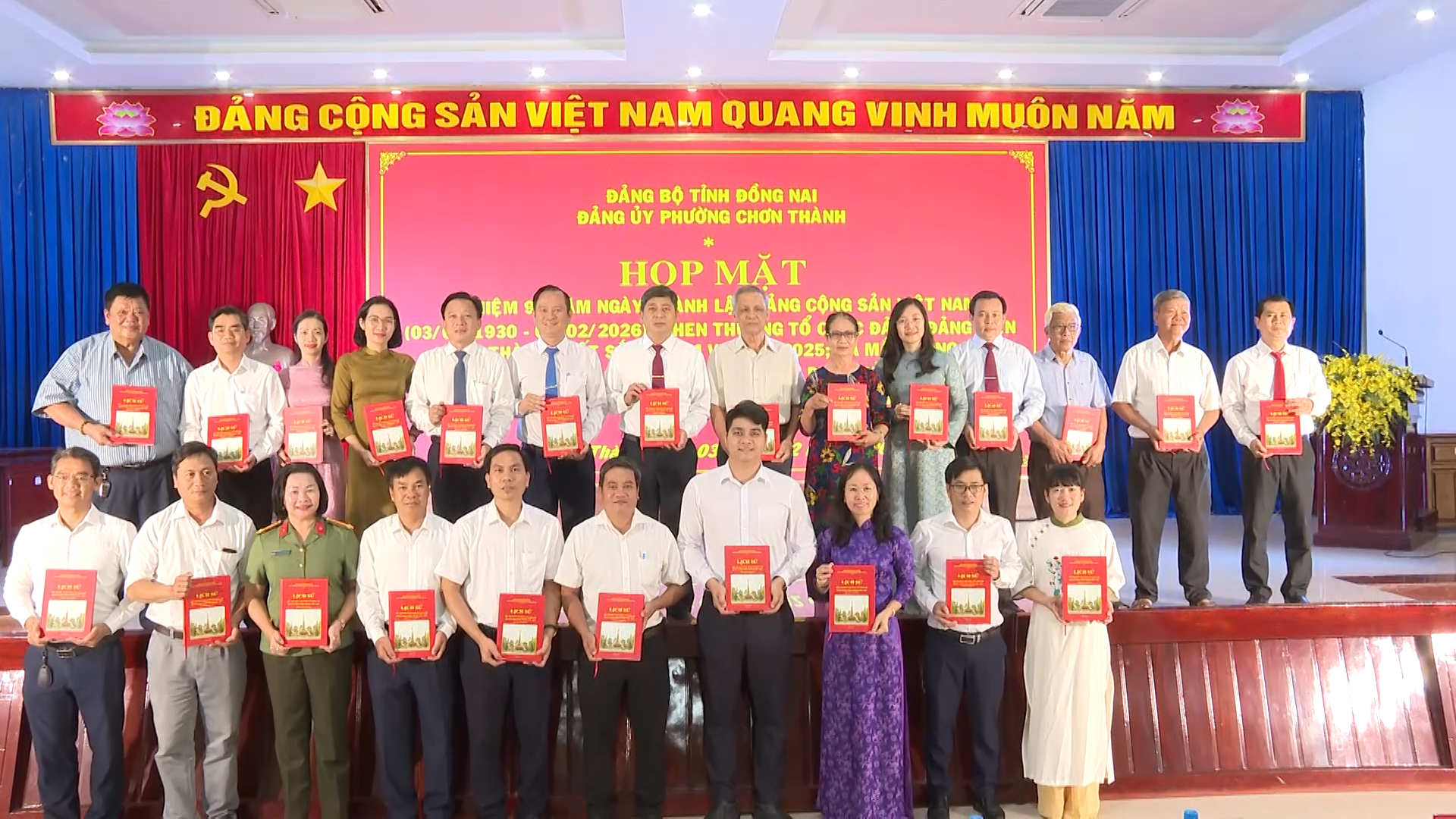 Tại buổi họp mặt Đảng ủy phường Chơn Thành cũng đã ra mắt, công bố cuốn sách “Lịch sử đấu tranh và xây dựng của Đảng bộ, quân và dân Chơn Thành (1930 – 2025)”. Đây là một công trình khoa học – lịch sử; đồng thời là bản biên niên ký của lòng yêu nước, của ý chí cách mạng, của khát vọng vươn lên của Đảng bộ, quân và dân Chơn Thành. Cuốn sách là lời tri ân sâu sắc đối với các thế hệ đi trước; đồng thời là tài liệu giáo dục truyền thống quý báu cho cán bộ, đảng viên và thế hệ trẻ hôm nay và mai sau.