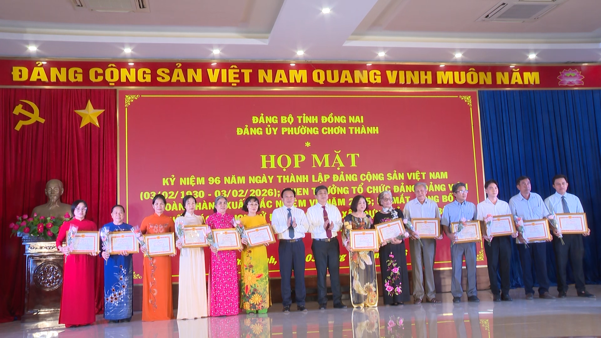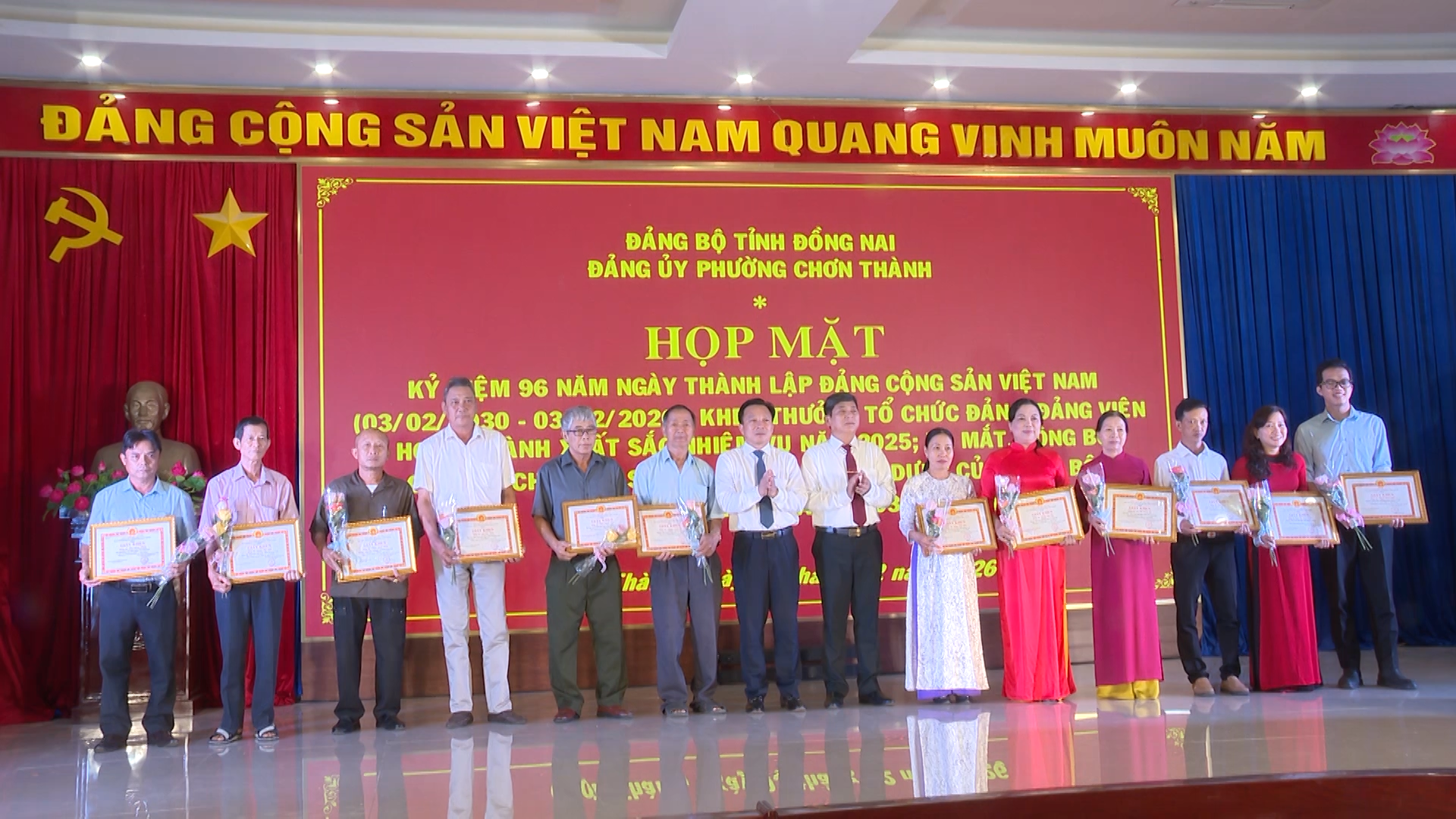 Dịp này Đảng ủy phường Chơn Thành cũng đã tặng giấy khen cho 09 Chi, Đảng bộ trực thuộc đạt tiêu chuẩn “Hoàn thành xuất sắc nhiệm vụ tiêu biểu” năm 2025. Tặng giấy khen cho: 02 đảng viên, có thành tích hoàn thành xuất sắc nhiệm vụ 5 năm liền (2020-2025) và 50 đảng viên hoàn thành xuất sắc nhiệm vụ năm 2025.