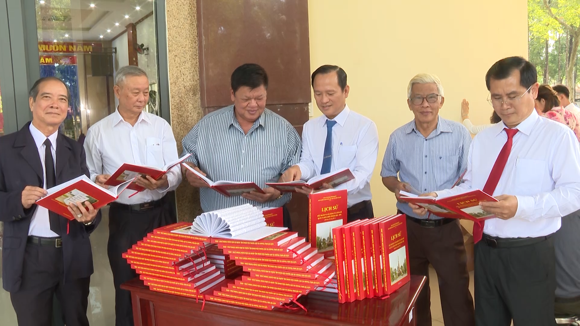 Lãnh đạo phường Chơn Thành cùng các đại biểu tham gia mở coi cuốn sách “Lịch sử đấu tranh và xây dựng của Đảng bộ, quân và dân Chơn Thành (1930 – 2025)”