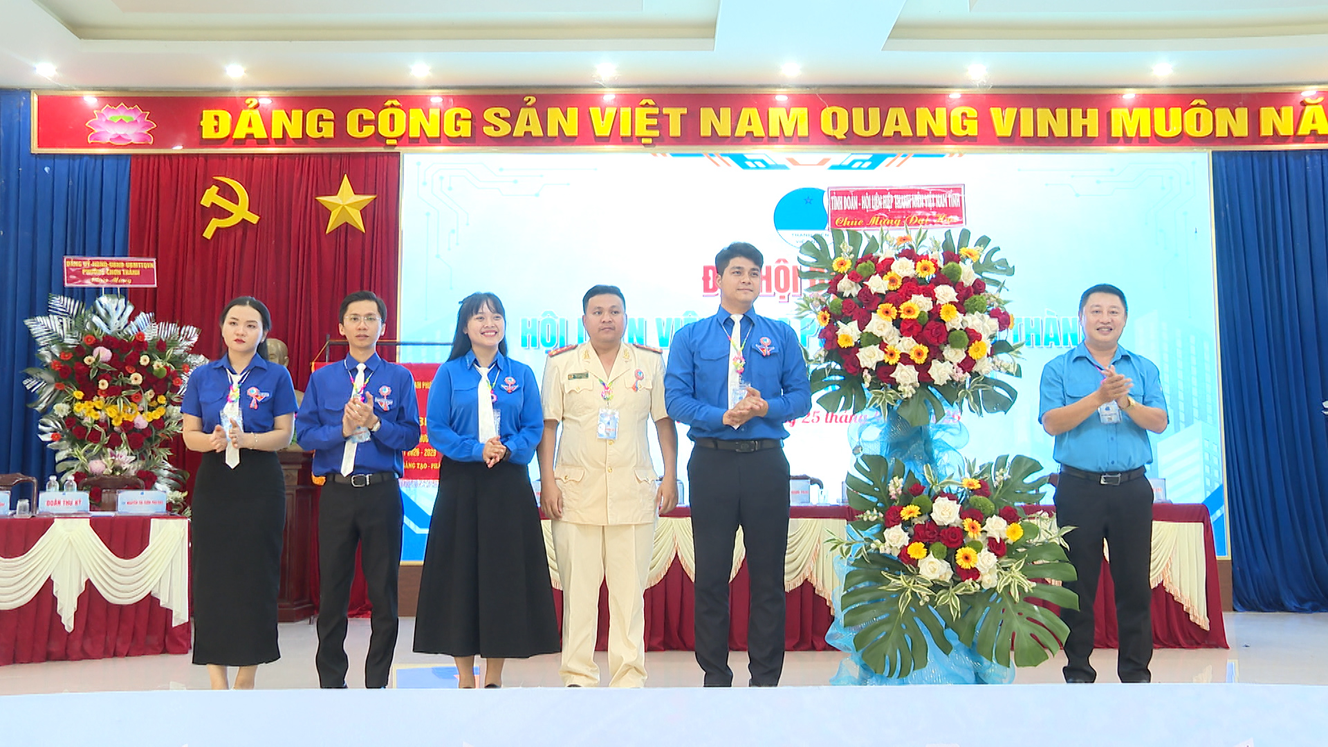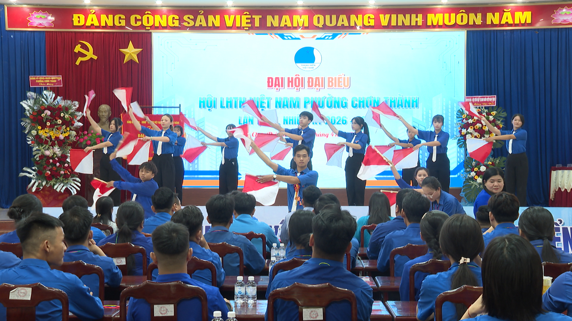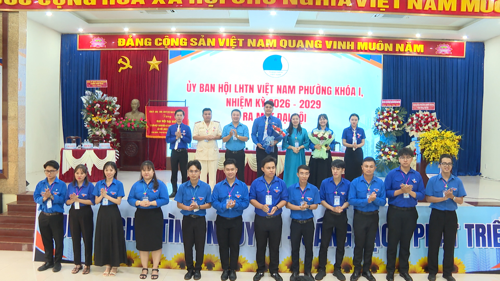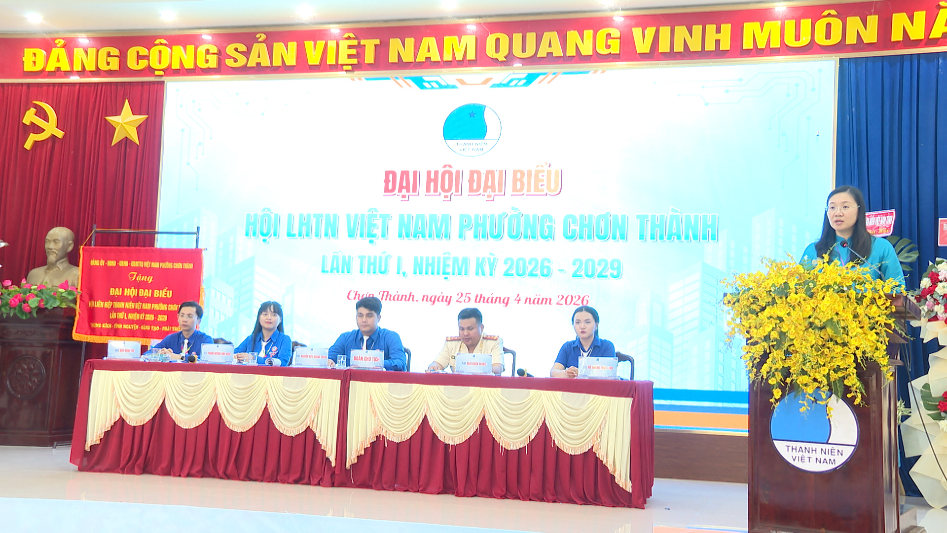 Lãnh đạo Đảng ủy-HĐND-UBND-UBMTTQ Việt Nam phường Chơn Thành, tặng hoa chúc mừng Đại Hội Đại Biểu Hội LHTN Việt Nam phường lần thứ I, nhiệm kỳ 2026 - 2029