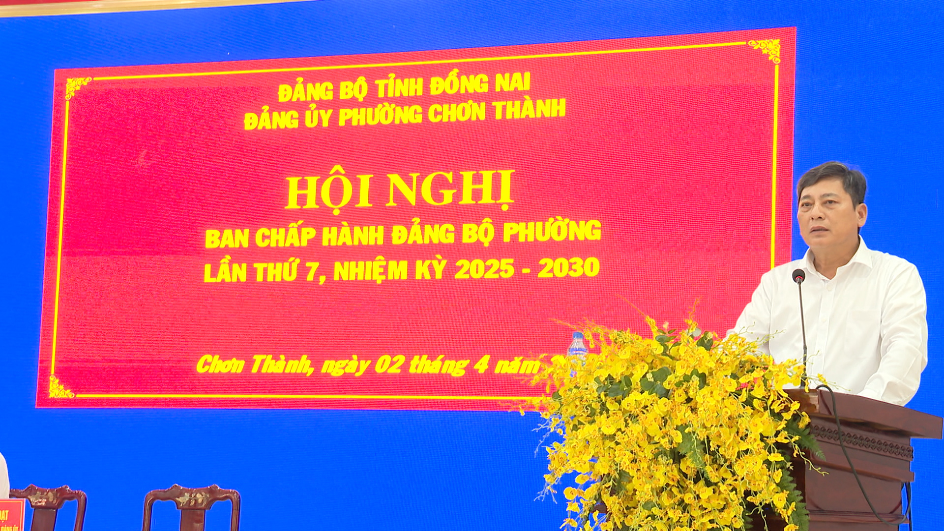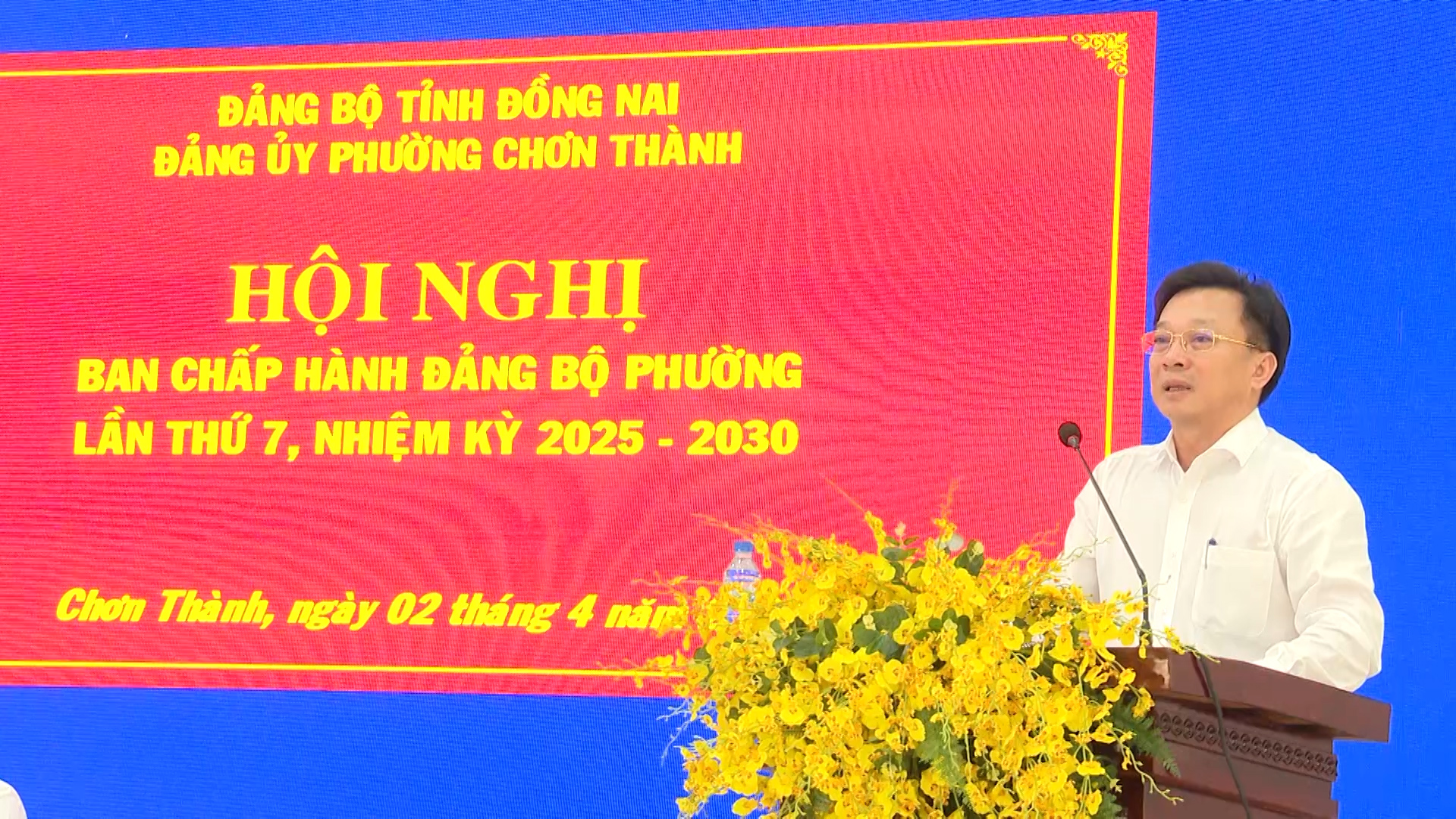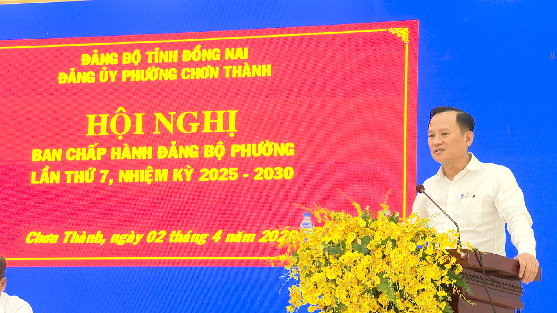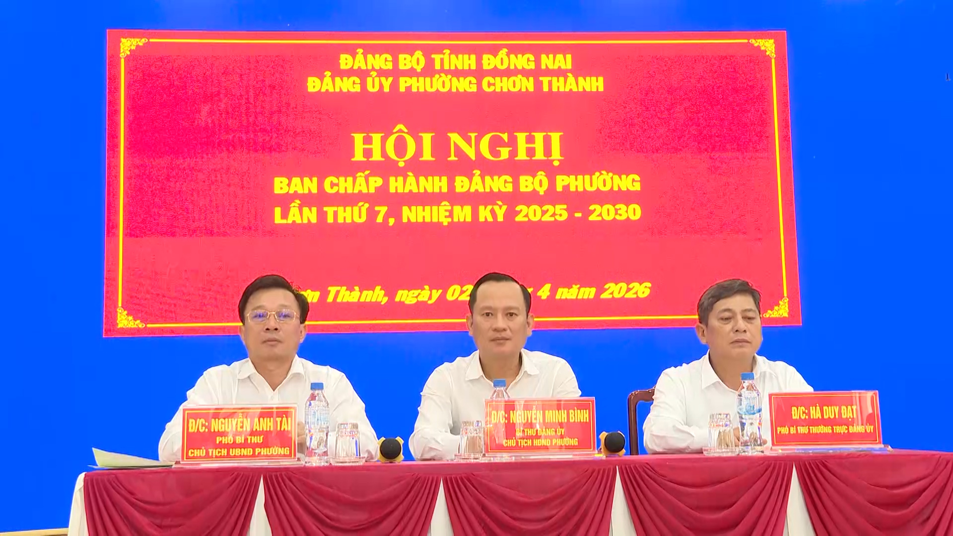 Ngày 2-4-2026 Đảng ủy Chơn Thành tổ chức Hội nghị Ban chấp hành Đảng bộ phường (mở rộng) lần thứ 7, nhiệm kỳ 2025-2030, nhằm tổng kết thực hiện Nghị quyết Đảng bộ phường quý I và phương hướng, nhiệm vụ trọng tâm quý II năm 2026. Tham dự hội nghị có đồng chí Phạm Thụy Luân, Tỉnh ủy viên, Phó bí thư Đảng ủy UBND tỉnh Đồng Nai; các đồng chí Thường trực Đảng ủy; Ủy viên Ban Thường vụ, Ủy viên Ban Chấp hành Đảng bộ phường khóa I; các đồng chí Ủy viên Ủy ban Kiểm tra Đảng ủy phường khóa I; Đại biểu HĐND phường; Trưởng các cơ quan, ban, ngành, Mặt trận Tổ quốc, các đoàn thể chính trị - xã hội phường; Bí thư các chi, đảng bộ trực thuộc Đảng bộ phường.