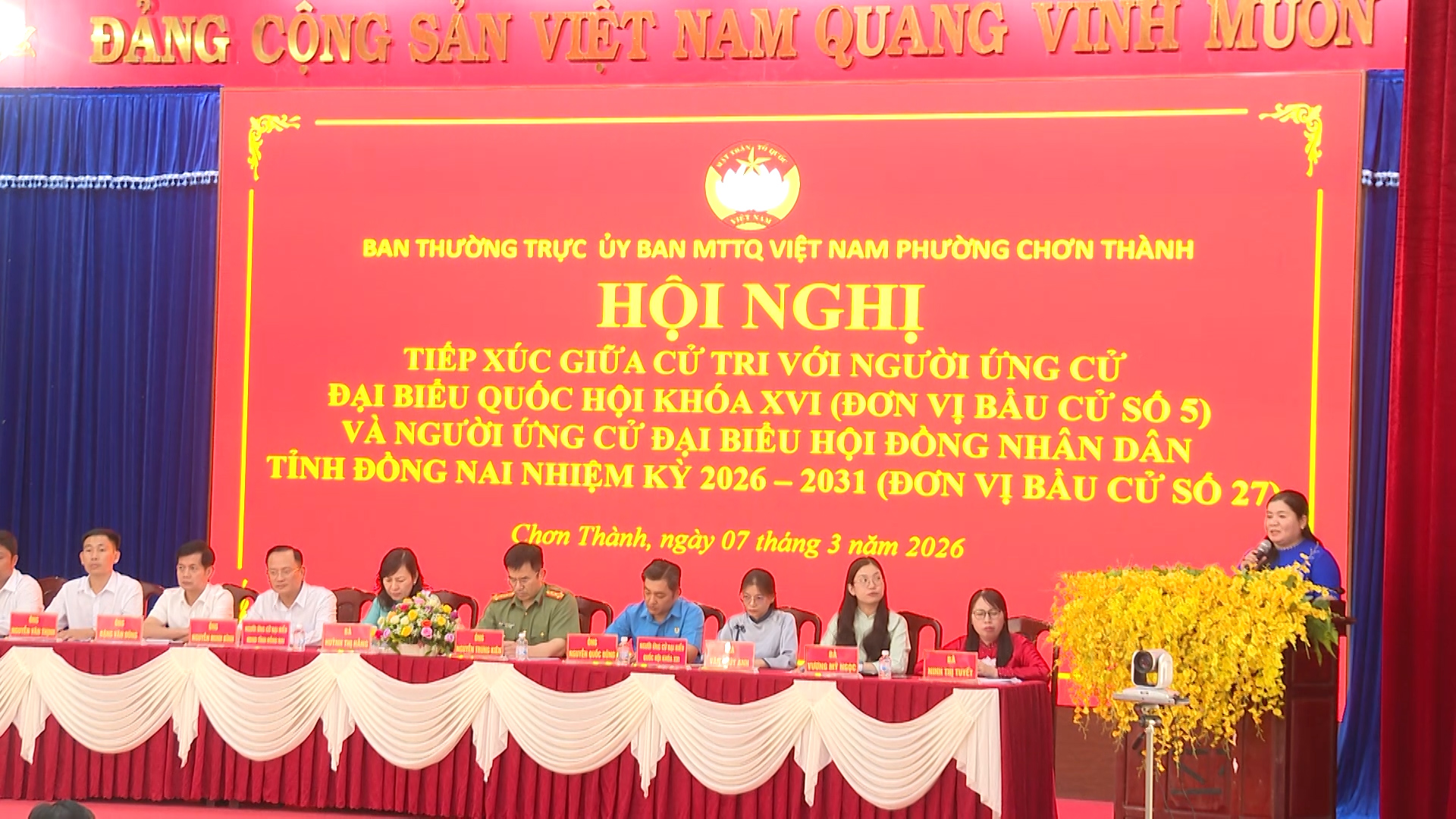 Tại hội nghị, Lãnh đạo Ủy ban MTTQ Việt Nam phường Chơn Thành đã giới thiệu tiểu sử tóm tắt của 05 ứng cử viên đại biểu Quốc hội khóa XVI tại Đơn vị bầu cử số 5 và 05 ứng cử viên đại biểu HĐND tỉnh nhiệm kỳ 2026-2031 tại Đơn vị bầu cử số 27. Đồng thời, các ứng cử viên đã trình bày chương trình hành động của mình nếu được cử tri tín nhiệm bầu làm đại biểu Quốc hội khóa XVI, đại biểu HĐND tỉnh nhiệm kỳ 2026 - 2031 sẽ thực hiện đầy đủ trách nhiệm của đại biểu Quốc Hội, đại biểu HĐND tỉnh, thể hiện quyết tâm chính trị cao, khẳng định tinh thần phụng sự Tổ quốc, phục vụ Nhân dân; sẽ hành động quyết liệt, nói đi đôi với làm, cam kết đặt lợi ích quốc gia, quyền và lợi ích hợp pháp, chính đáng của Nhân dân…