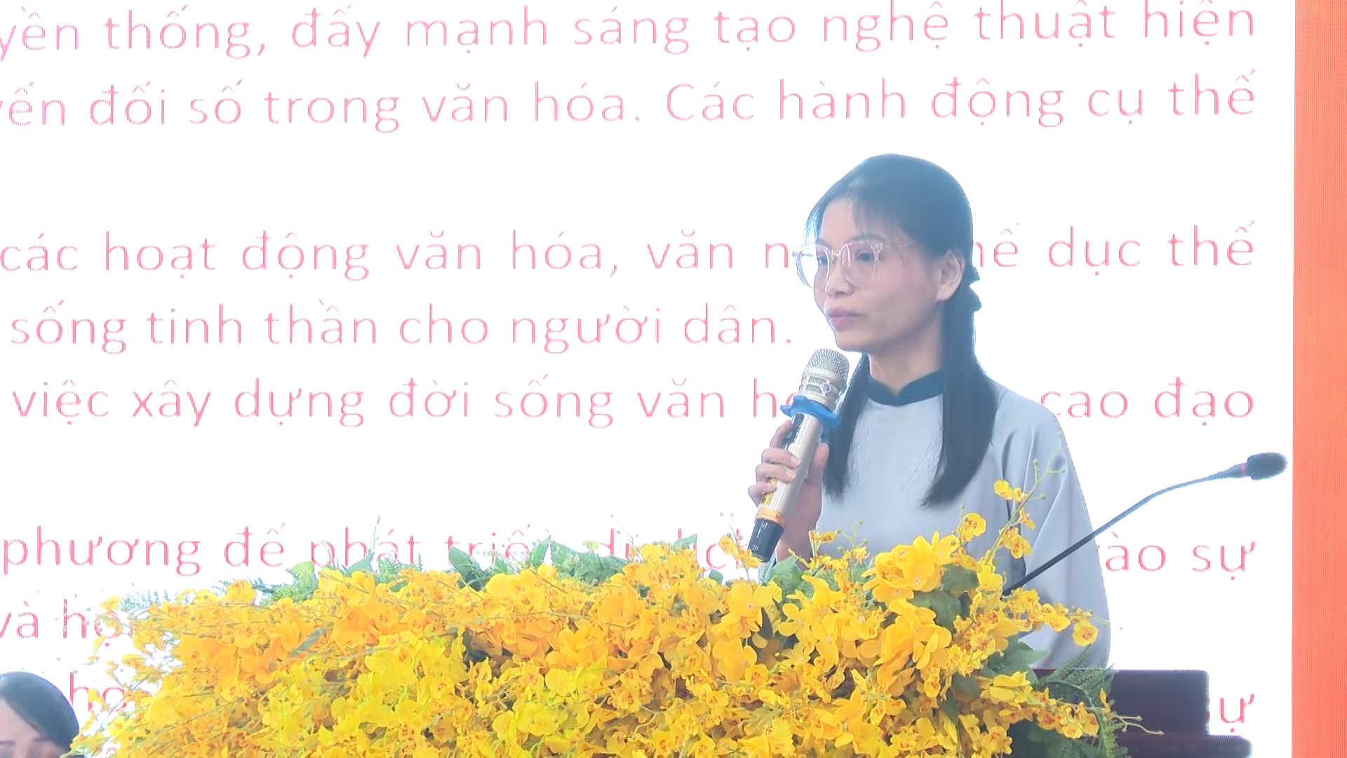 Bà Văn Thúy Anh, Chuyên viên Nhà hát nghệ thuật Đồng Nai, ứng cử viên đại biểu Quốc hội khóa XVI - Đơn vị bầu cử số 5, trình bày chương trình hành động tại hội nghị