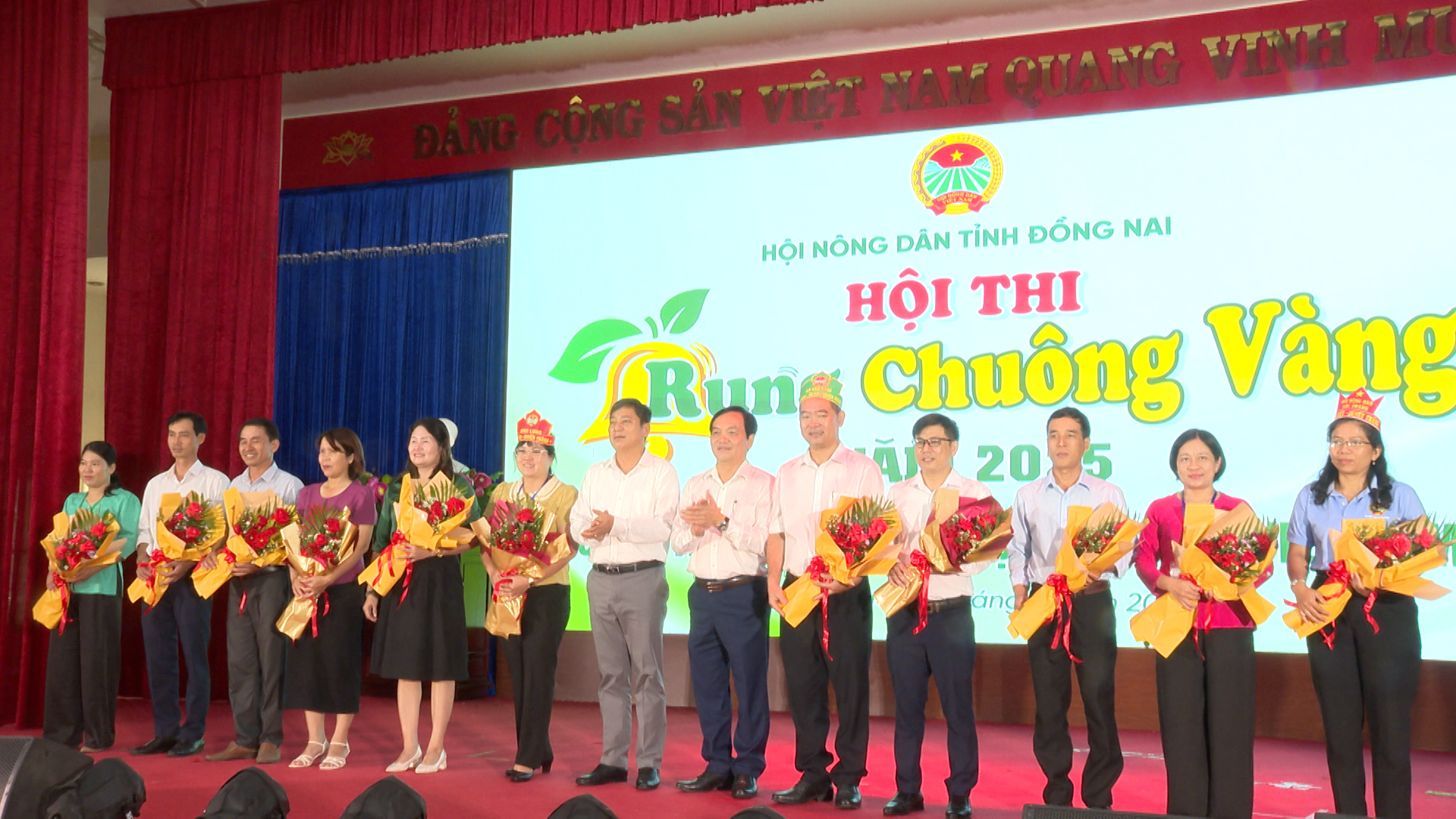 Lãnh đạo Hội Nông dân tỉnh Đồng Nai và phường Chơn Thành, tặng hoa chúc mừng các đội thi
