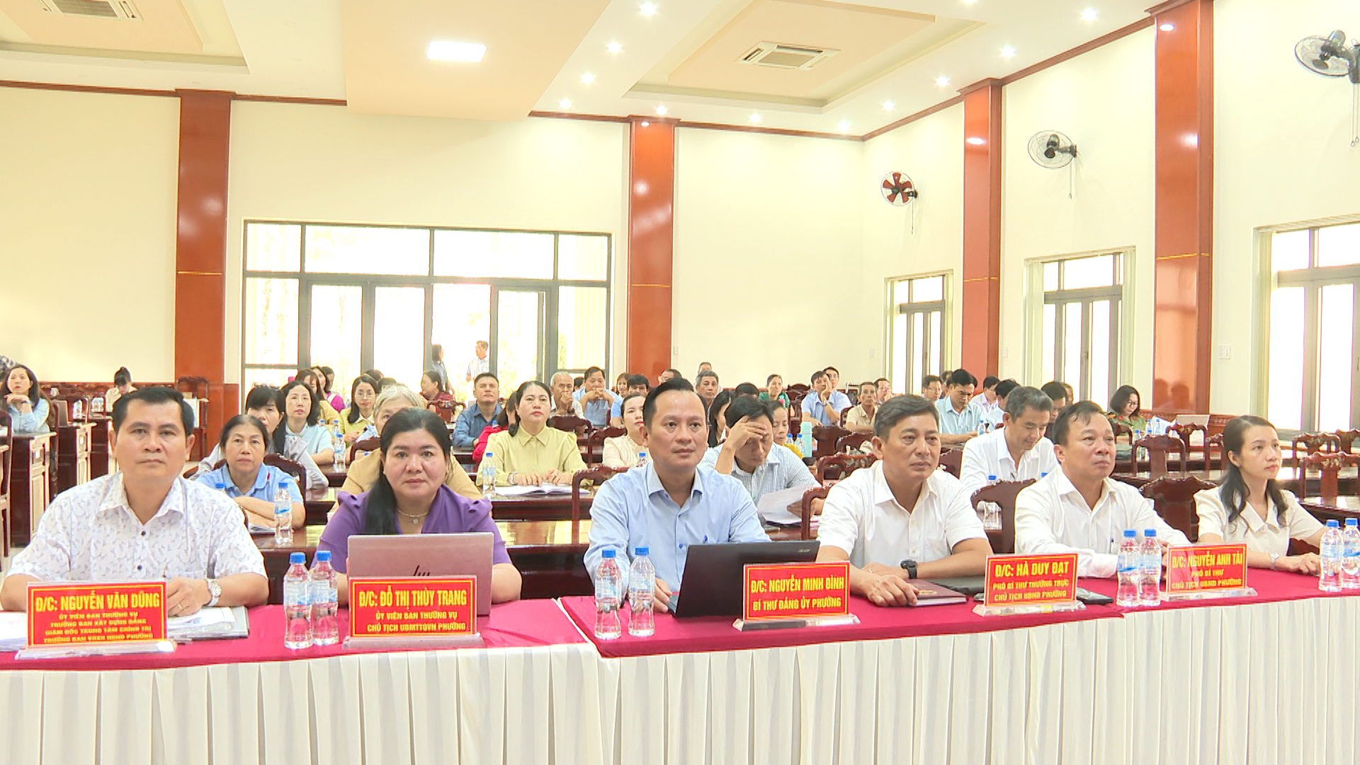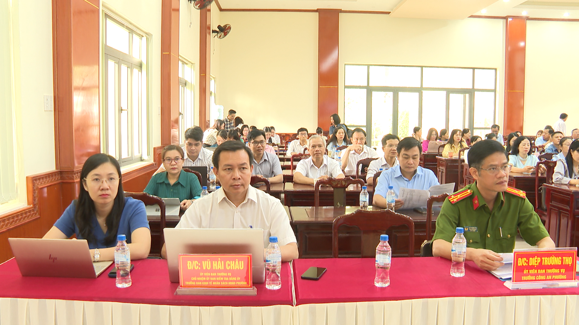 Các đại biểu tham dự hội nghị tại điểm cầu Hội trường Đảng ủy phường Chơn Thành